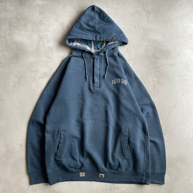 ご覧いただきありがとうございます 90年代Cuffy'sのハーフジップロゴパーカー 褪色したネイビーボディに胸元のブランド刺繍のみのデザイン コットン比率高めの程よく厚みある生地感で、パーカーやポケットの裏地チェックが可愛らしい 所々のダメージやペンキ飛びの感じも雰囲気あって、1枚で着てしっかり完結するのが良いですよね ラフで緩いボトムスと合わせて着て欲しい! ◾︎サイズ 表記サイズ: L 実寸: 肩幅58.5cm 身幅59cm 着丈67.5cm 袖丈57cm ※多少の誤差はご了承ください ◾︎コンデション B: 使用感があり、多少の汚れやダメージがある状態 ※当店の主観により判断しておりますので、あくまで目安としてご活用ください 多少のダメージや薄い汚れ、色褪せ等、古着の使用感の範囲内と判断したものについては、画像の掲載や状態追記を省略させていただく場合がございます サイズやコンディション含め、気になる点や質問等ございましたら、ご購入前に必ずご連絡ください ご注文確定後、お客様都合の返品は一切受け付けておりません popupや出店イベント、他サイトにて販売中のため、ご注文時に売り切れの場合がございます あくまで古着ということをご理解の上、ご購入お願いいたします