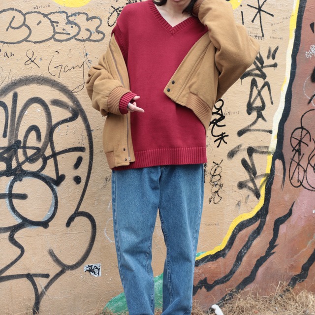 ご覧いただきありがとうございます 2000年代エルエルビーンのVネックセーター 明るいレッドカラーが目を惹く1着 程よい厚みのあるミドルゲージの編みで、ビーン特有のもちもちとしたコットンの肌触りは着ていて気持ち良いです 今季特に注目しているVネック仕様で、大人びた雰囲気で着用出来るかと思います ゆるっとしたサイズ感なので、レイヤードスタイルにももってこい 当店の軸となるスラックスと合わせて綺麗に着こなして欲しいです ◾︎サイズ 表記サイズ: XL-R 実寸: 肩幅43.5cm 身幅61.5cm 着丈68.5cm 袖丈65cm ※多少の誤差はご了承ください ◾︎コンデション A: 多少の使用感はあるが、全体的に綺麗な状態 ※当店の主観により判断しておりますので、あくまで目安としてご活用ください 多少のダメージや薄い汚れ、色褪せ等、古着の使用感の範囲内と判断したものについては、画像の掲載や状態追記を省略させていただく場合がございます サイズやコンディション含め、気になる点や質問等ございましたら、ご購入前に必ずご連絡ください ご注文確定後、お客様都合の返品は一切受け付けておりません popupや出店イベント、他サイトにて販売中のため、ご注文時に売り切れの場合がございます あくまで古着ということをご理解の上、ご購入お願いいたします