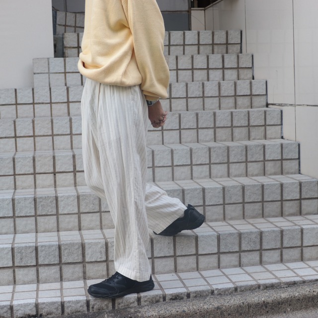 90s MAINE BAY linen/rayon 2-tack stripe slacks pants
