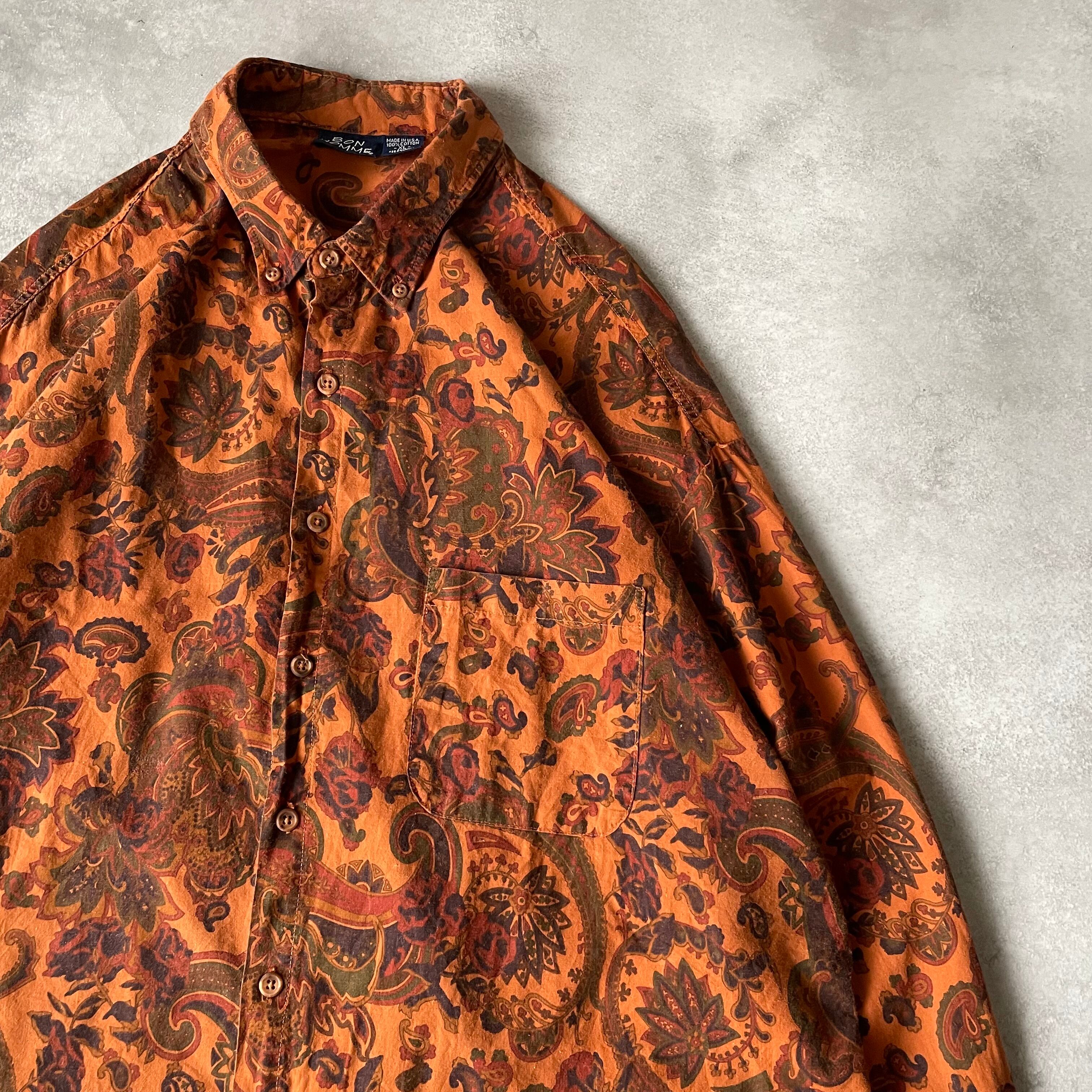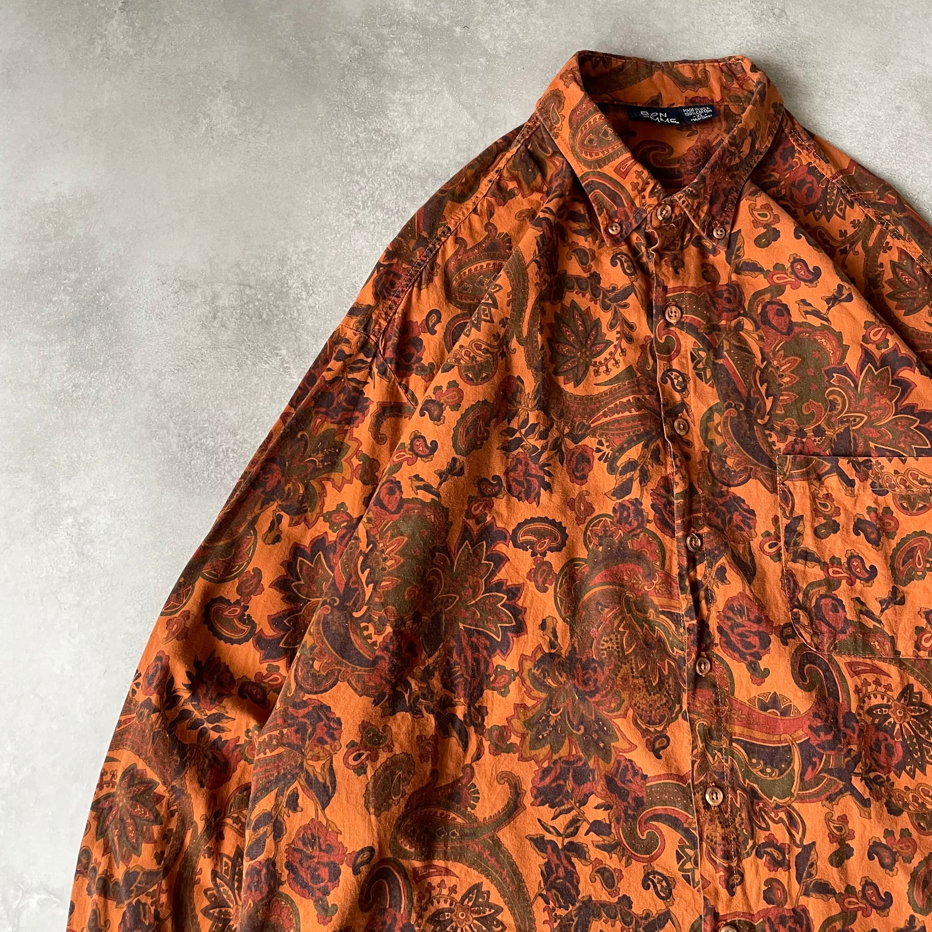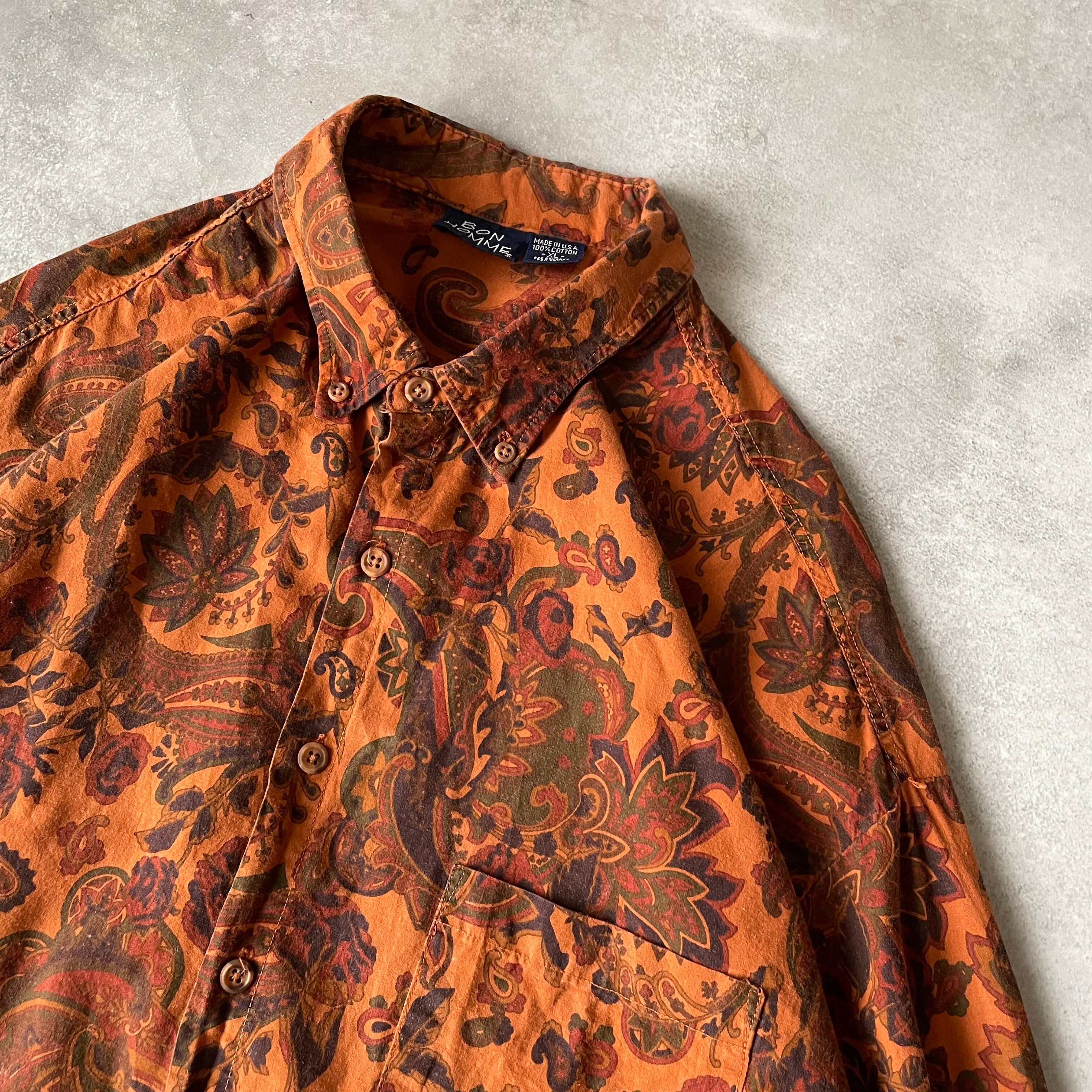 90s BON HOMME L/S flower pattern B.D shirt Made in U.S.A.
