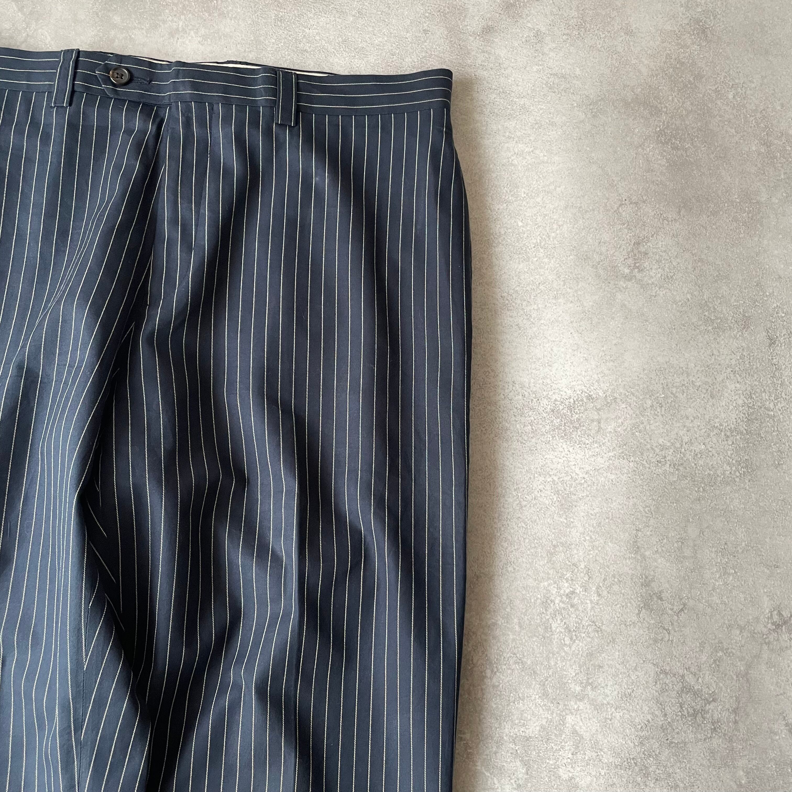 スラックスの中で最も人気、需要の高さを感じるネイビーカラーかつピンストライプ