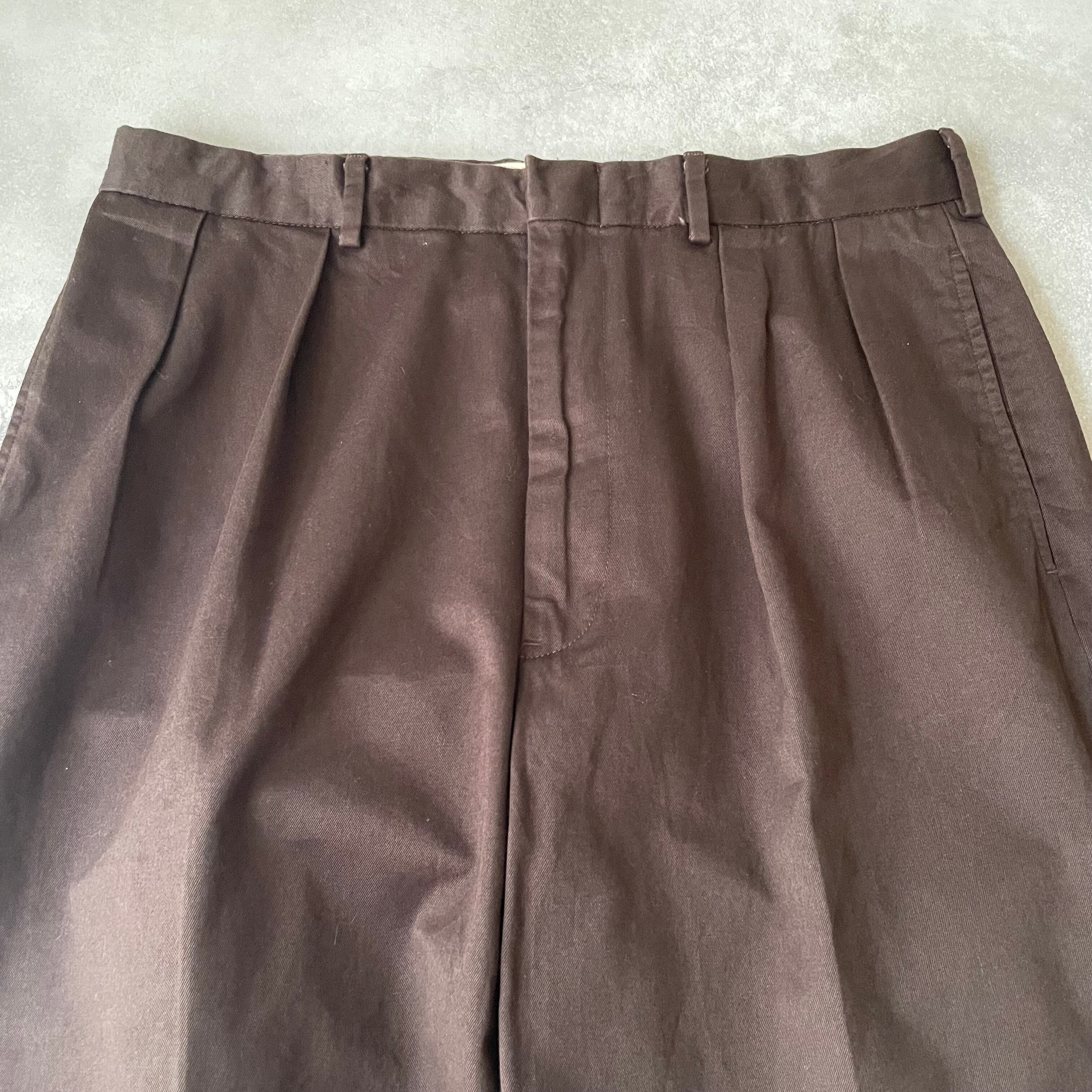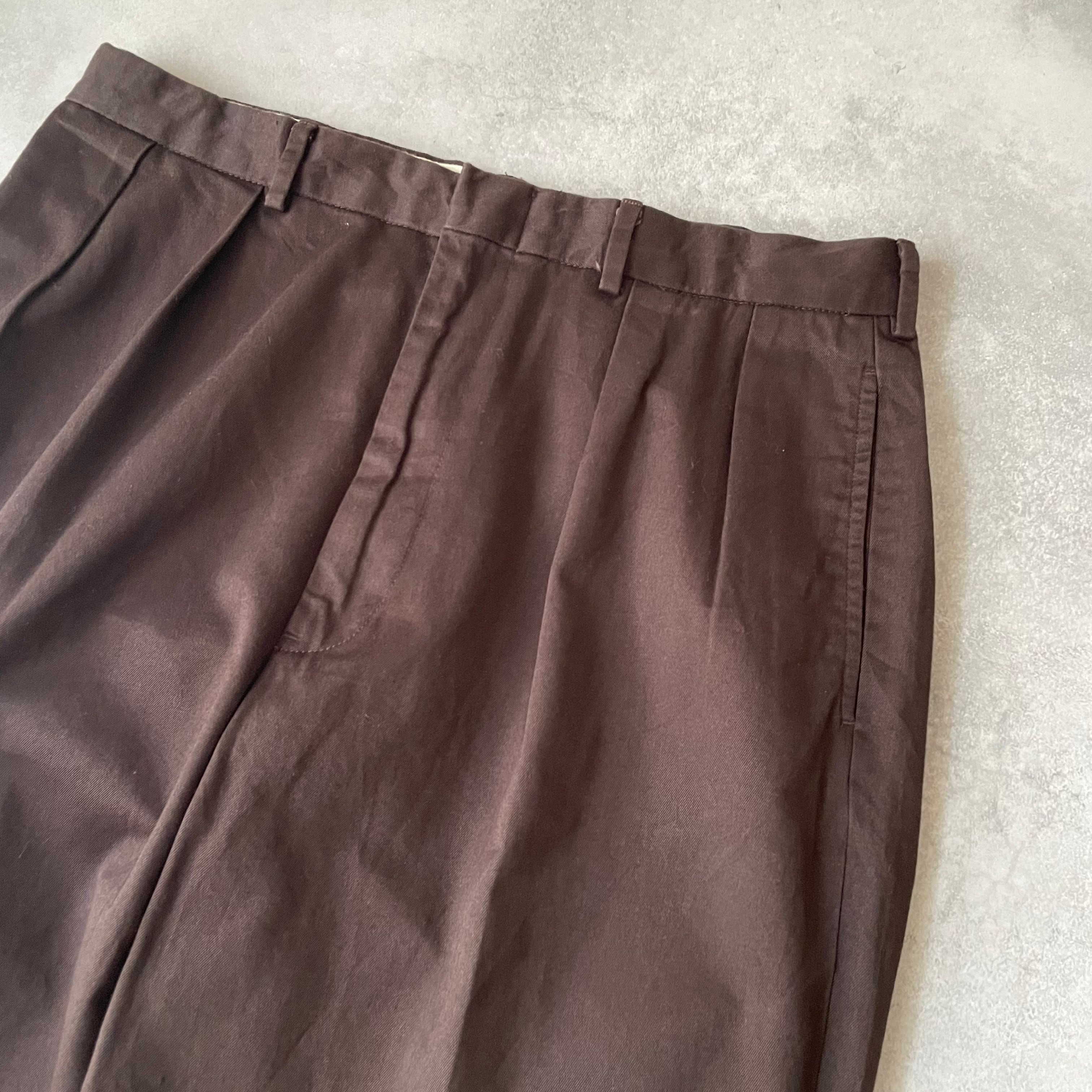 チノパンとスラックスの良い部分を寄せ集めたパンツで、何よりこの濃いブラウンカラーが最高