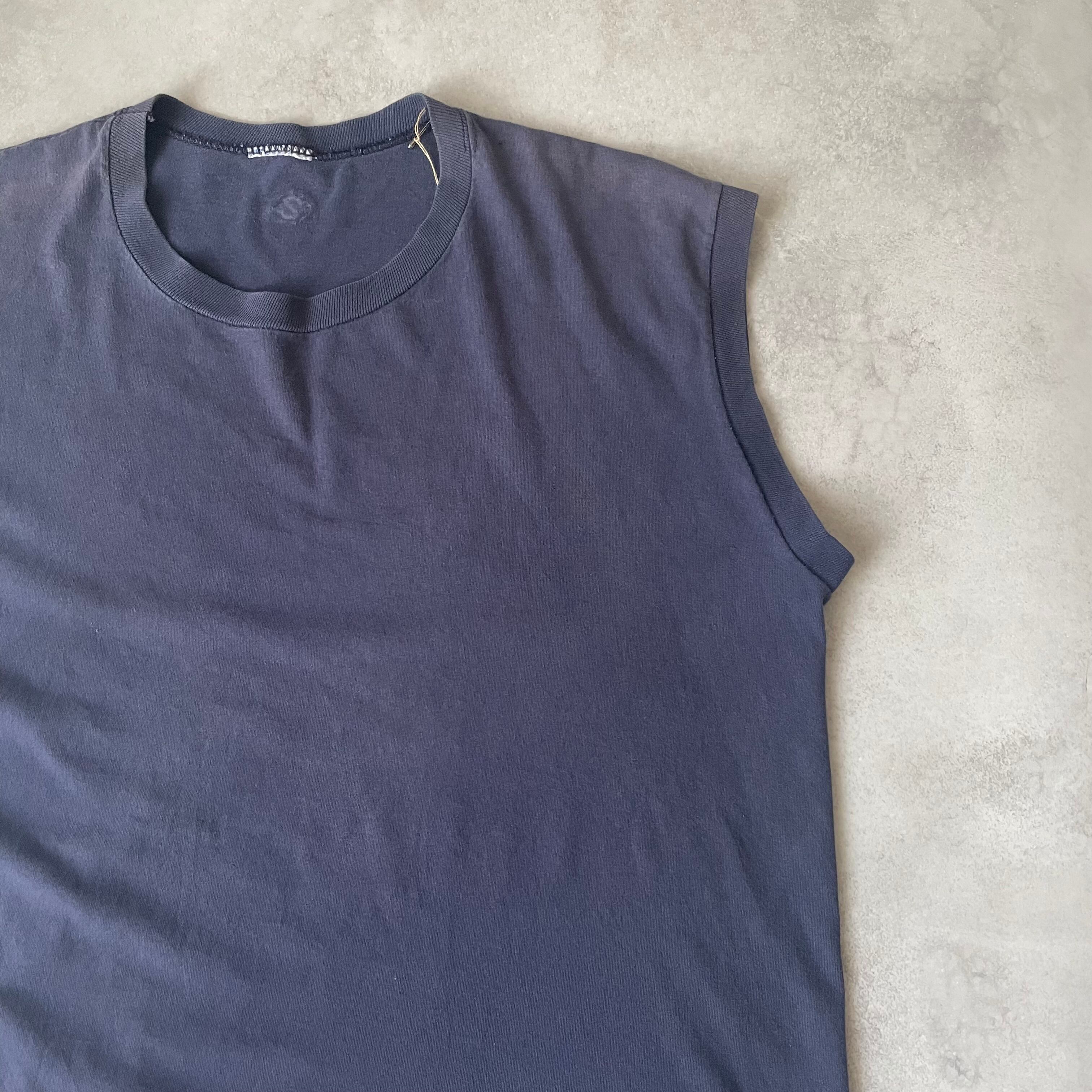 フェードしたネイビカラーで、汚れやダメージも相まって雰囲気ある一枚