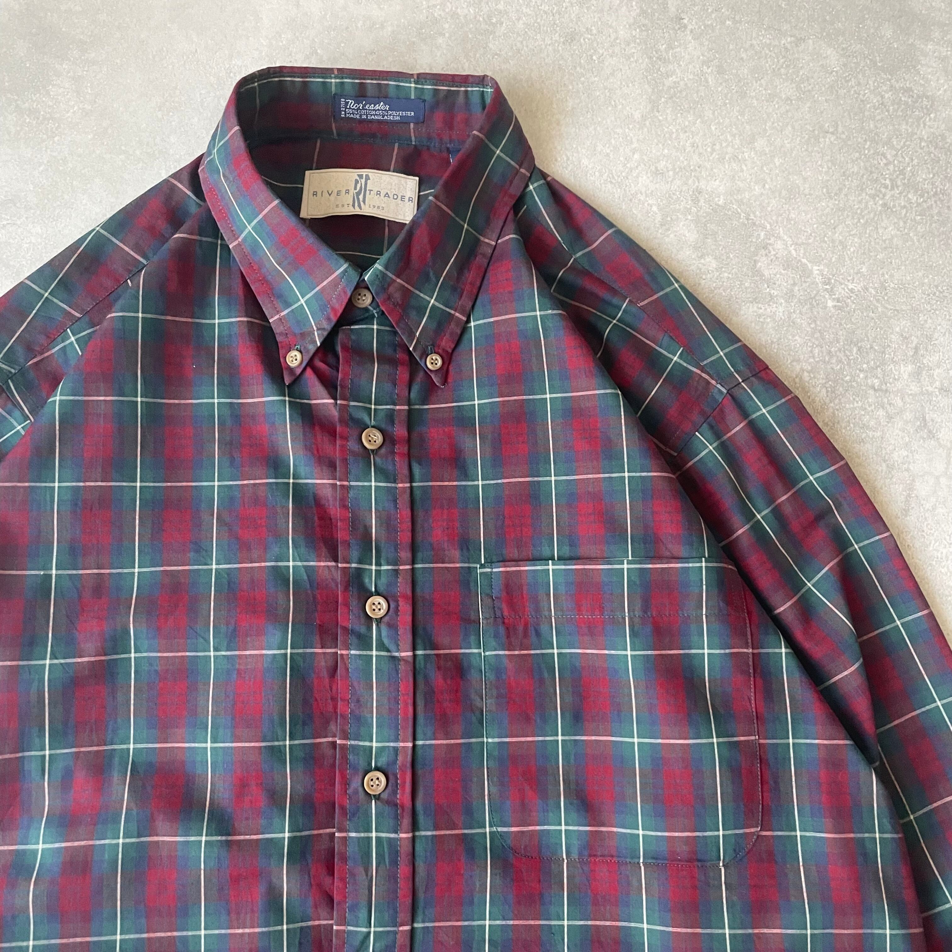 90s RIVER TRADER cotton/poly L/S check B.D shirt