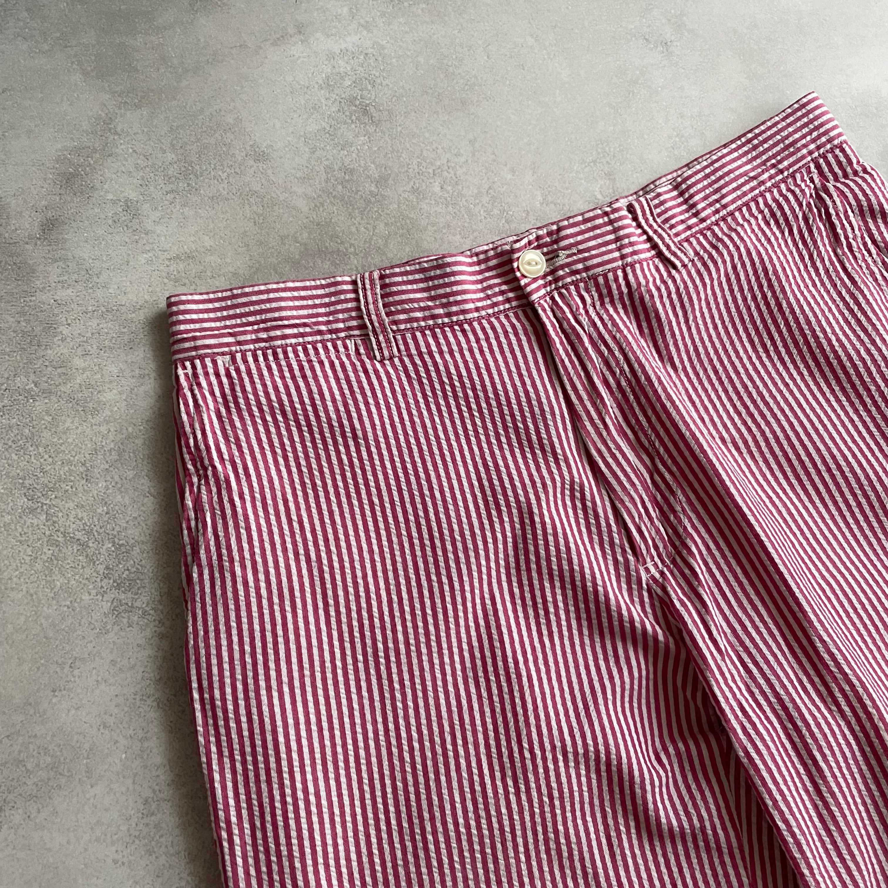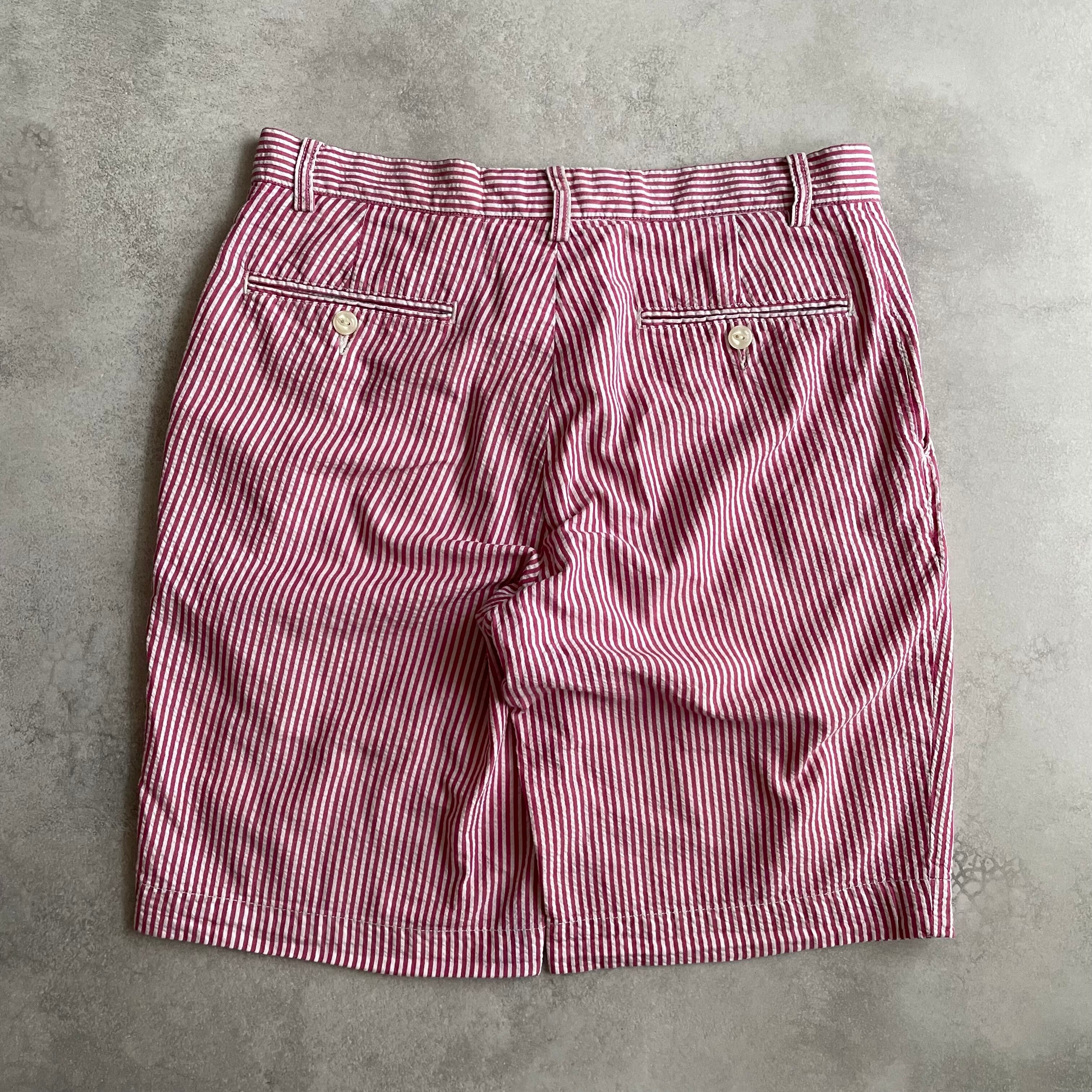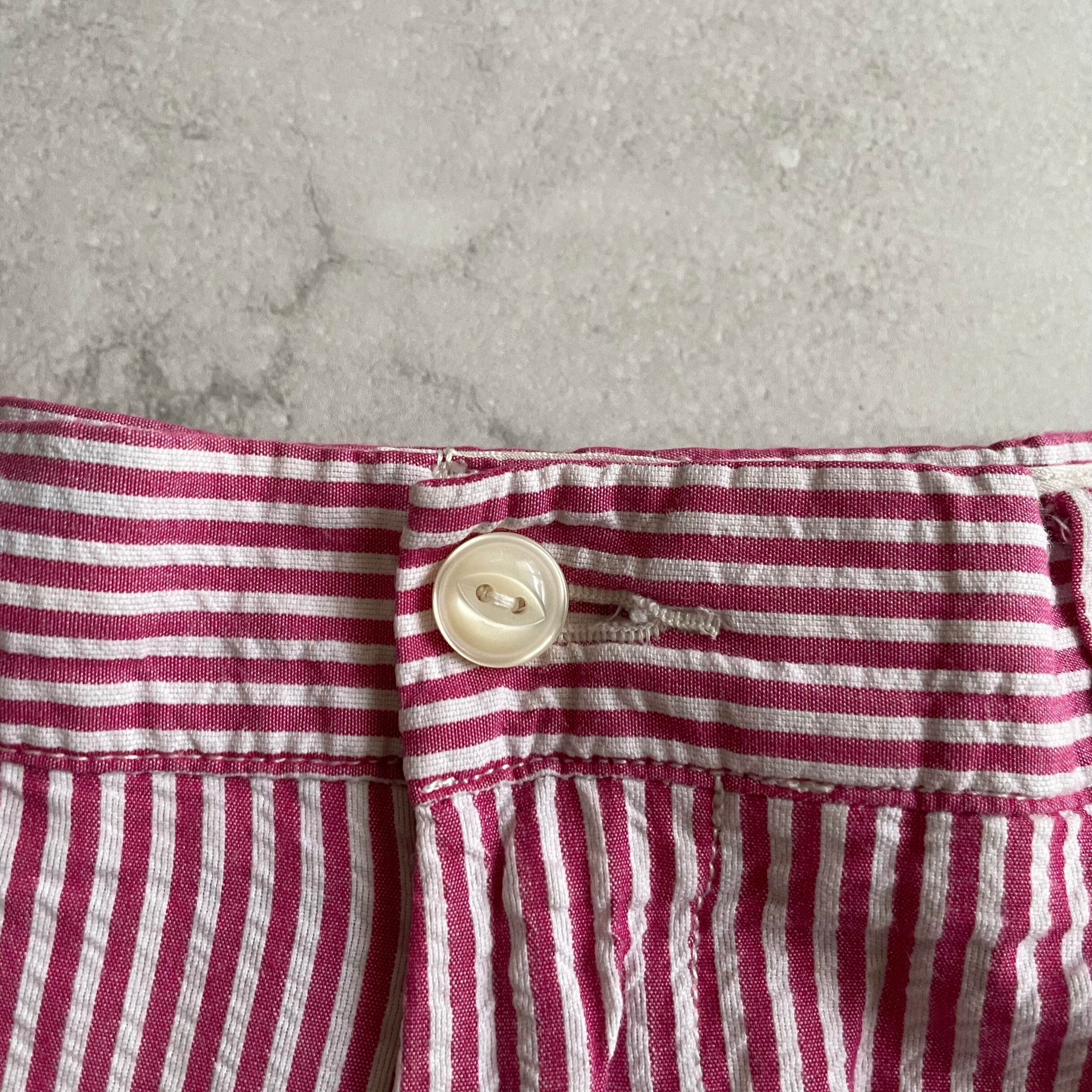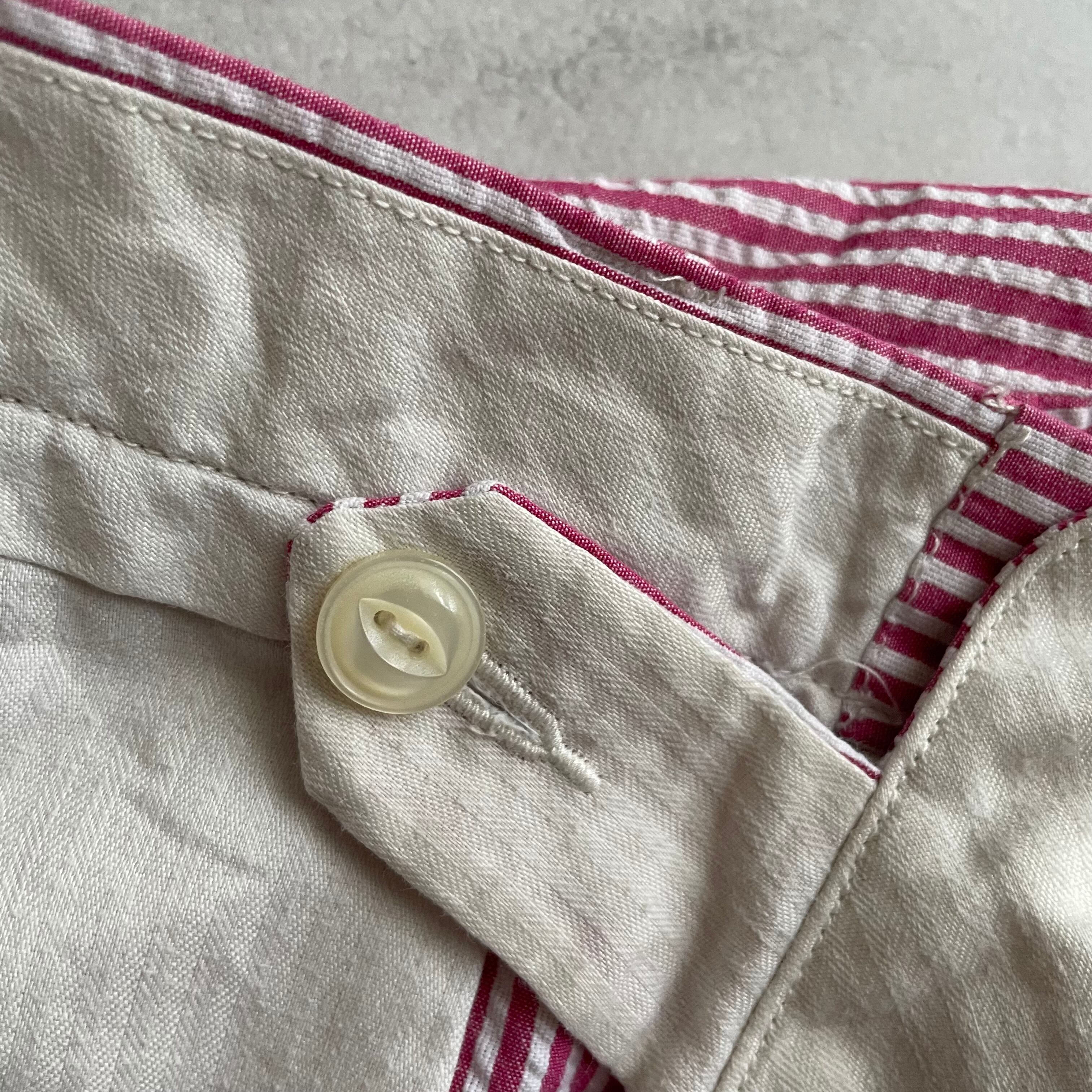 ネイビーの無地スウェットやカーディガンなどと合わせて可愛らしく着こなしたり、ドレスシャツや紺ブレなどのトラッドな合わせもこなす万能ショーツ