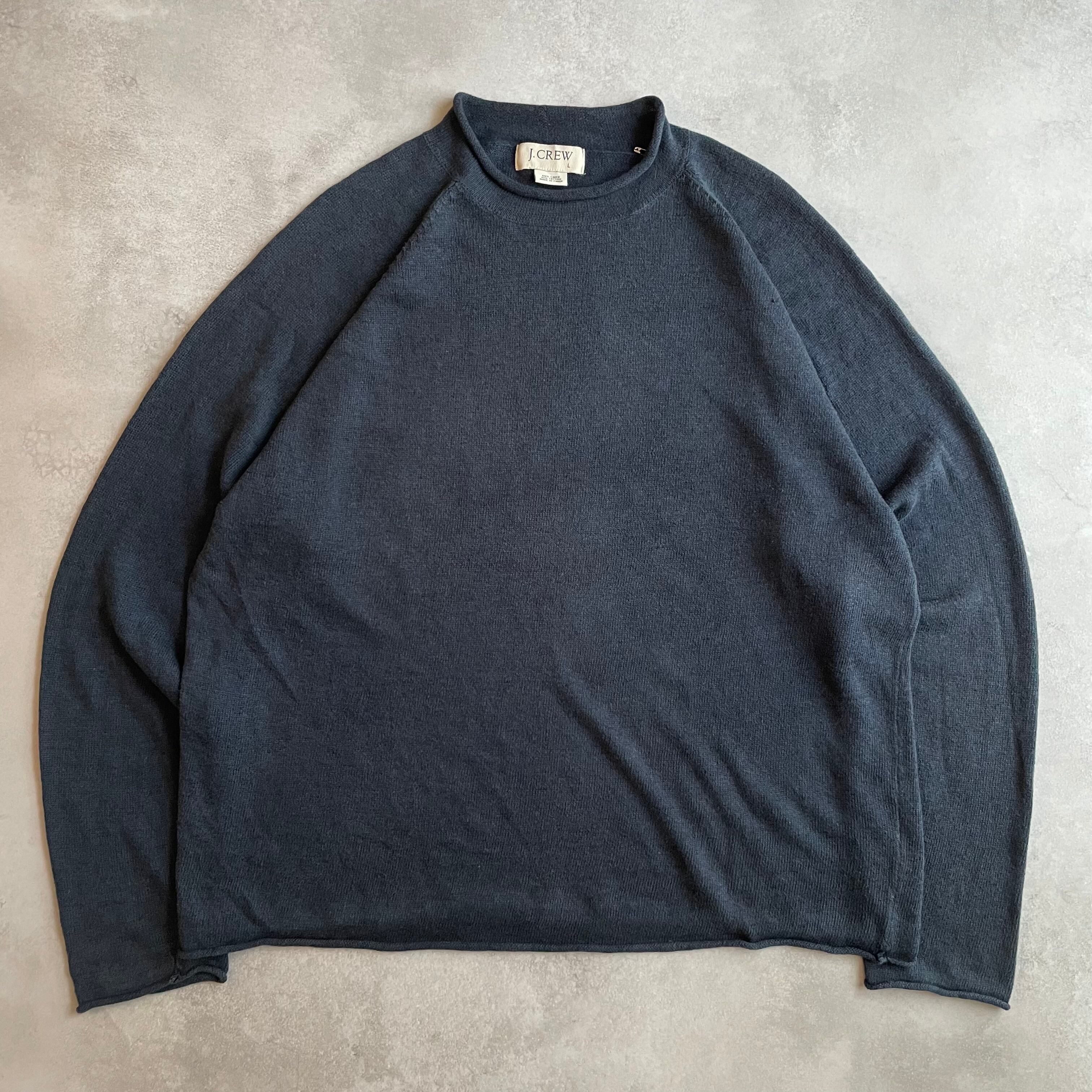 00s J.CREW raglan sleeve linen/cotton Roll neck sweater