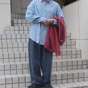 同系色のスラックスと合わせて綺麗に着こなすスタイルが個人的には気分