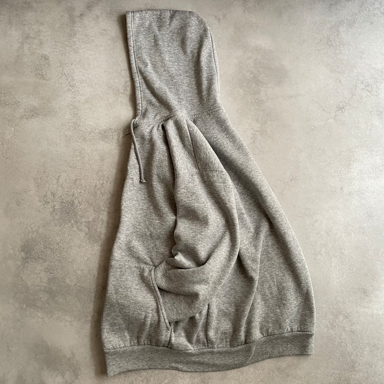 ジップパーカー、裏地サーマル、霜降りグレーカラー、程よくルーズなサイズ