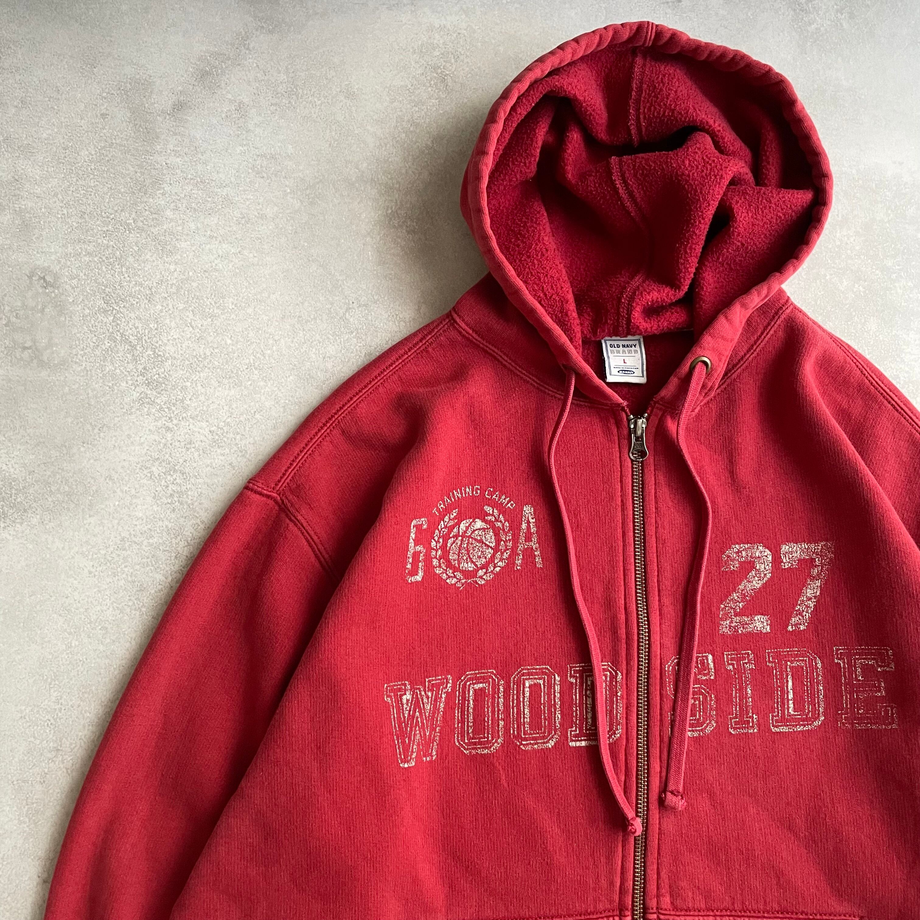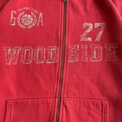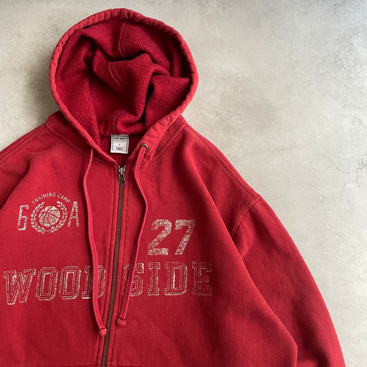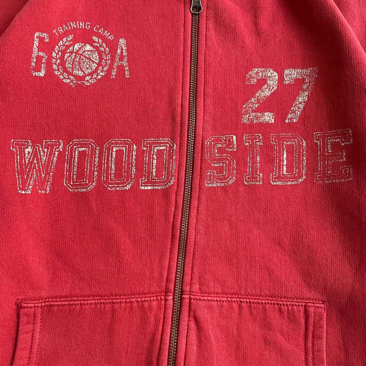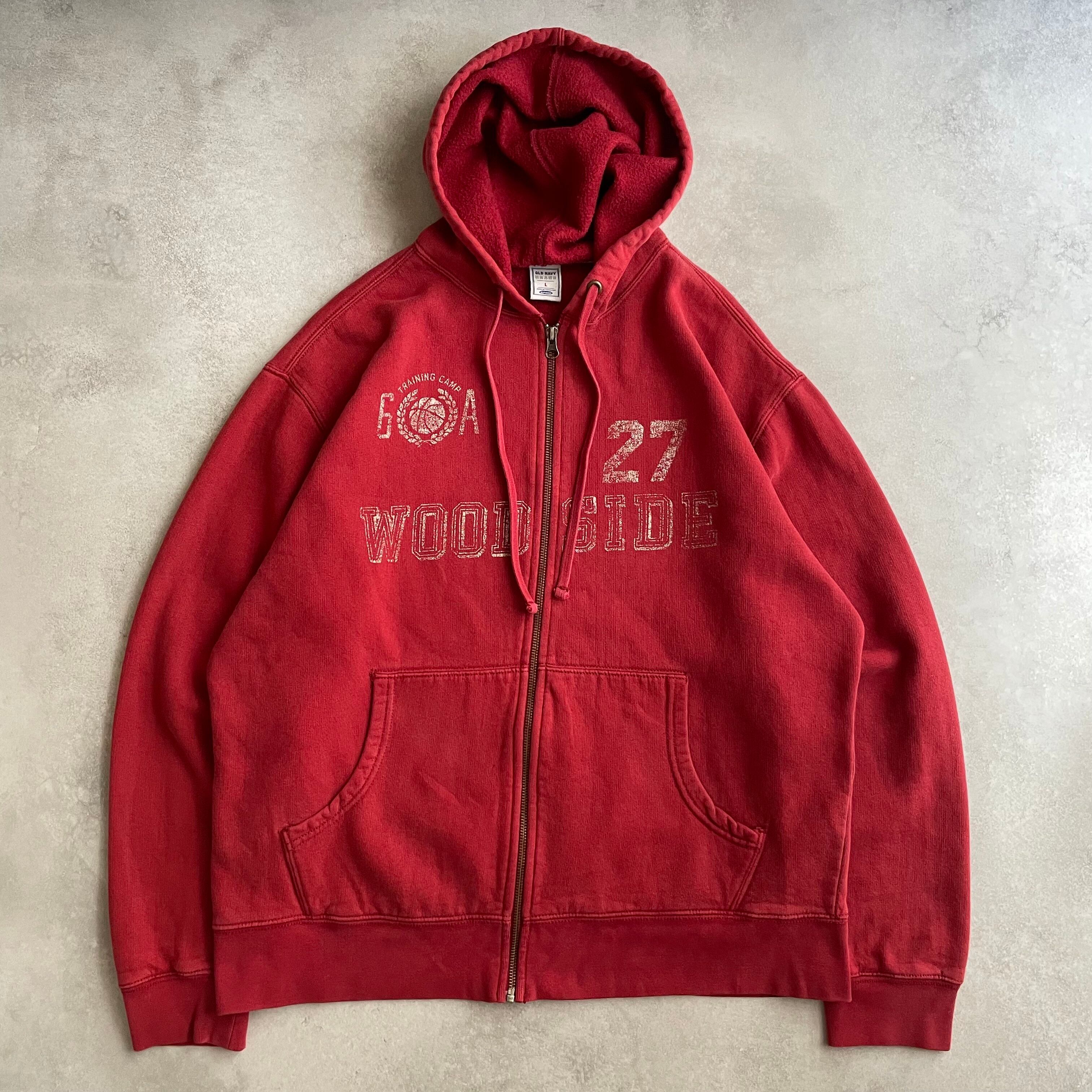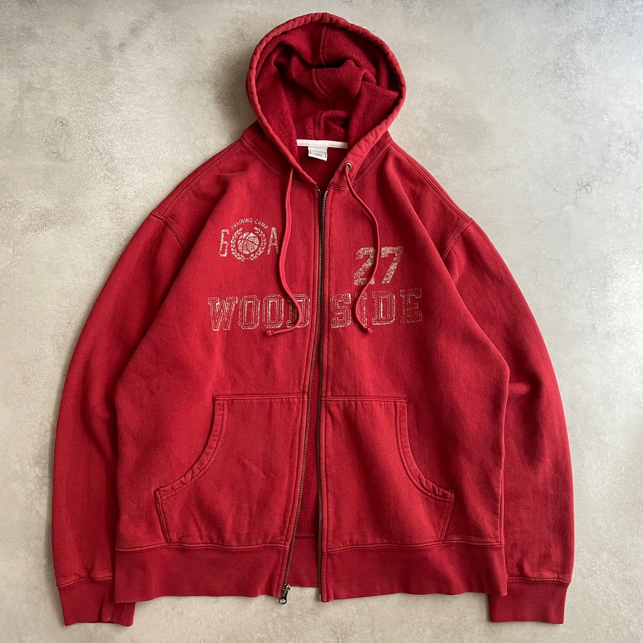 アメリカの大学生がサラッと着てそうなワインレッドカラーのジップパーカー