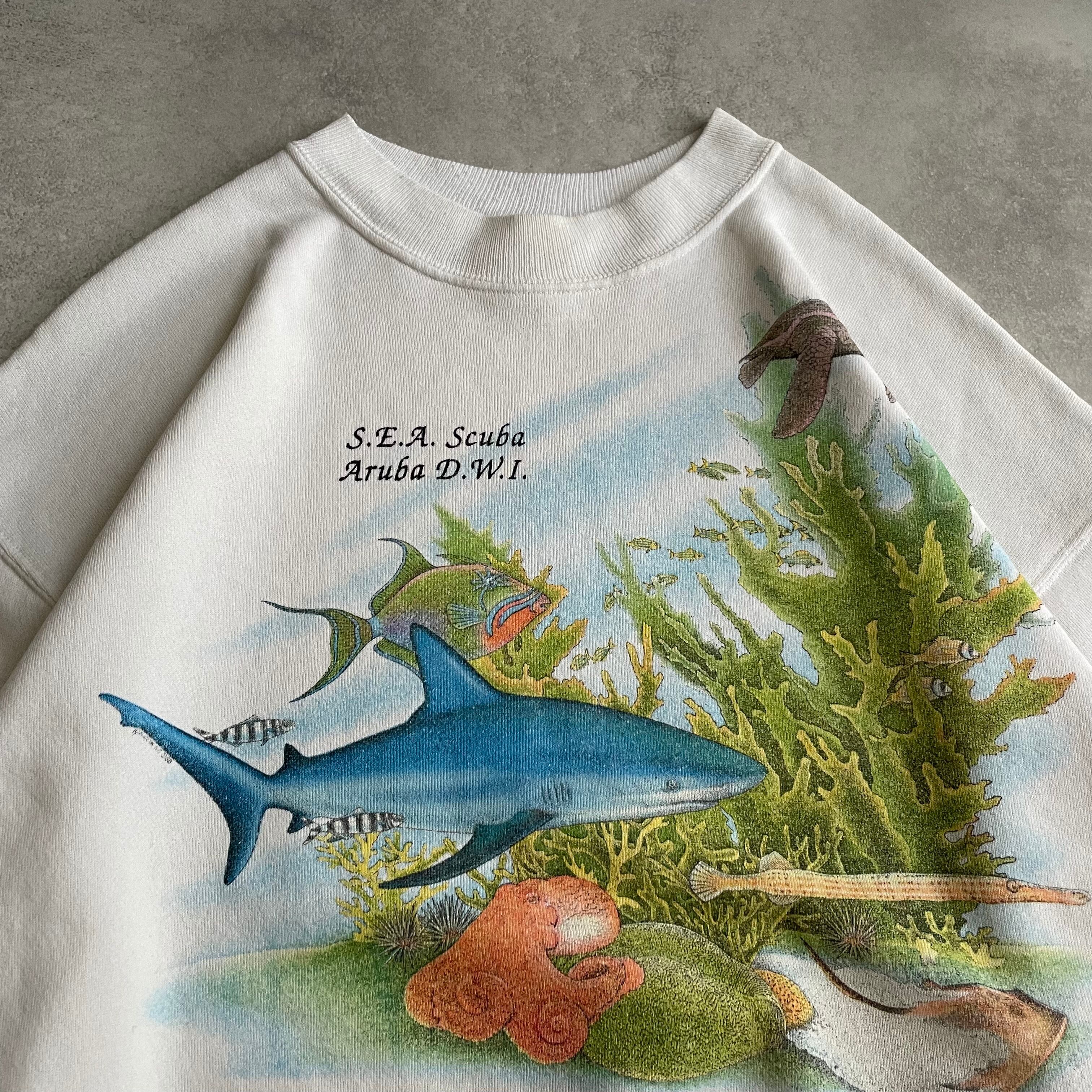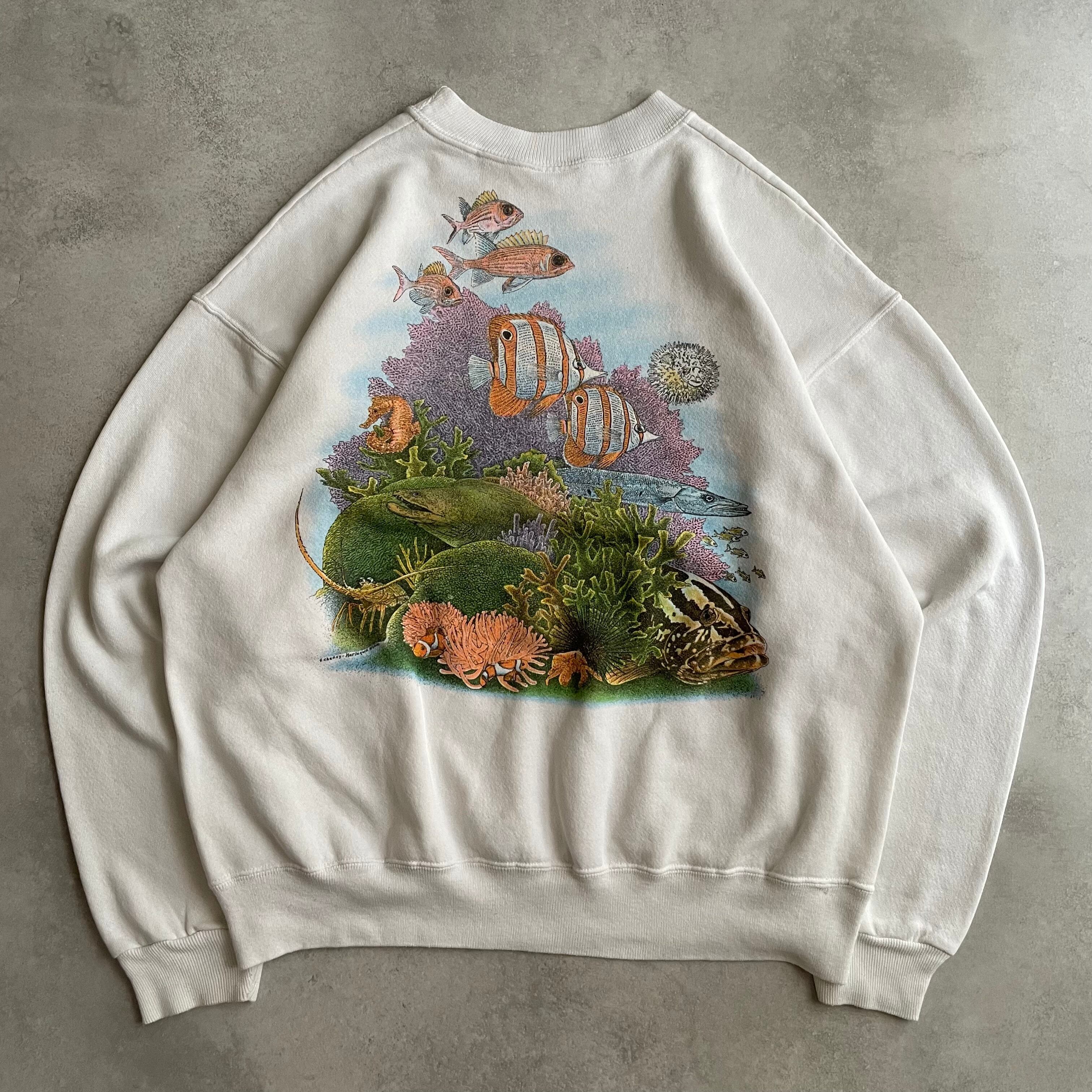 こちらのアイテムは、海洋生物が描かれた白ボディのスウェット