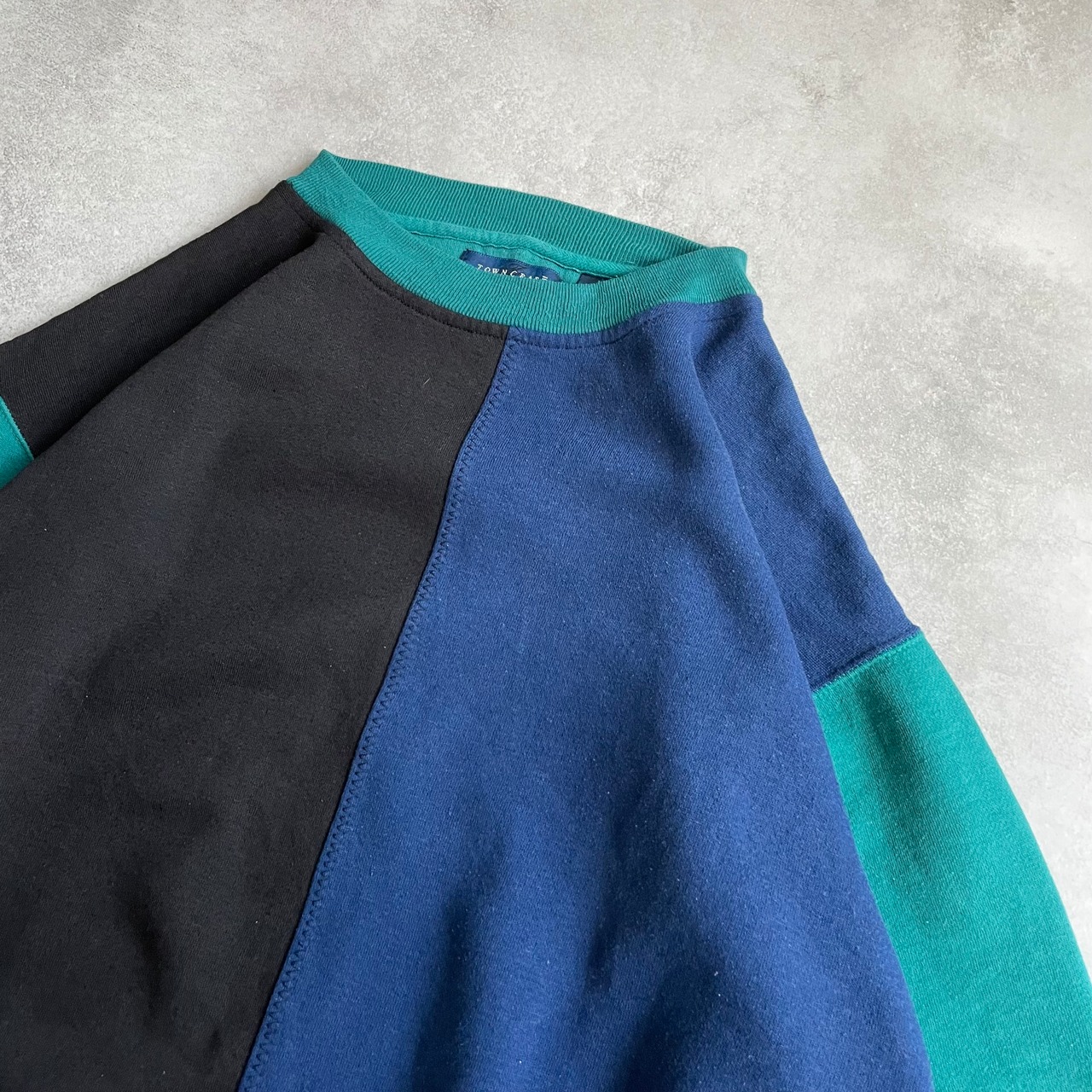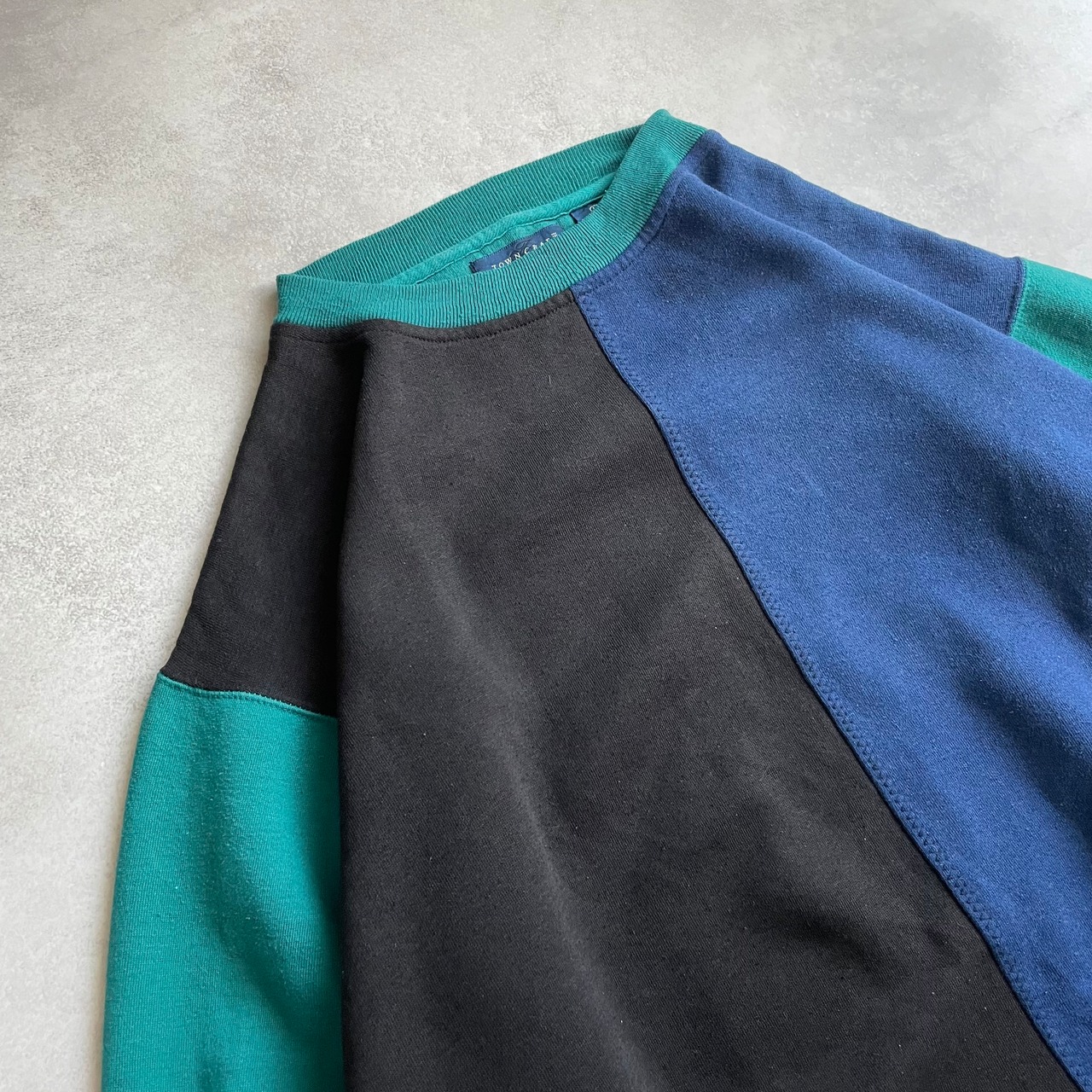 ブルー、ブラック、グリーンで構成された無地スウェットの変形パターン
