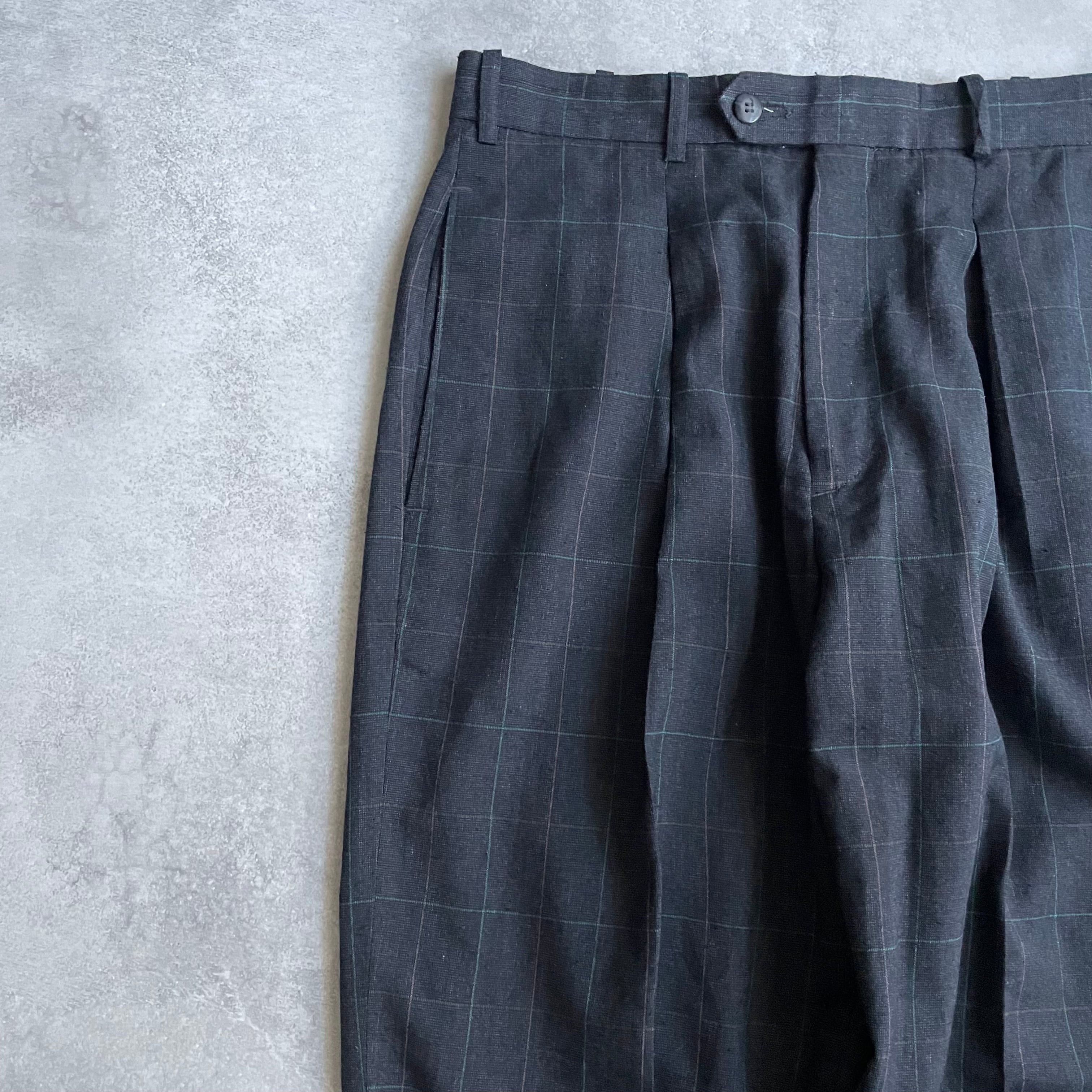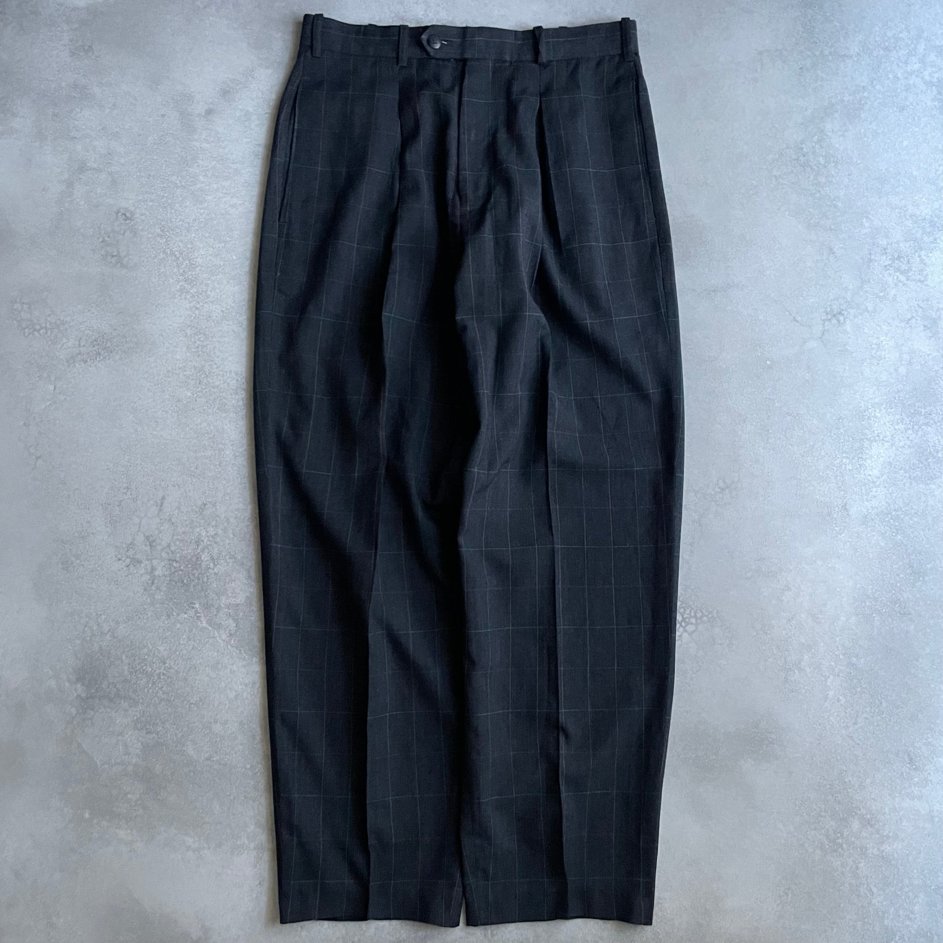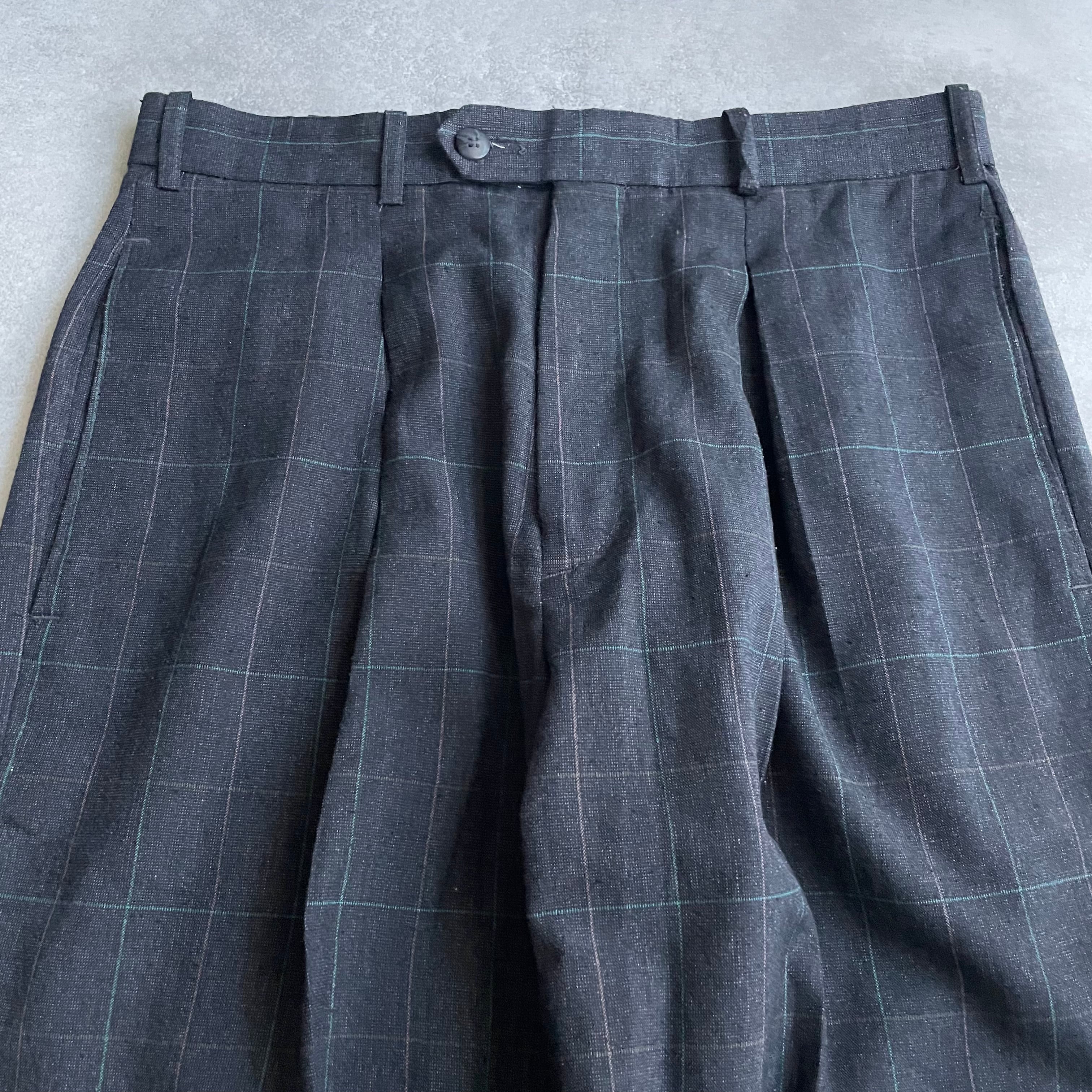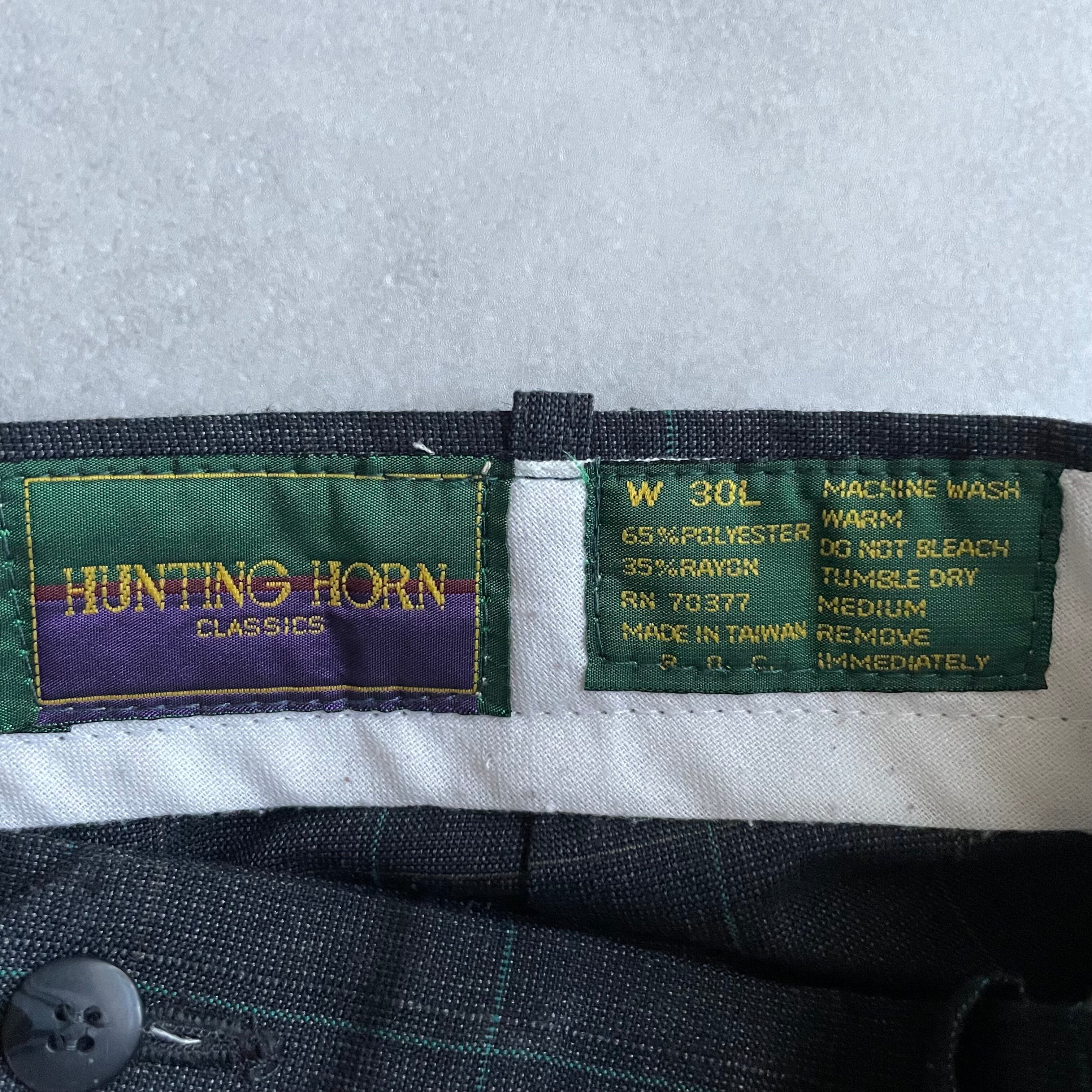 90s Hunting Horn poly/rayon 1-tack check slacks pants