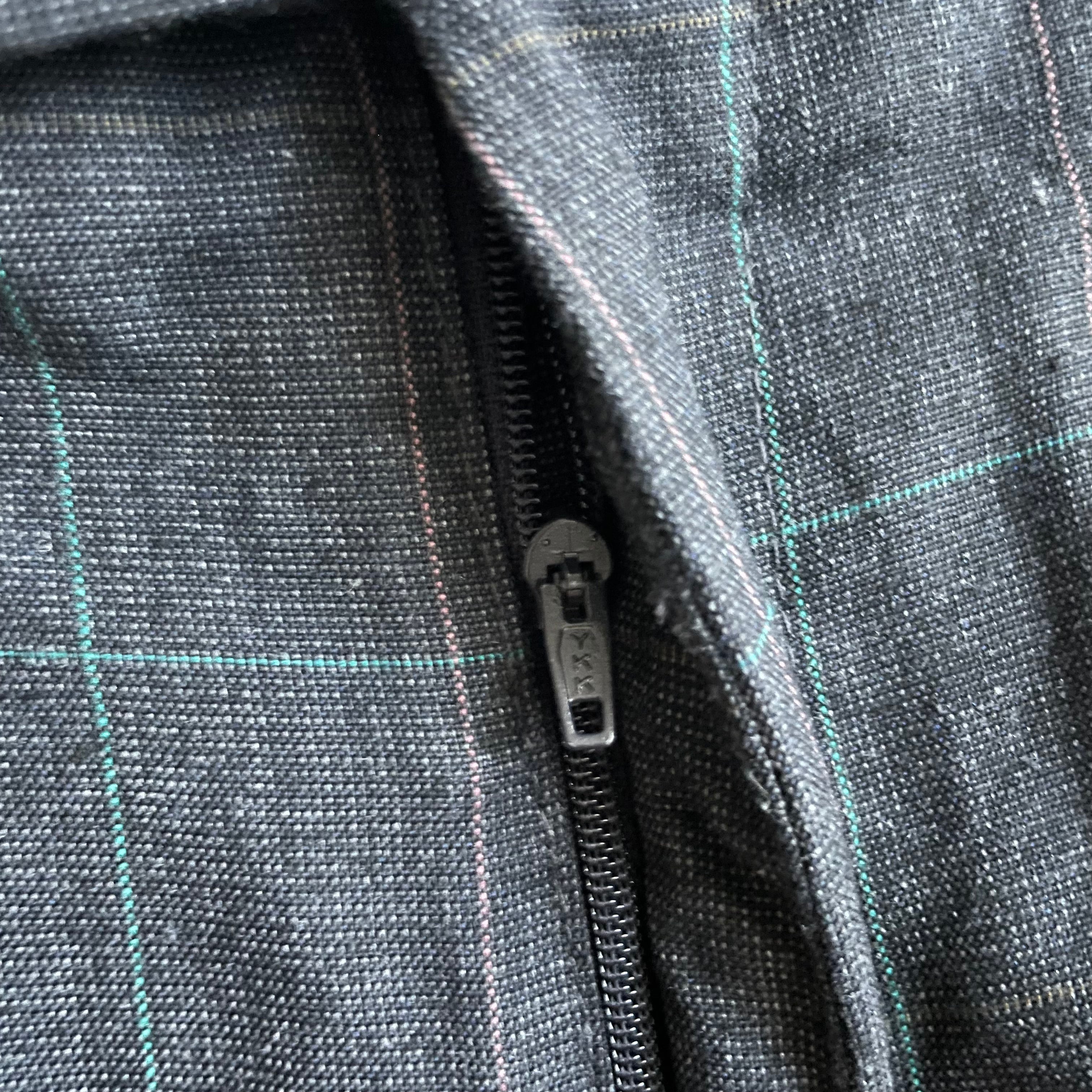 ざっくりとした格子状のラインが入るスラックスで、ジャストで履ける良いサイズバランス