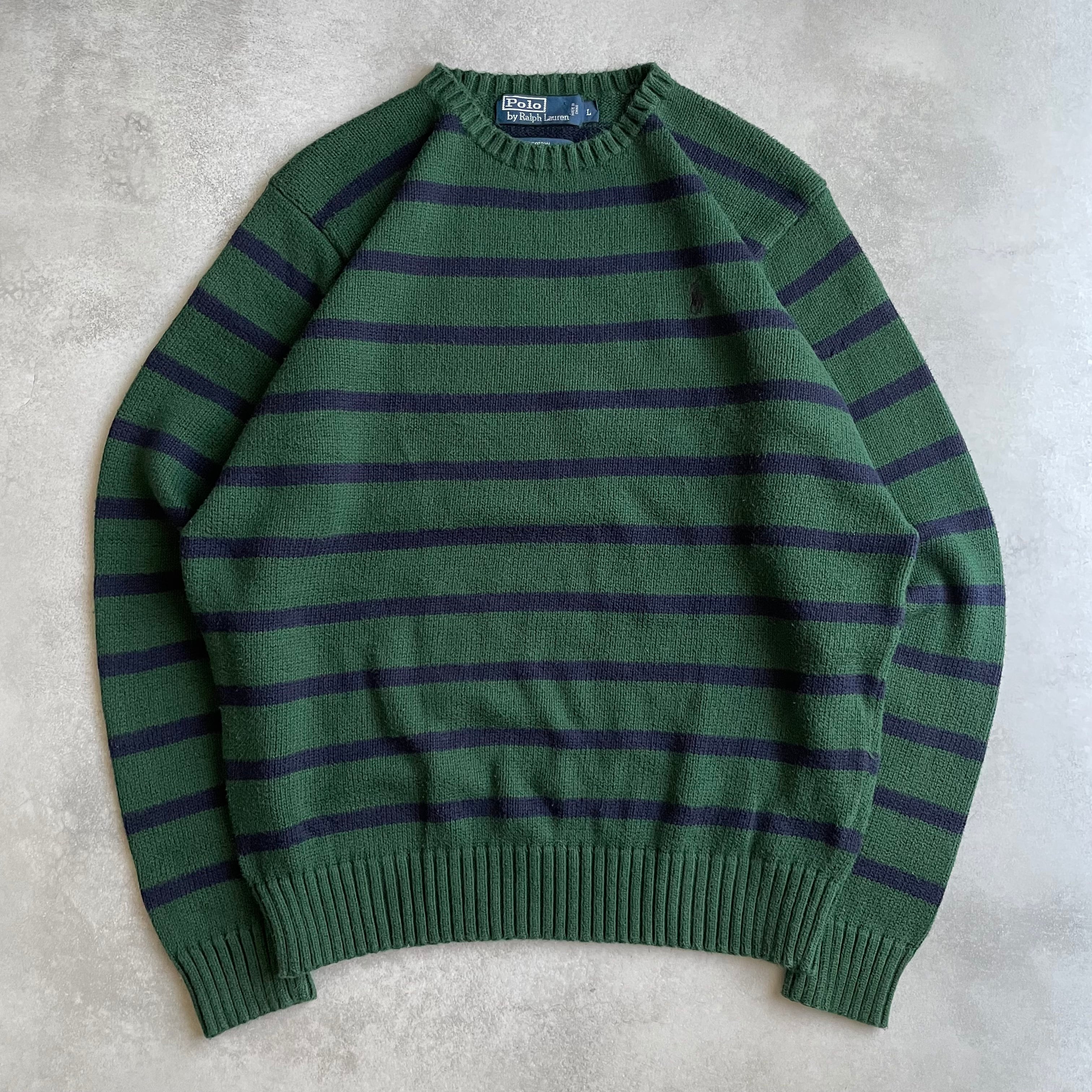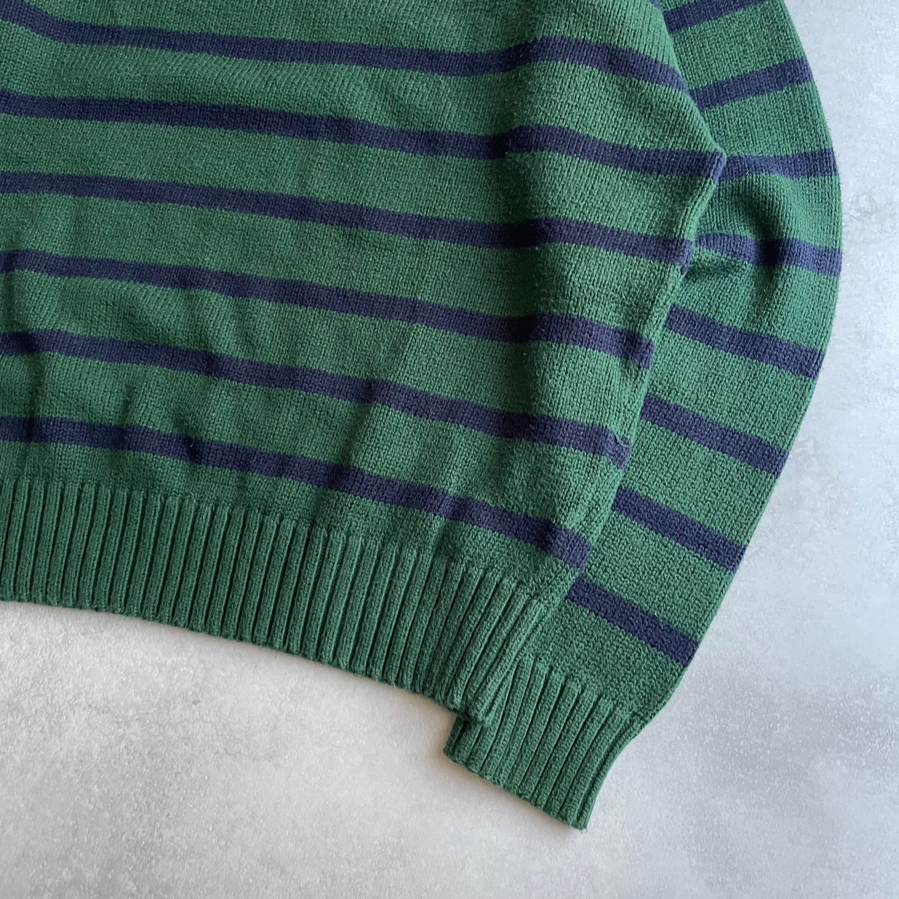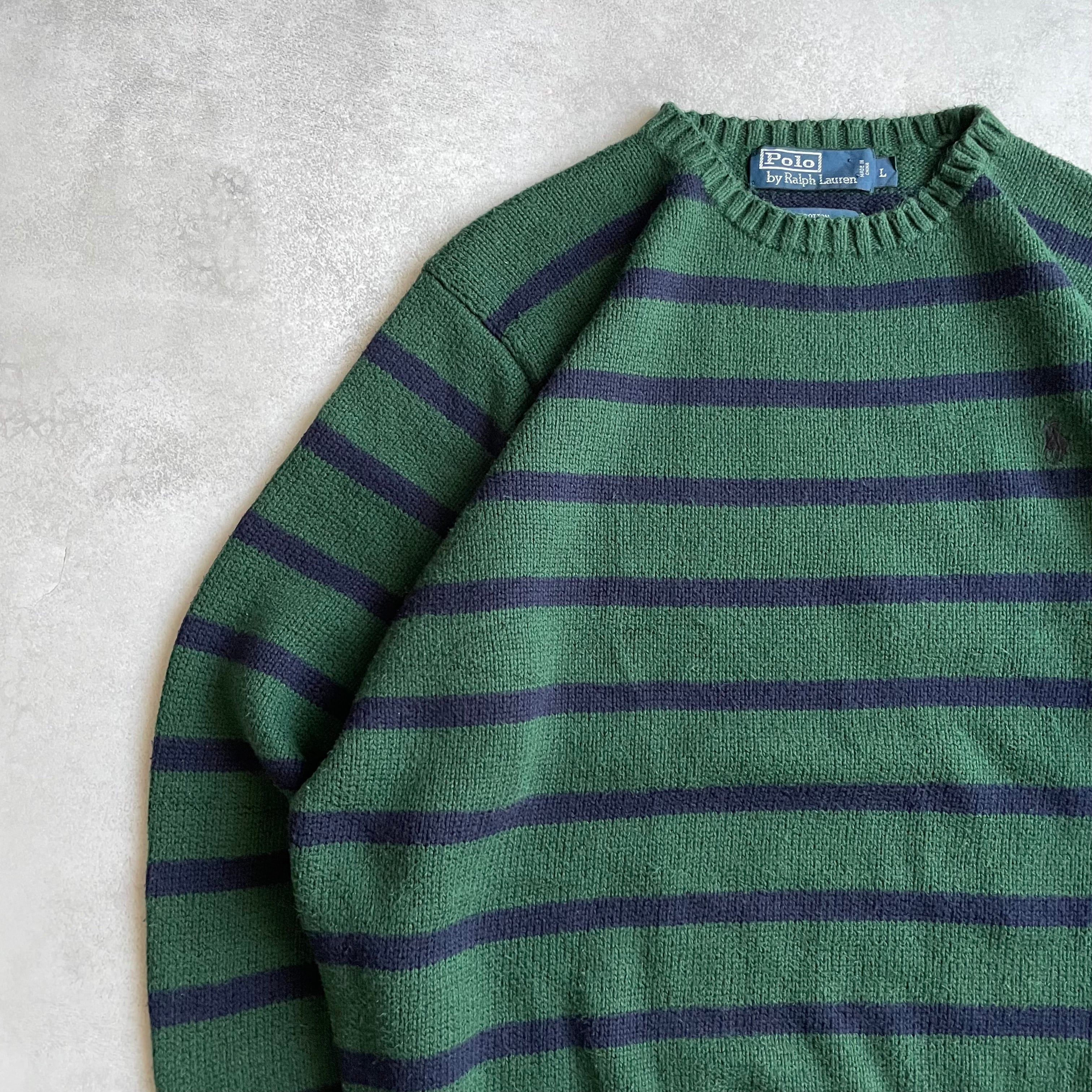 グリーン×ネイビーの好配色の細ピッチボーダー