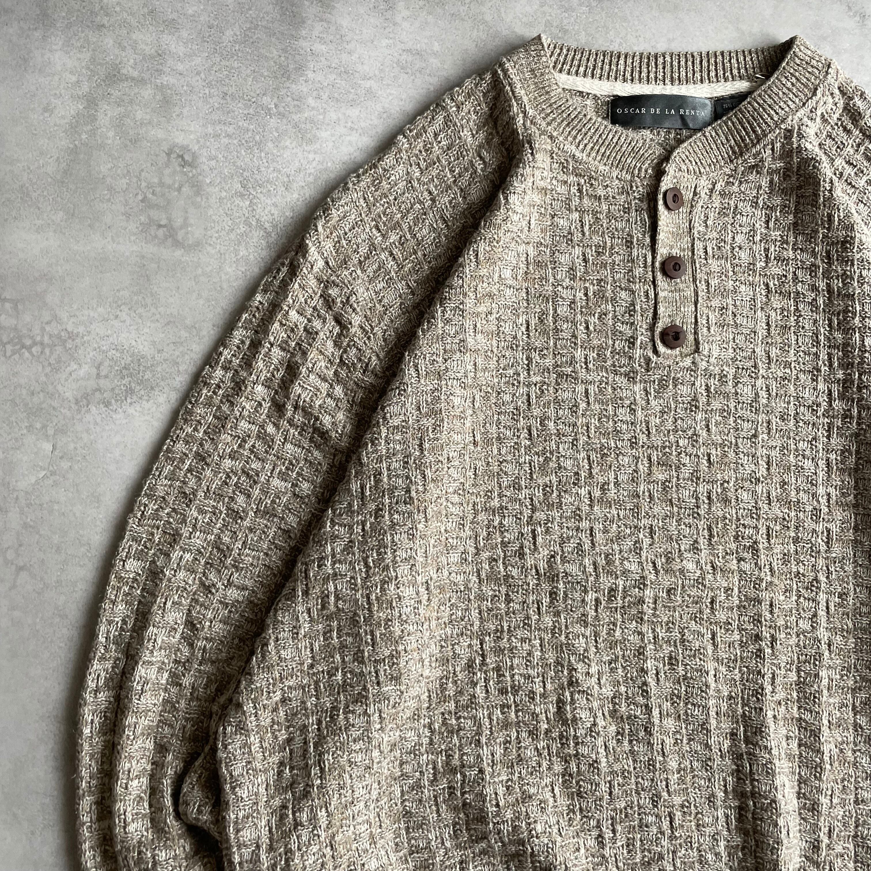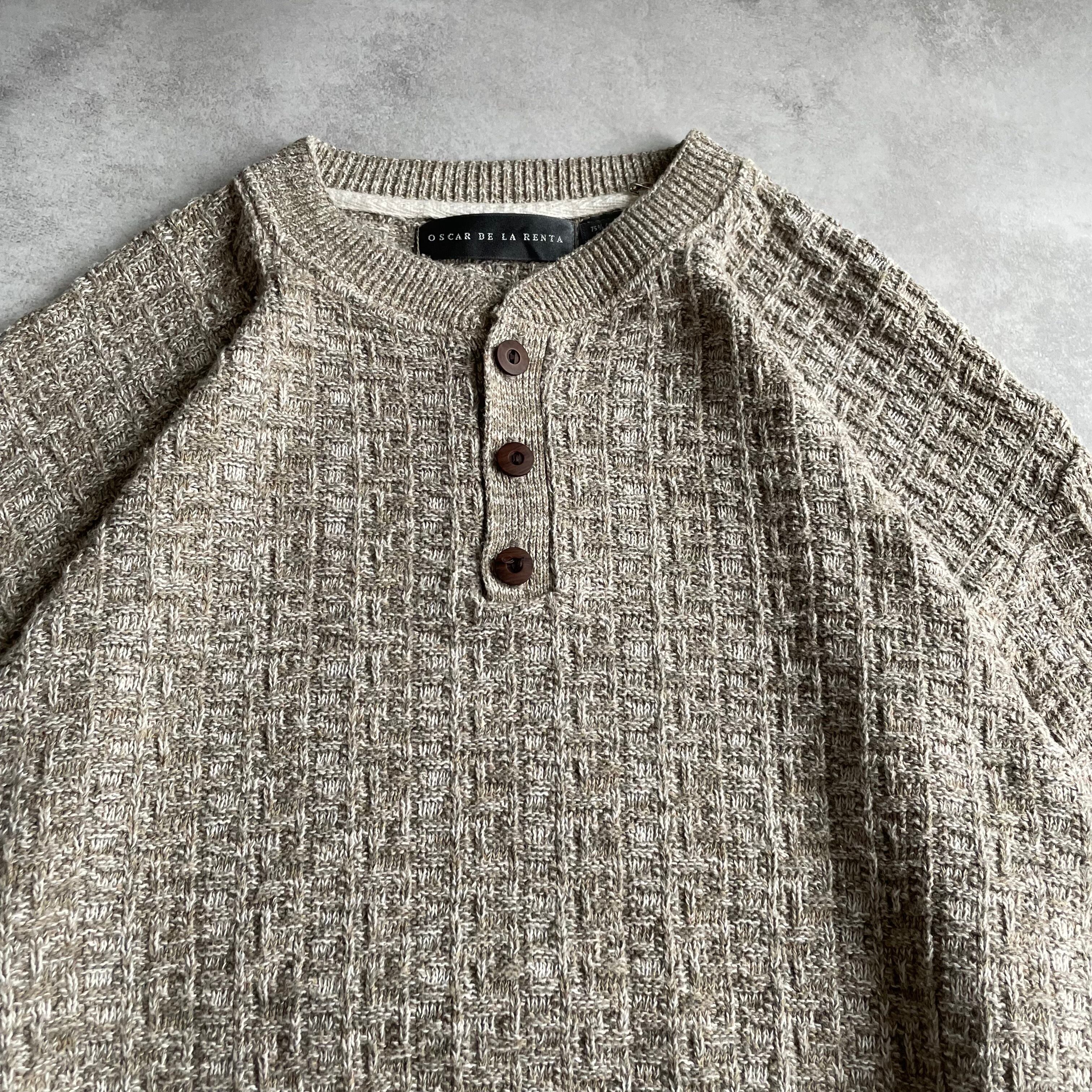 90s Oscar de la Renta cotton/acrylic henry neck sweater