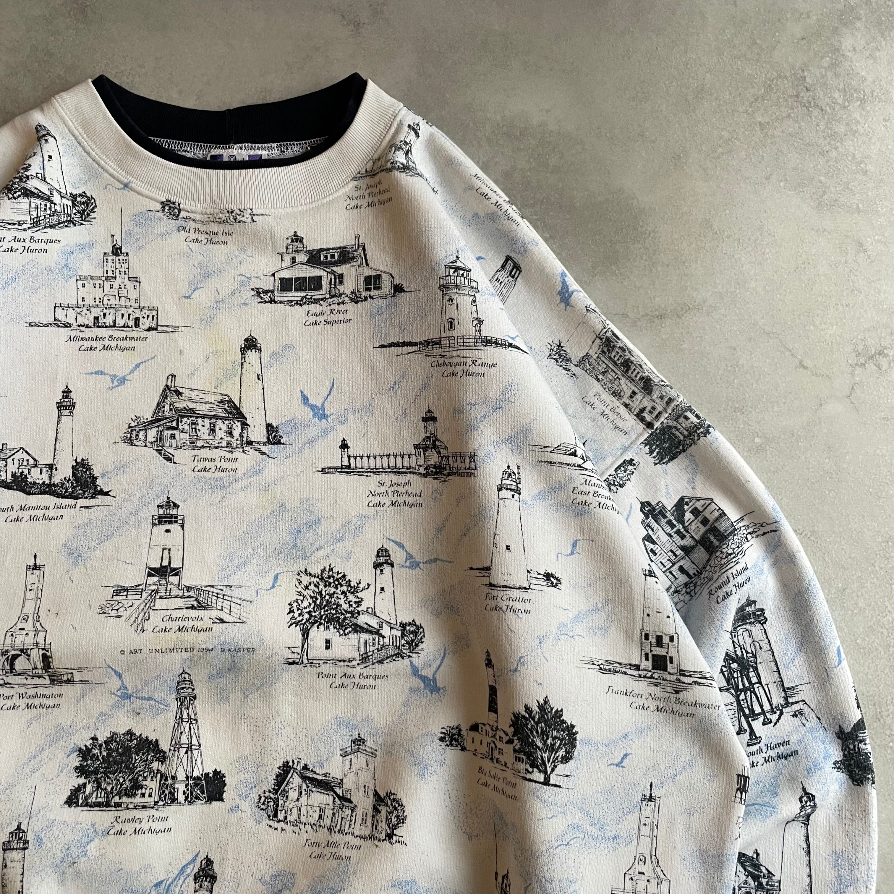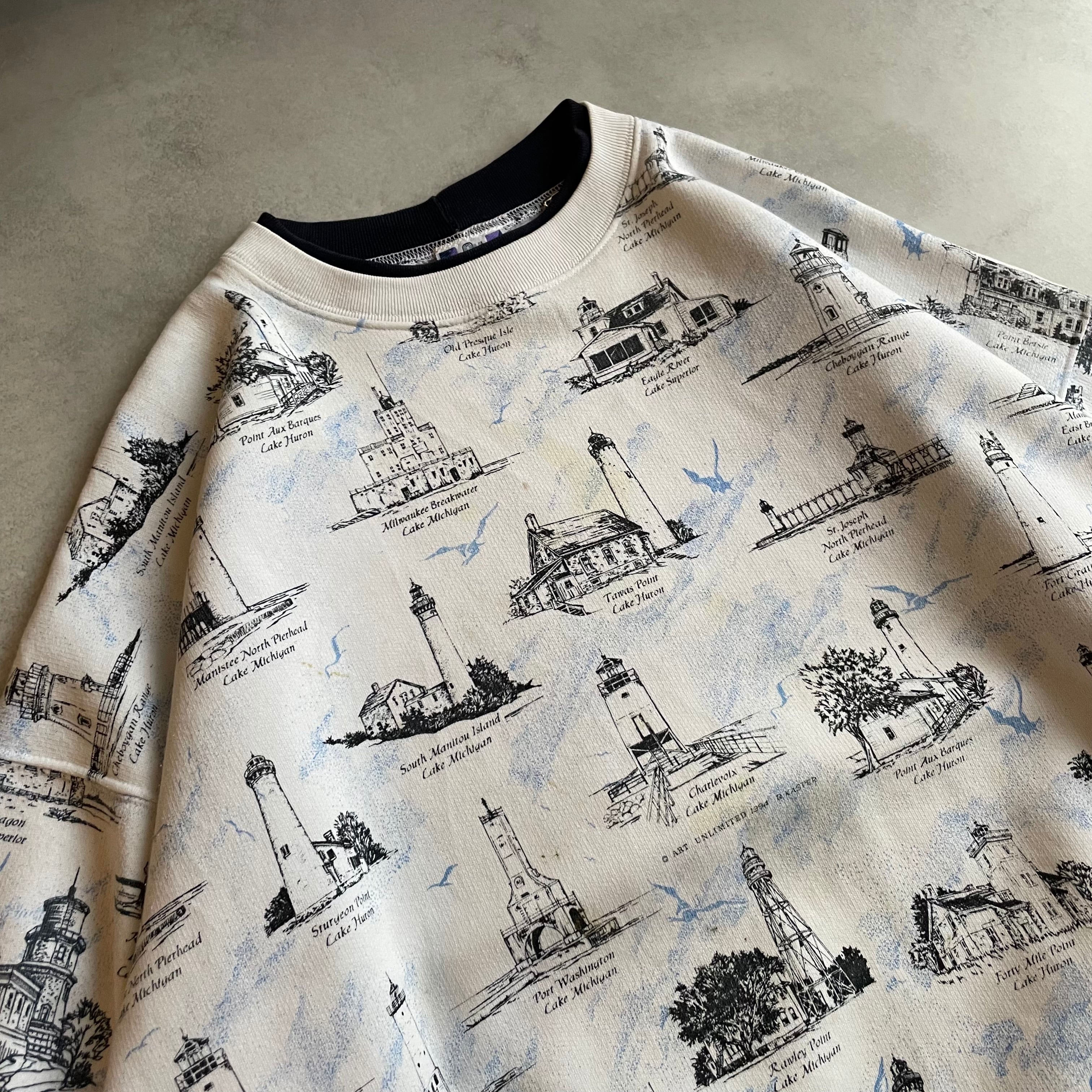 90s Art Unlimited Lighthouse printed sweat shirt Made in U.S.A.