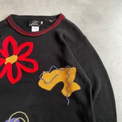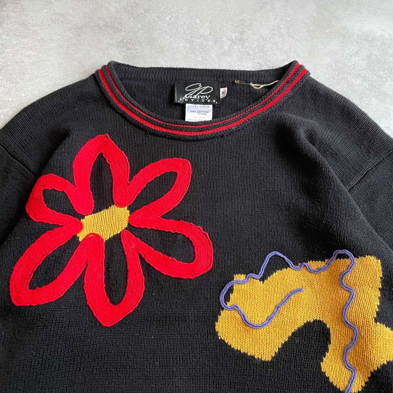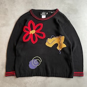 レディース規格のニットで、ブラックボディにお花のデザインが映える1着