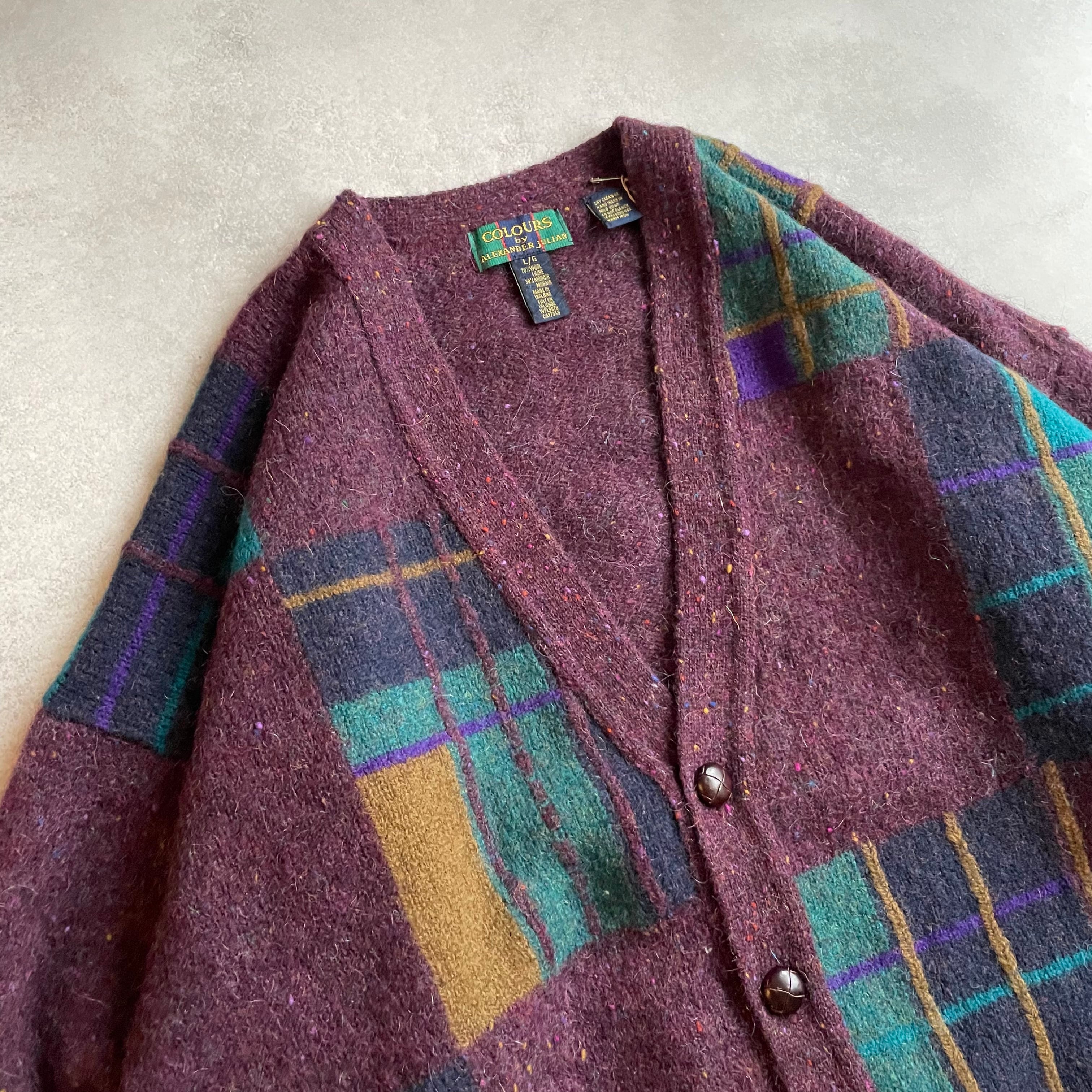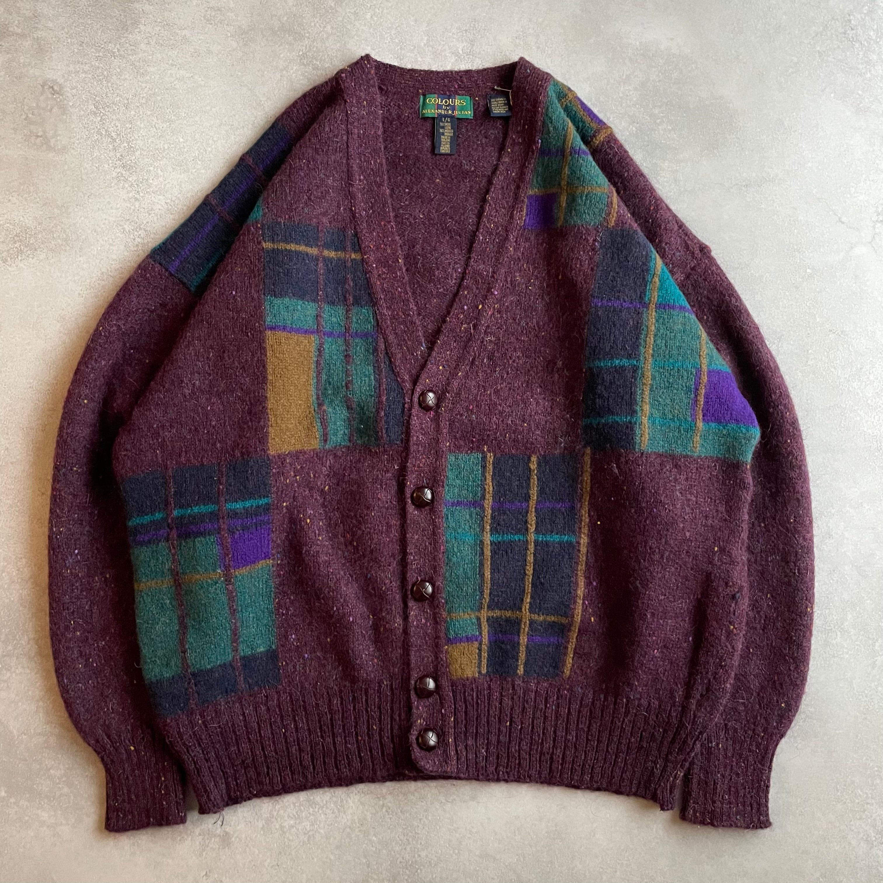 90s COLOURS by ALEXANDER JULIAN wool/mohair knit Cardigan Made in Ireland