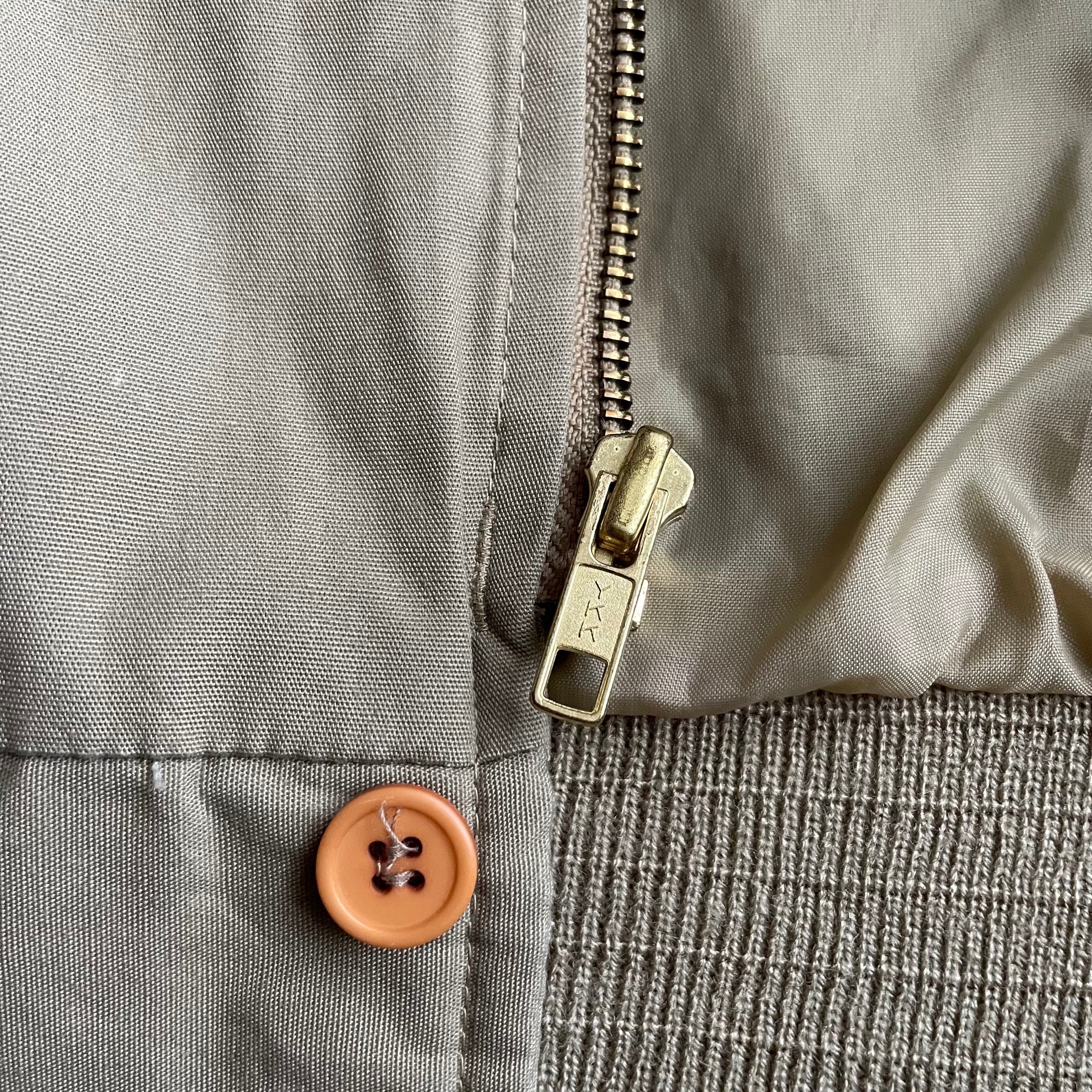 なんてことないブルゾン型のジャケットですが、フロントジップの比翼仕様や、胸から肩、背中にかけて一直線に切り返しの入るデザインなど、細かいディテールも良い作り