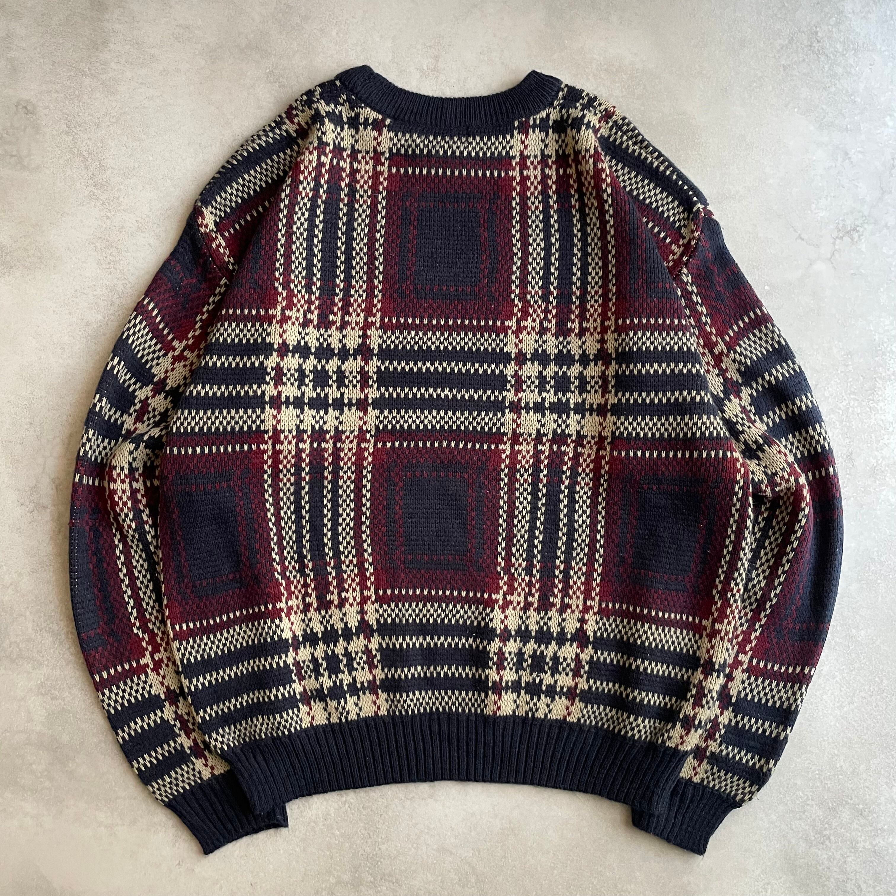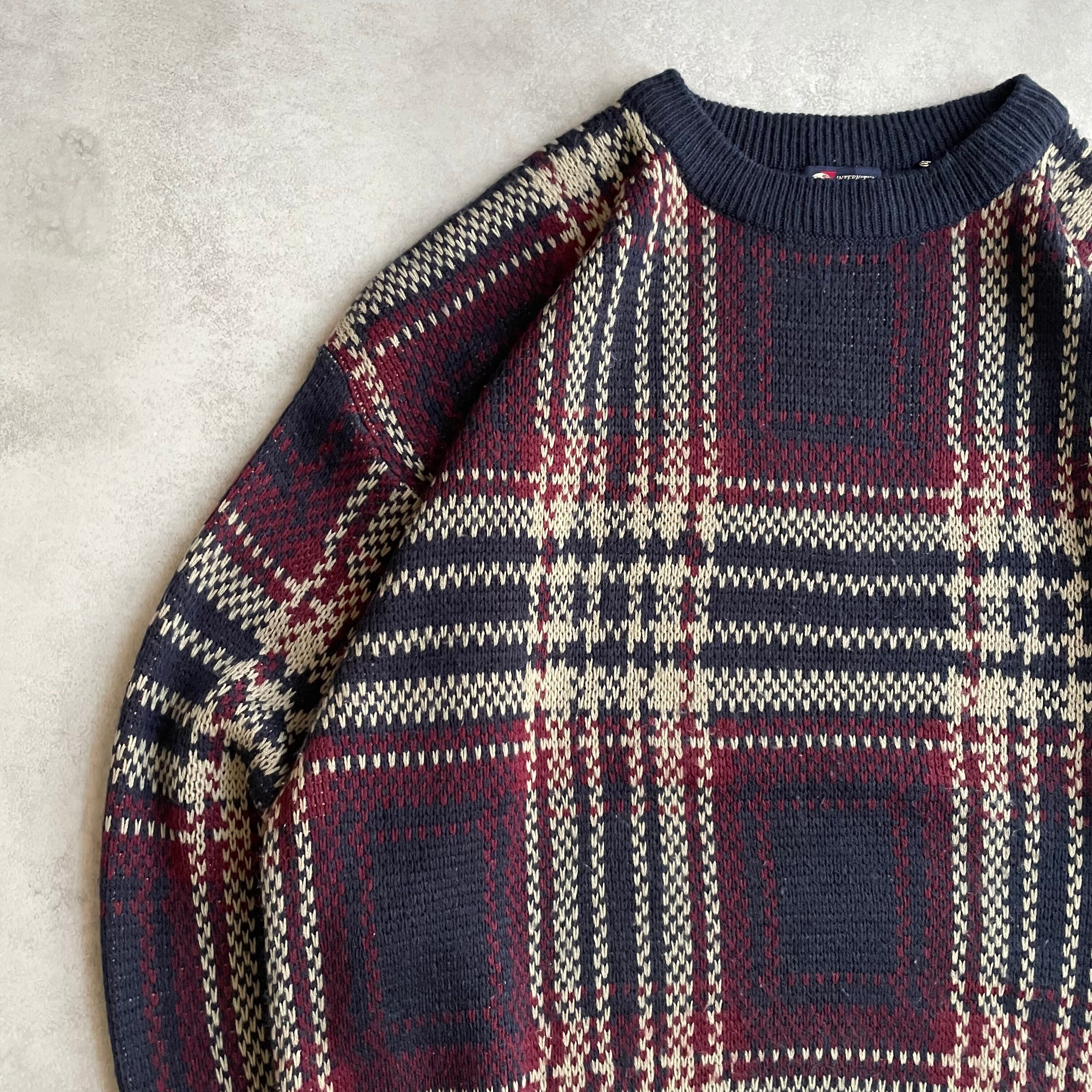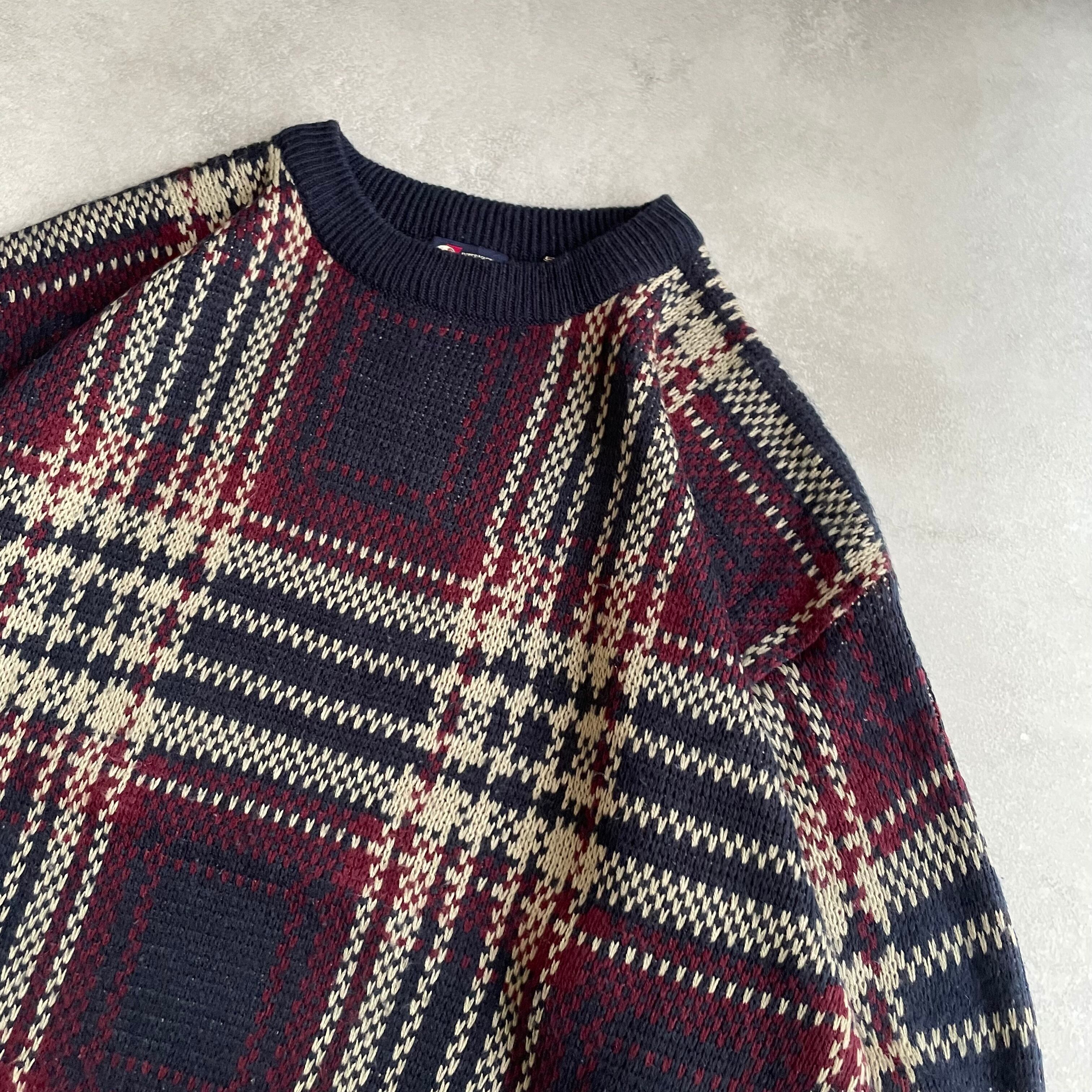 ざっくりとした格子状のデザインで、柔らかい雰囲気を持った可愛らしい柄ニット