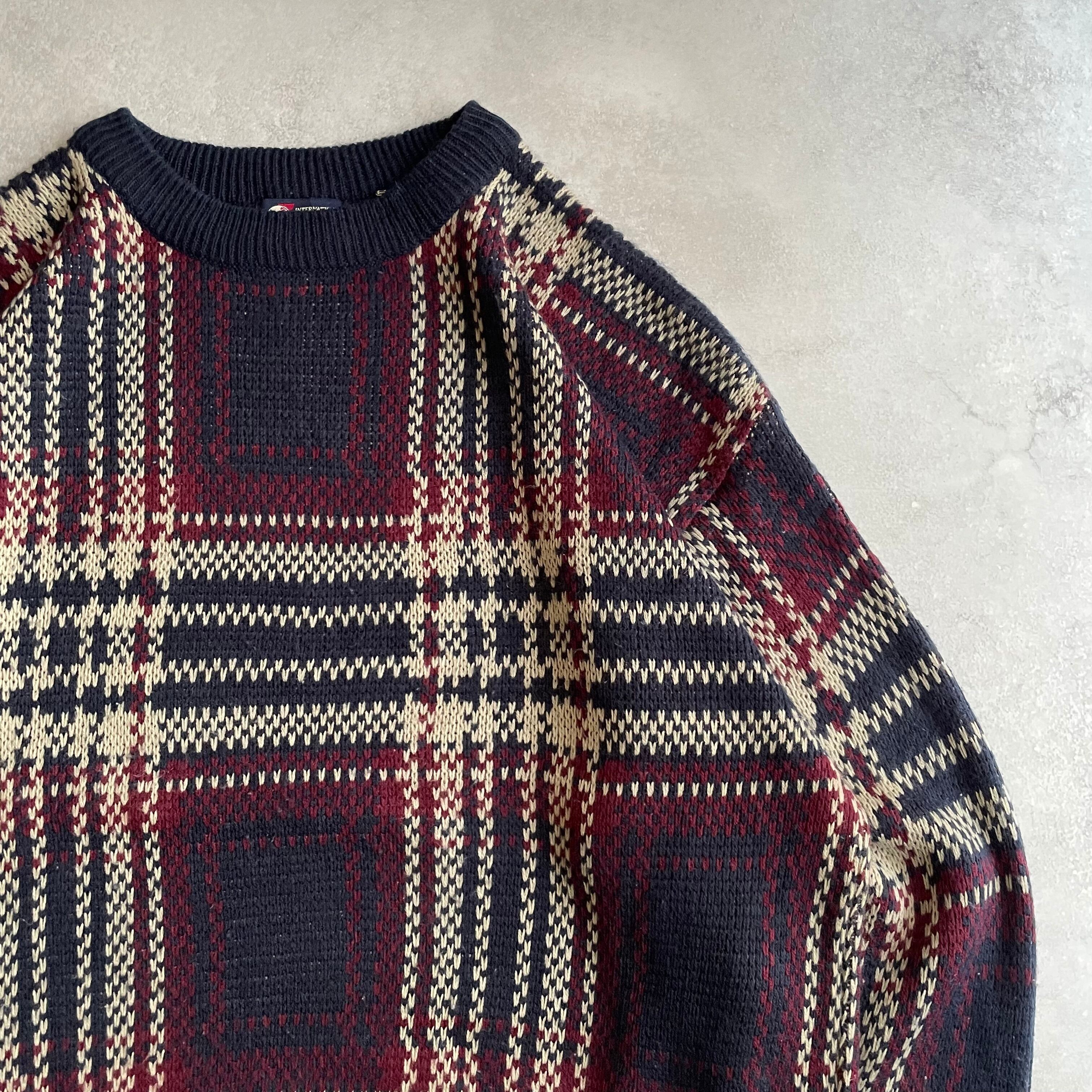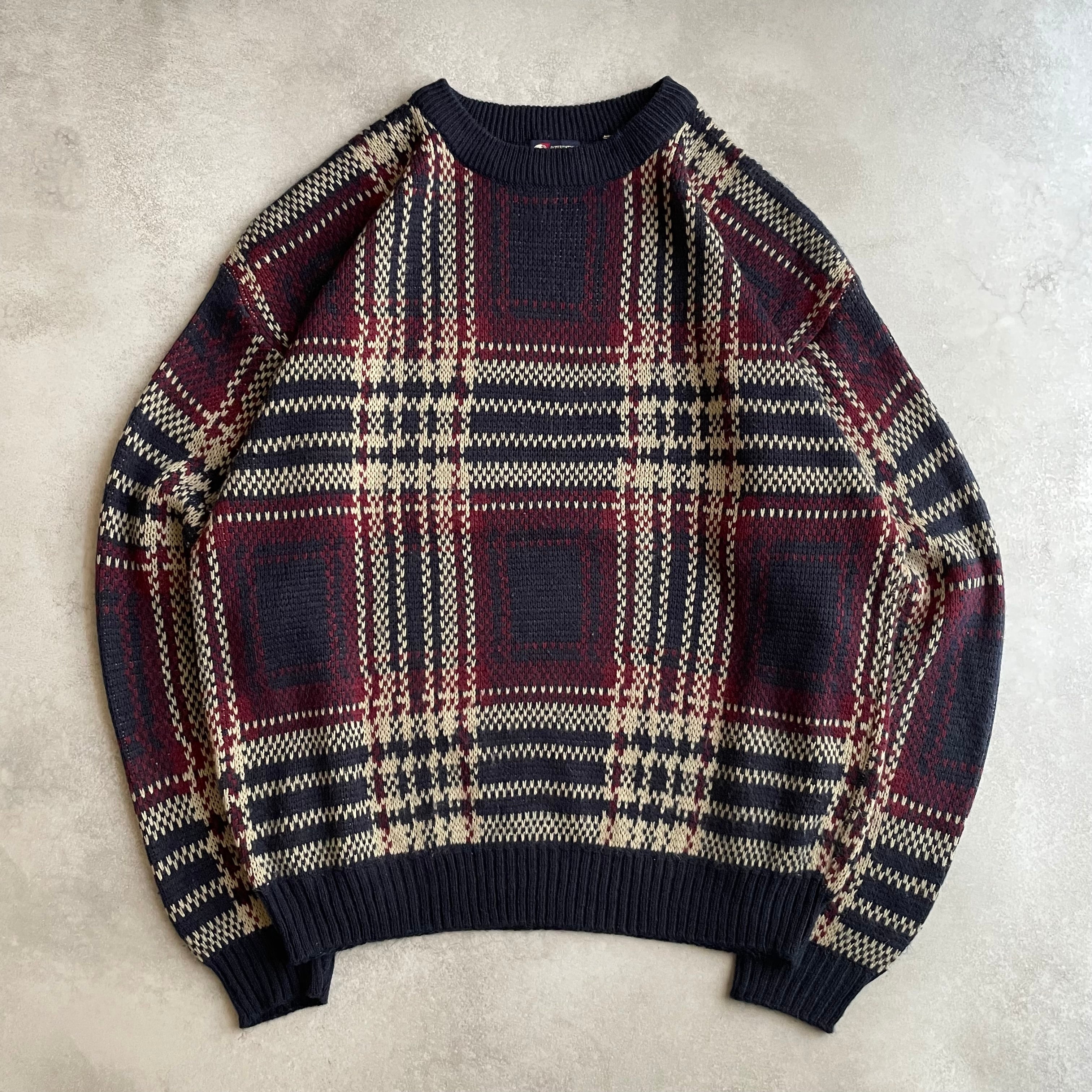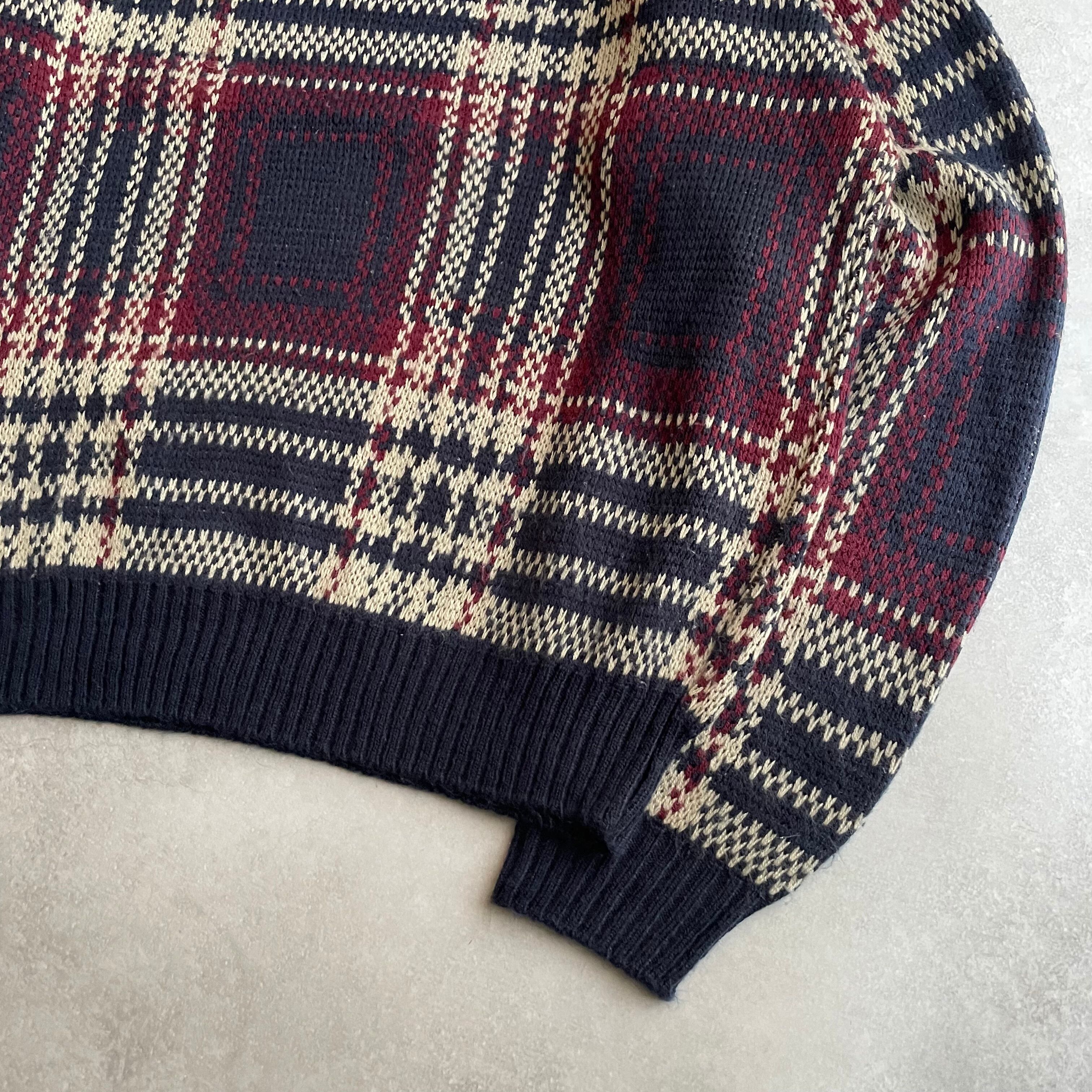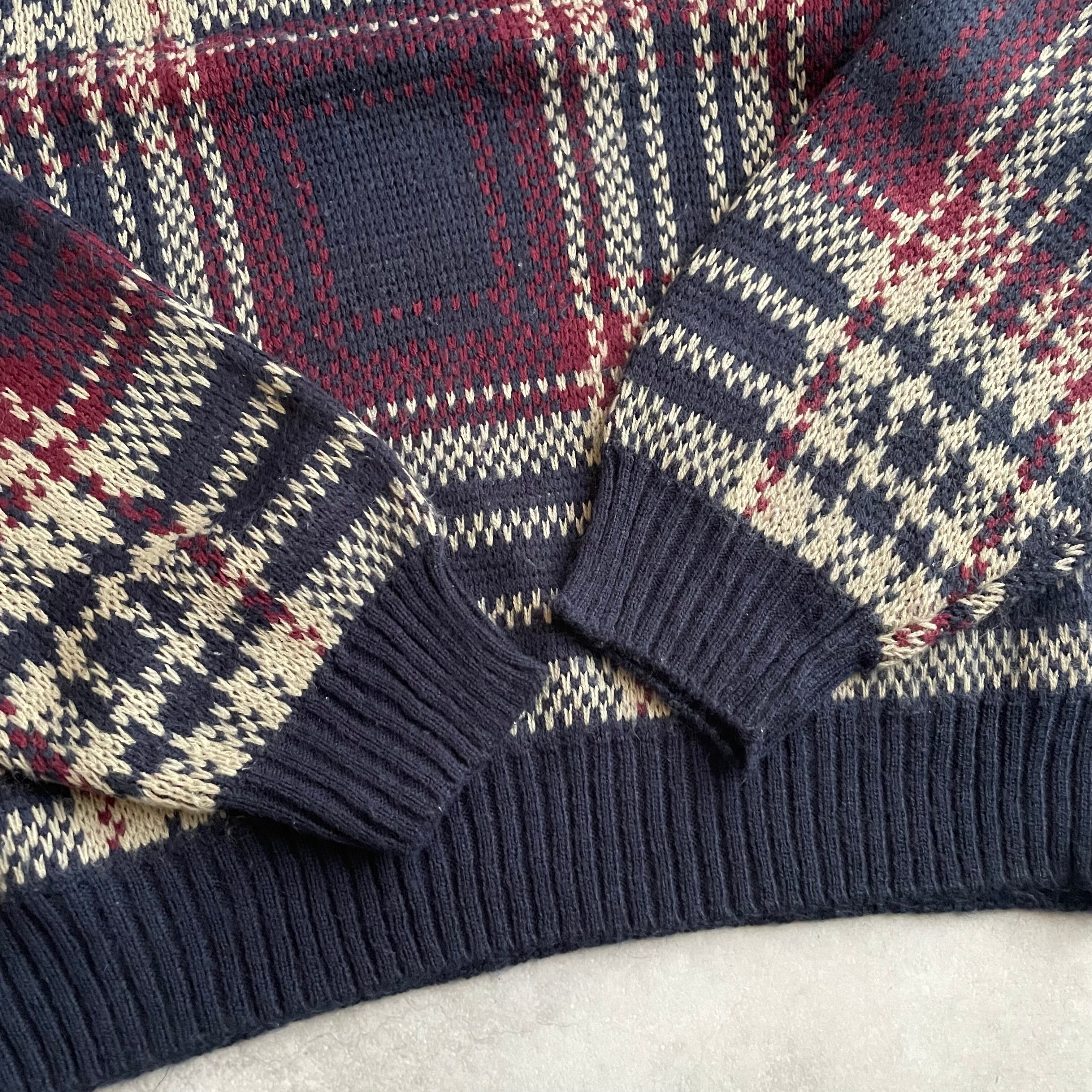 ざっくりとした格子状のデザインで、柔らかい雰囲気を持った可愛らしい柄ニット