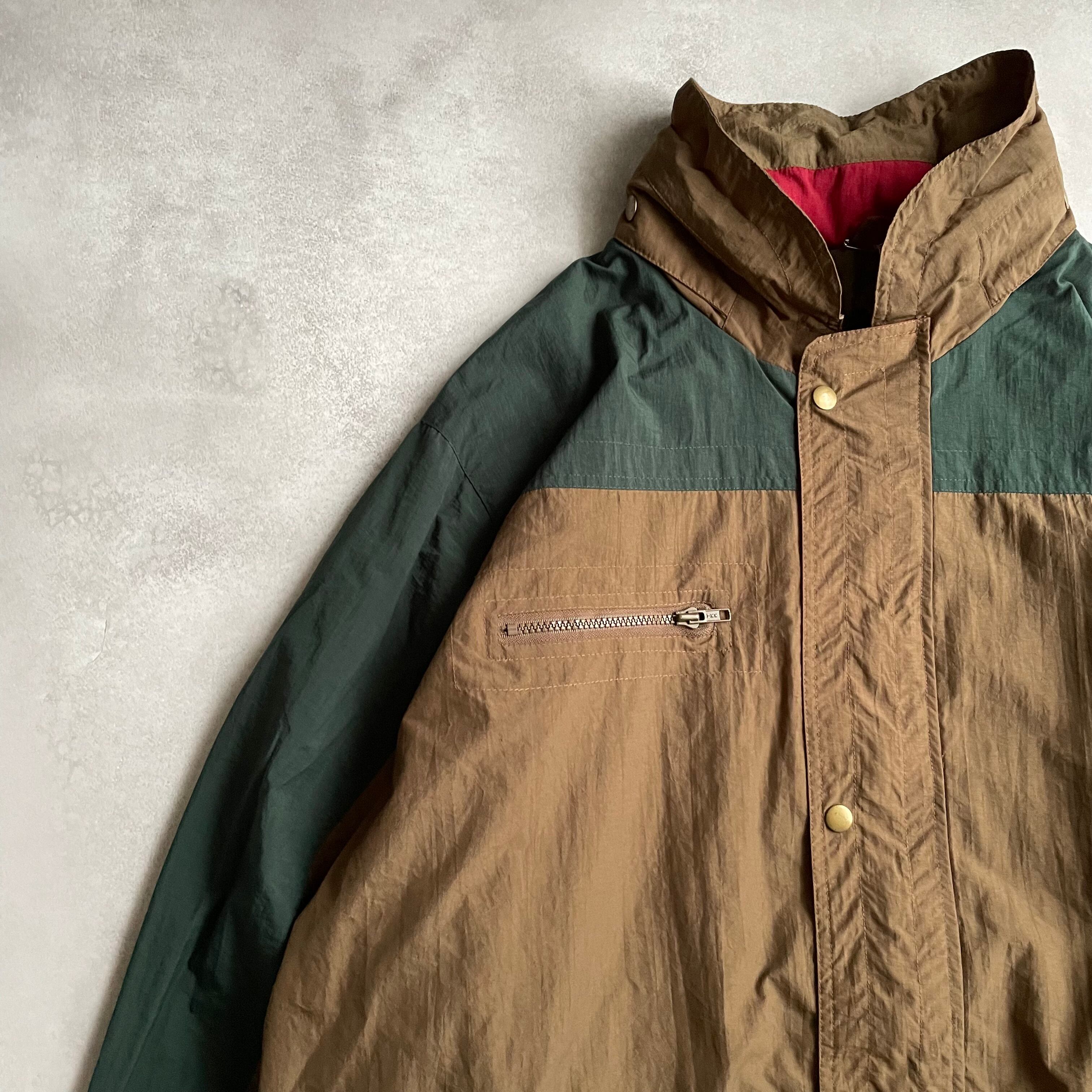 アウトドアブランドっぽい2トーンの色合いに、裏地や比翼部分の赤色が良い差し色になってますね