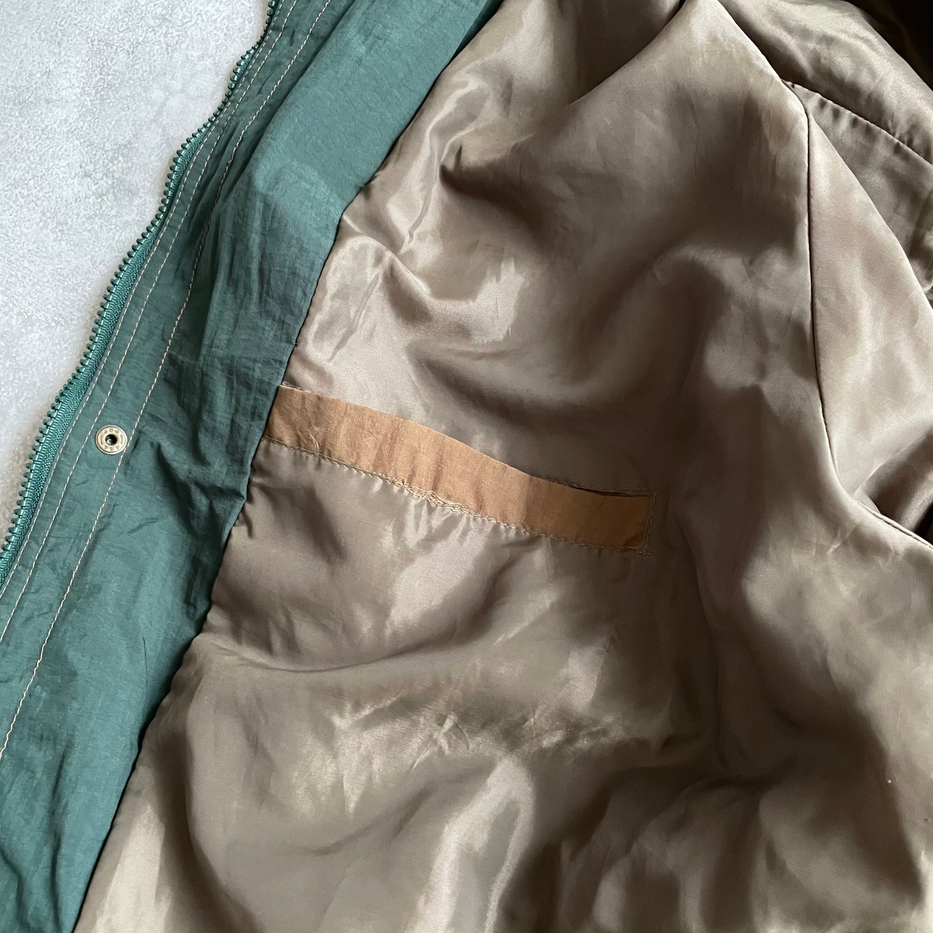 ハンティングジャケットをベースにして素材を変えたような作りが特徴的