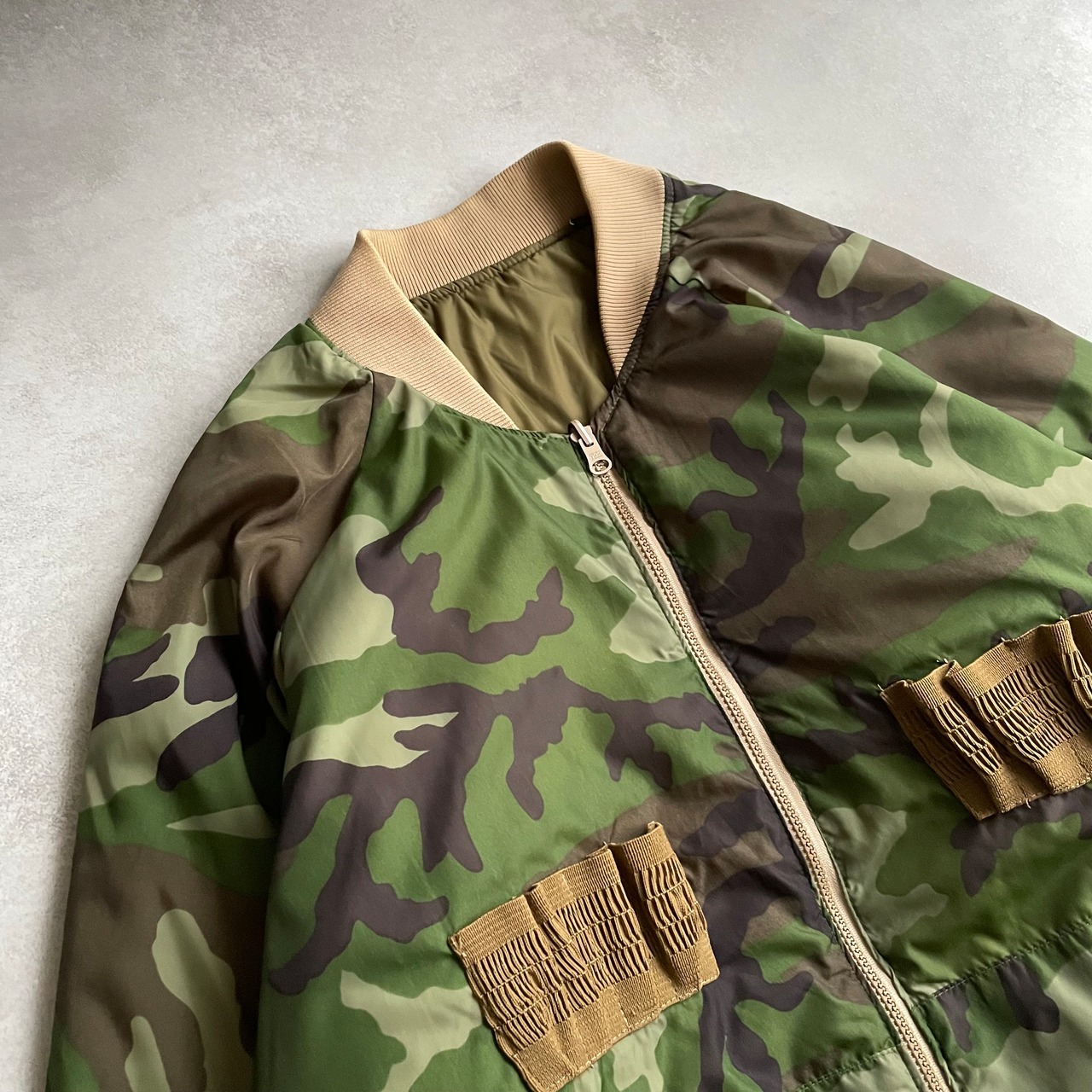 A面は、ハンティングジャケットなどに付くバレットホルダーがアクセントになっています
