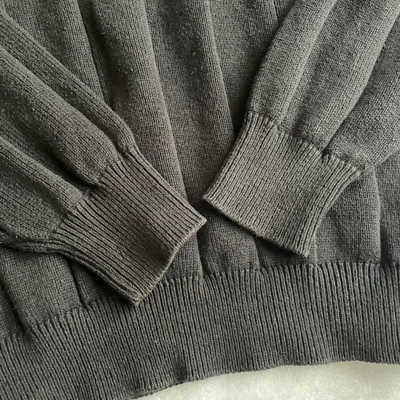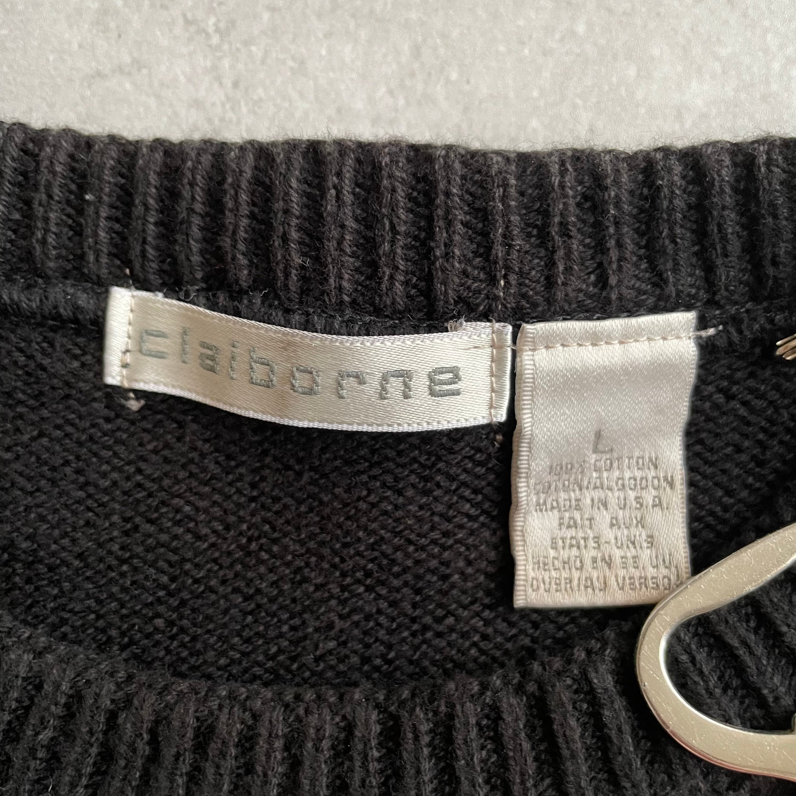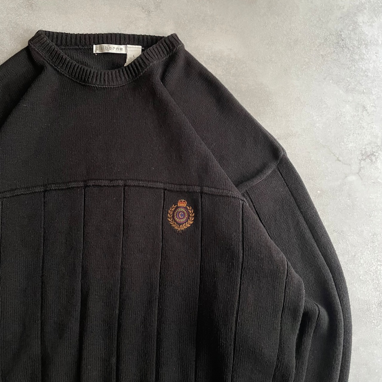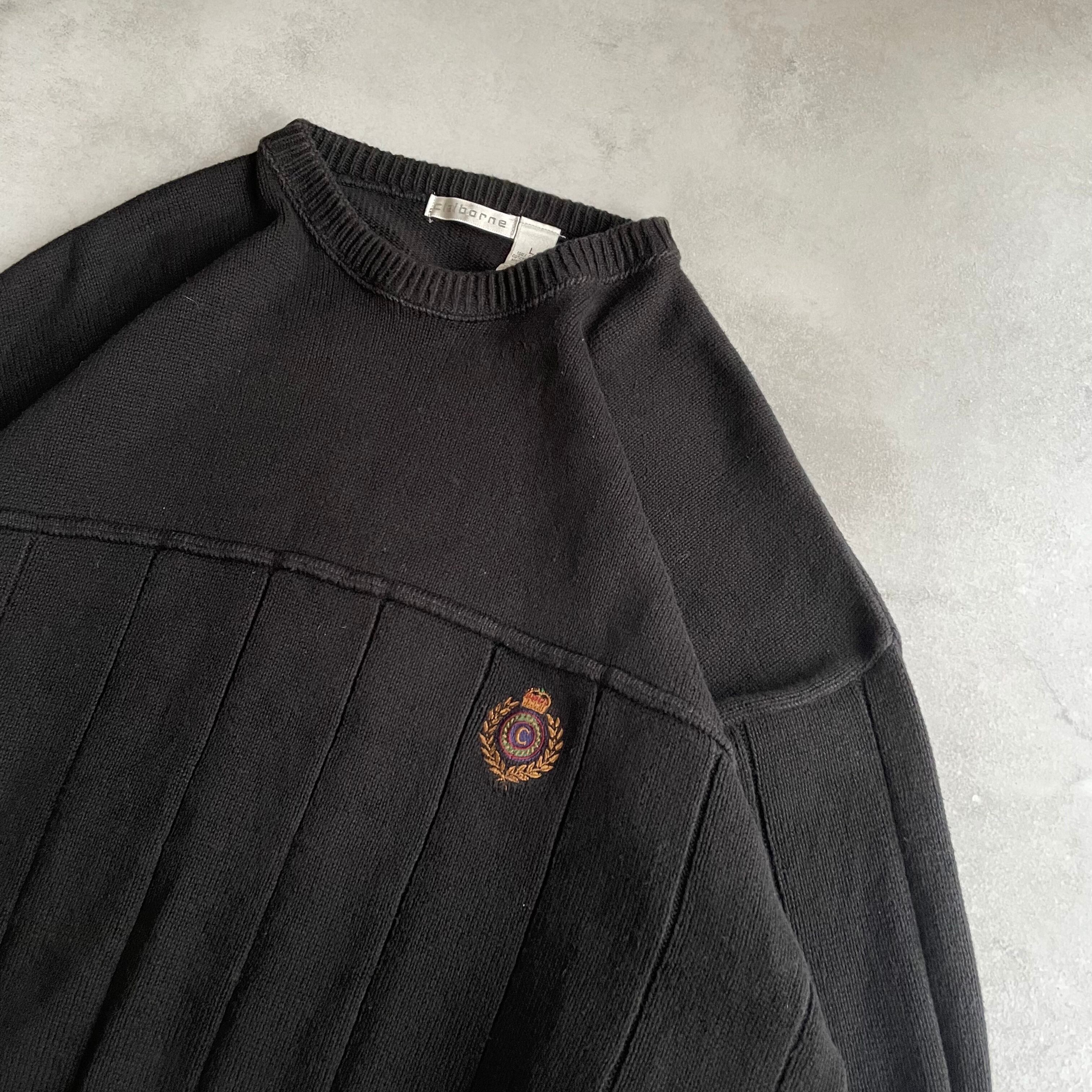 ブラック単色でカップショルダージャケットのような切り替えデザインが施されたニット
