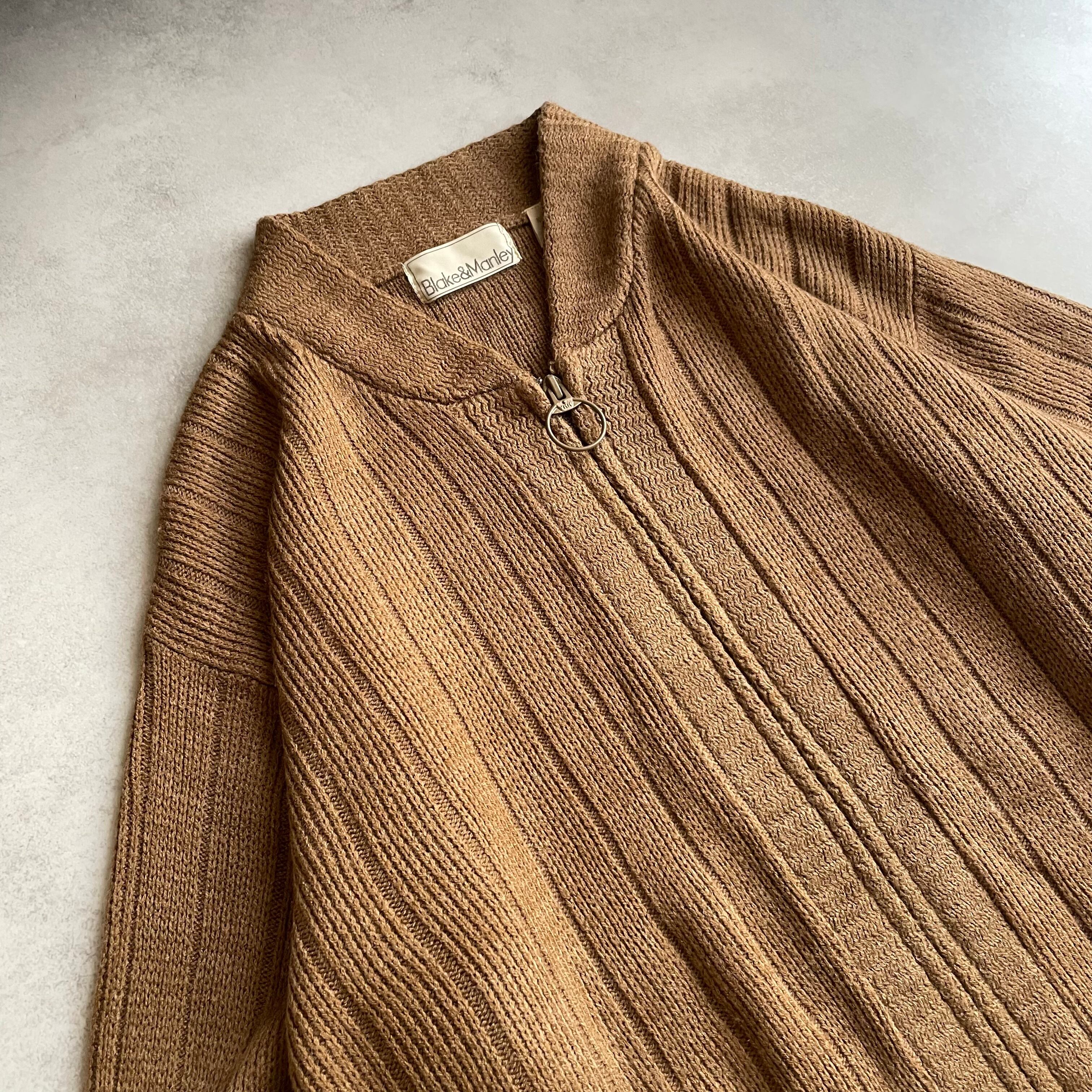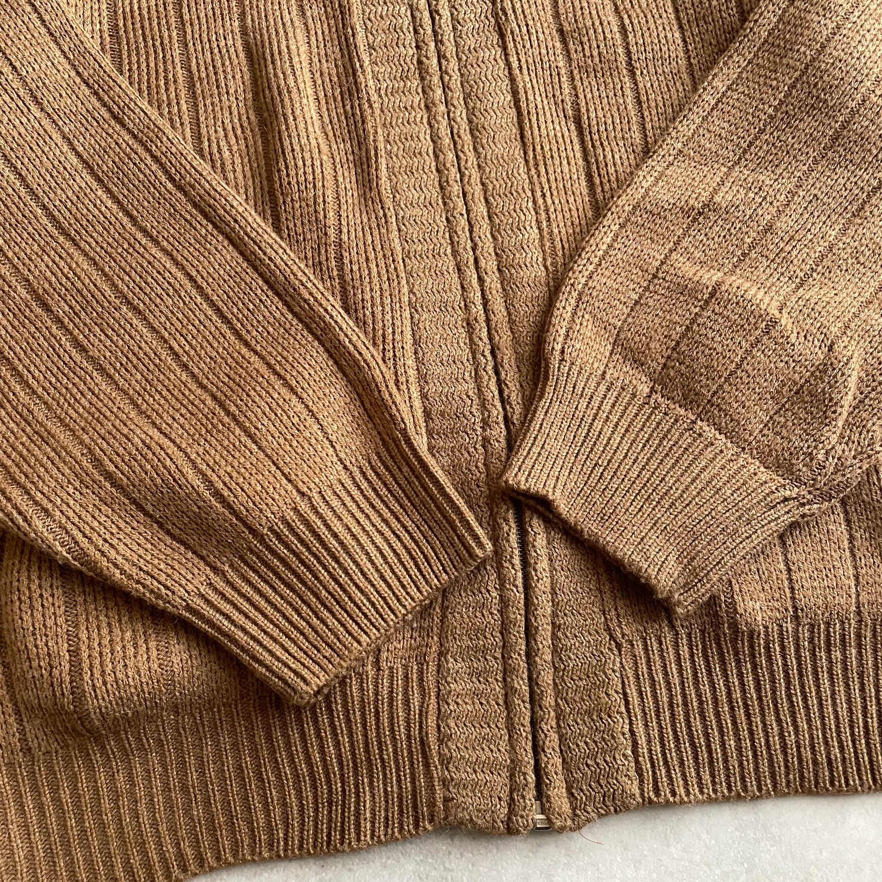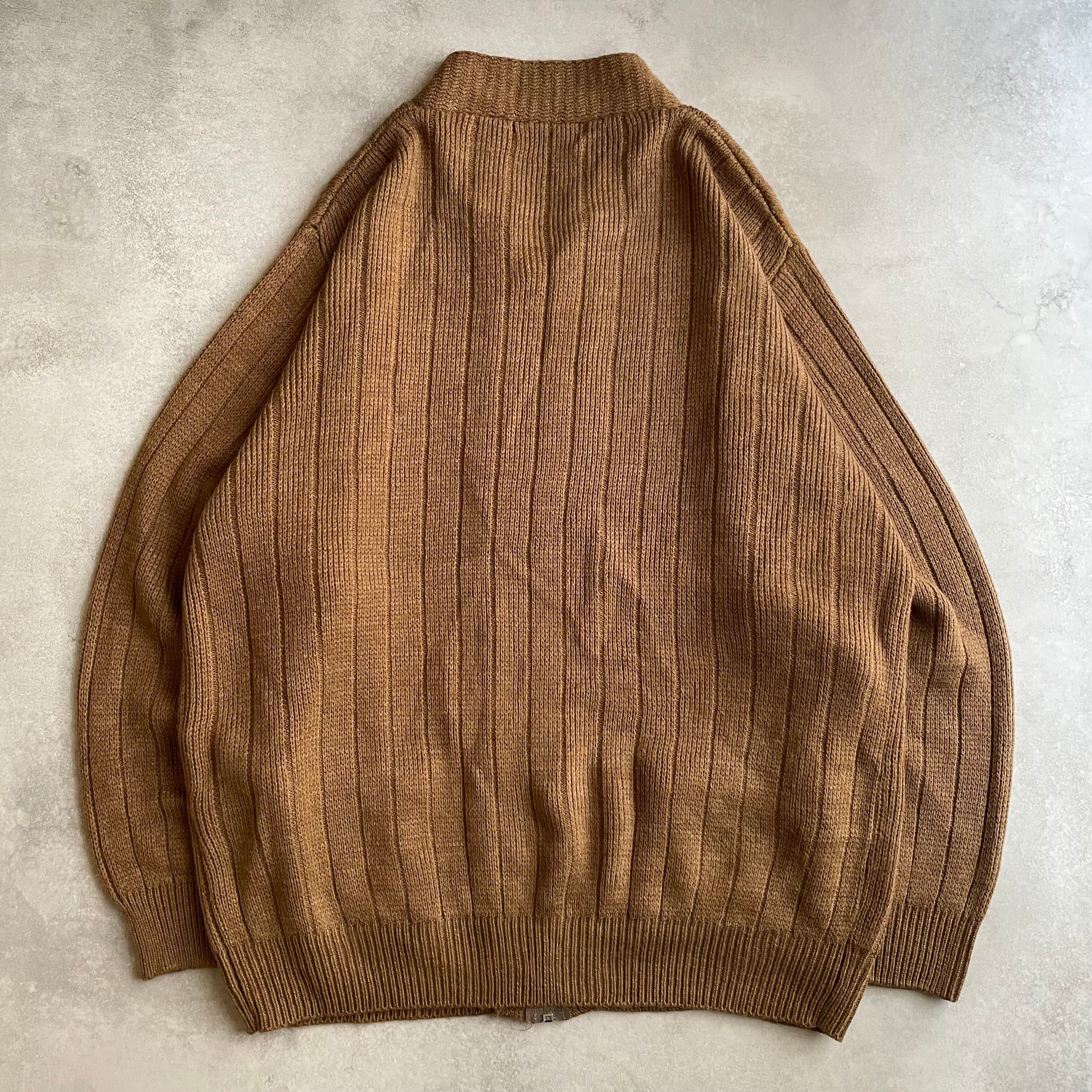キャメルカラーのアクリルセーターで、プルオーバータイプではなくジップアップ仕様