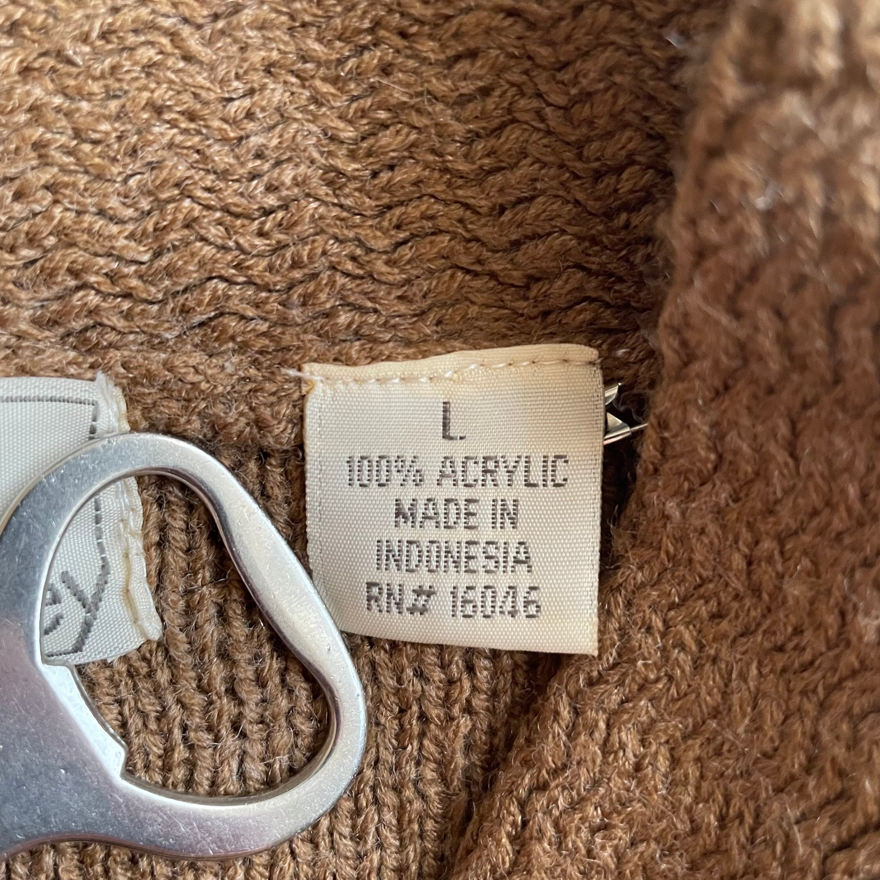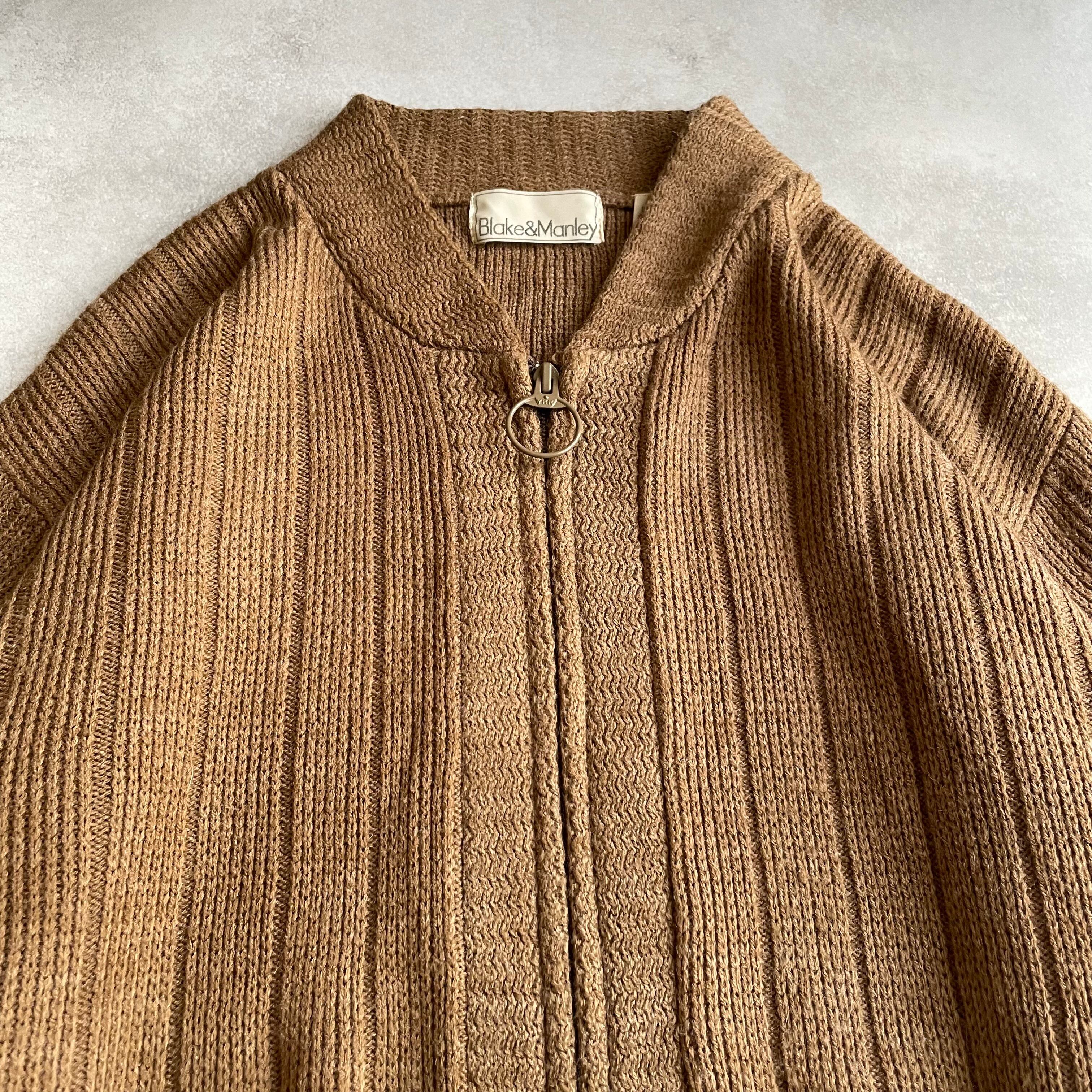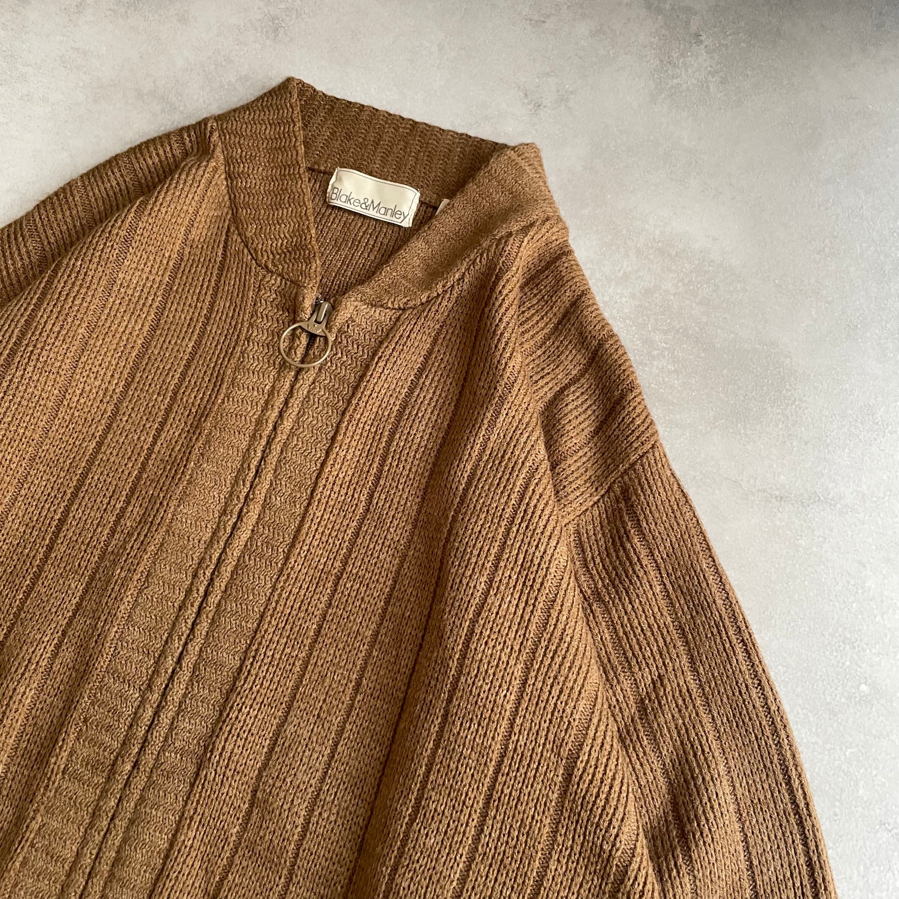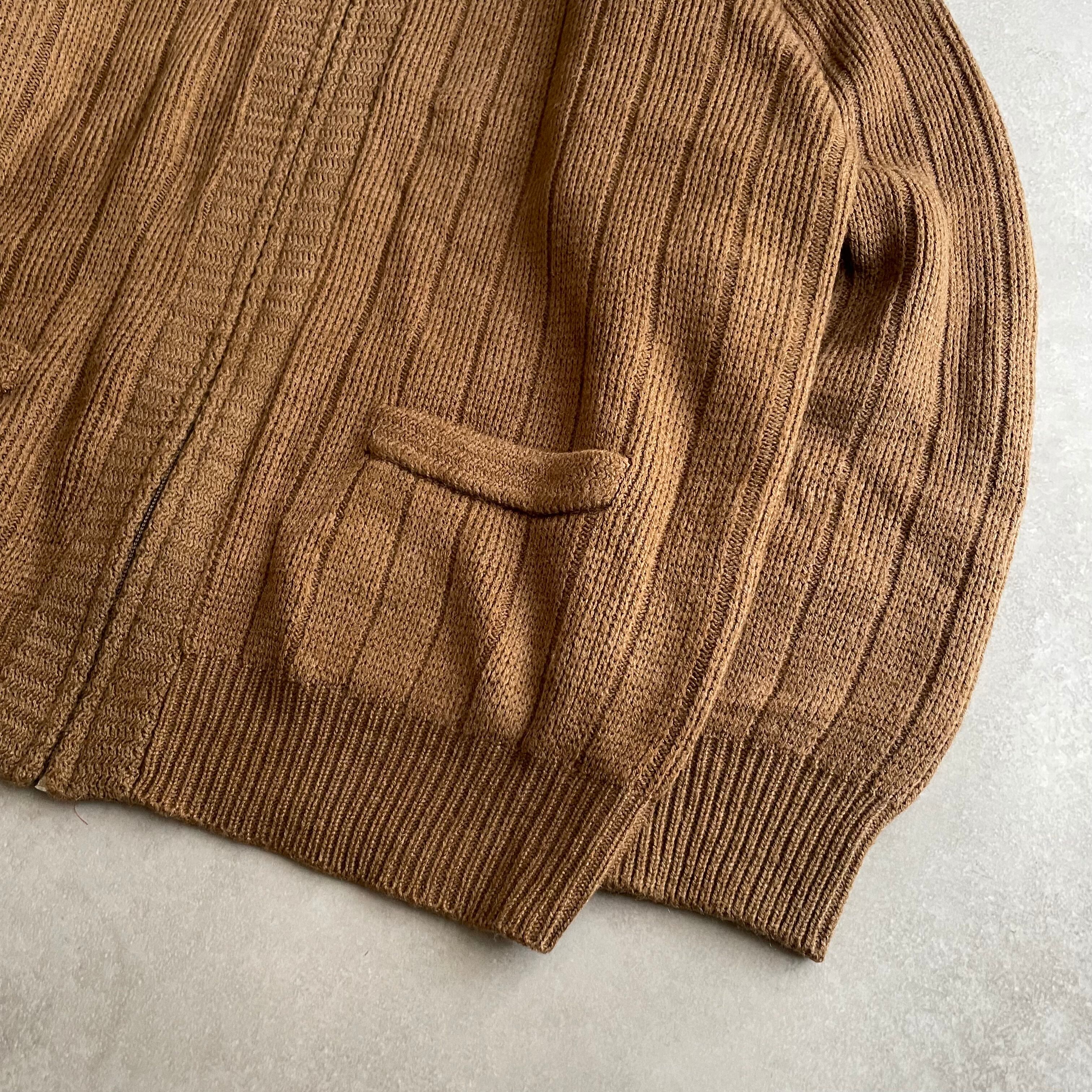 キャメルカラーのアクリルセーターで、プルオーバータイプではなくジップアップ仕様