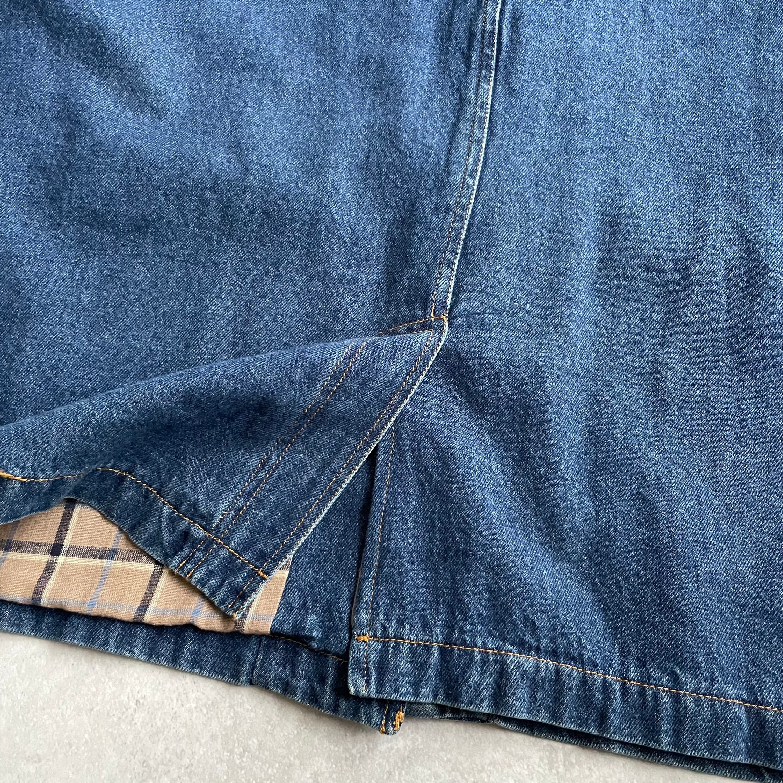 お好きな方も多い濃い色のデニムで上品に着れるミドル丈のジャケット