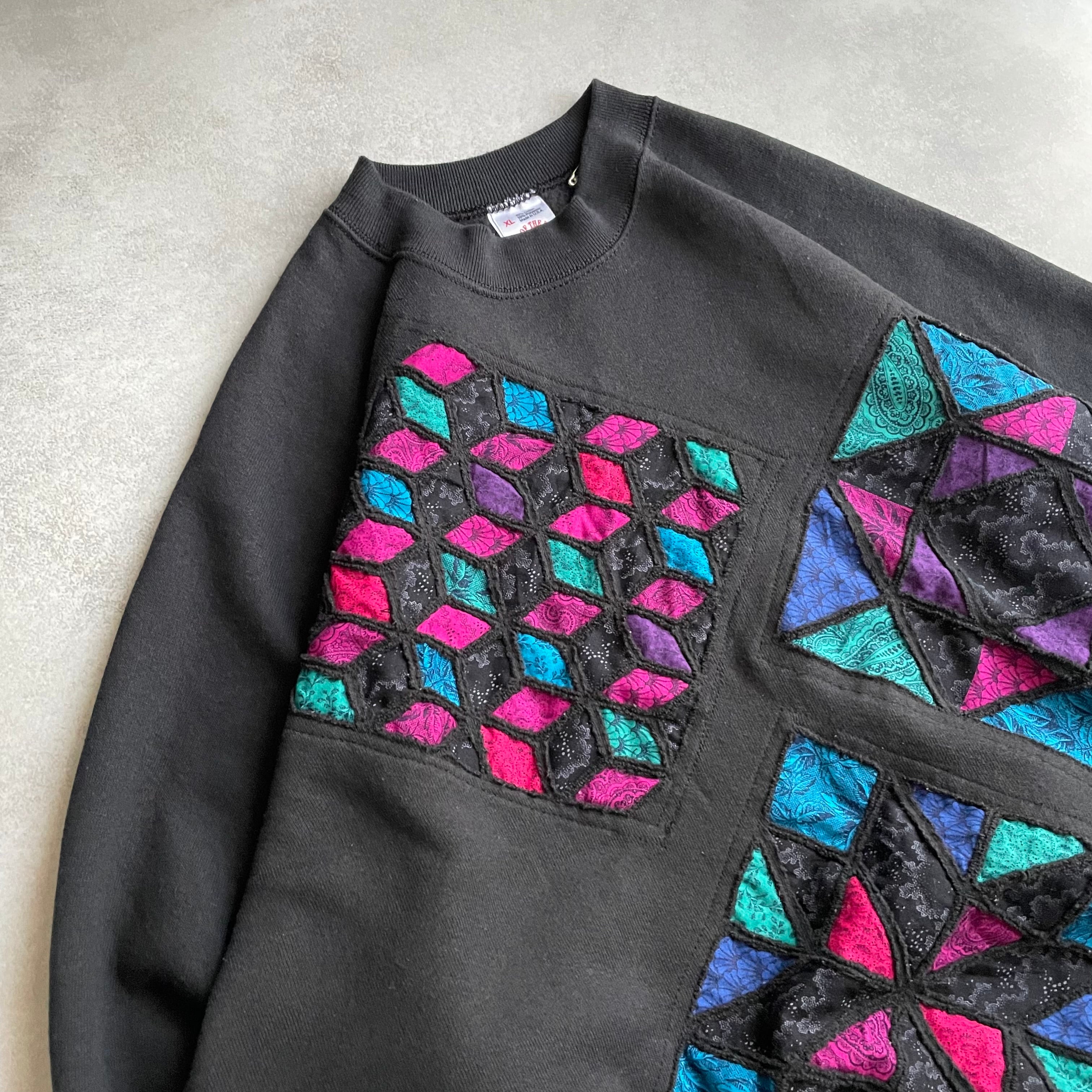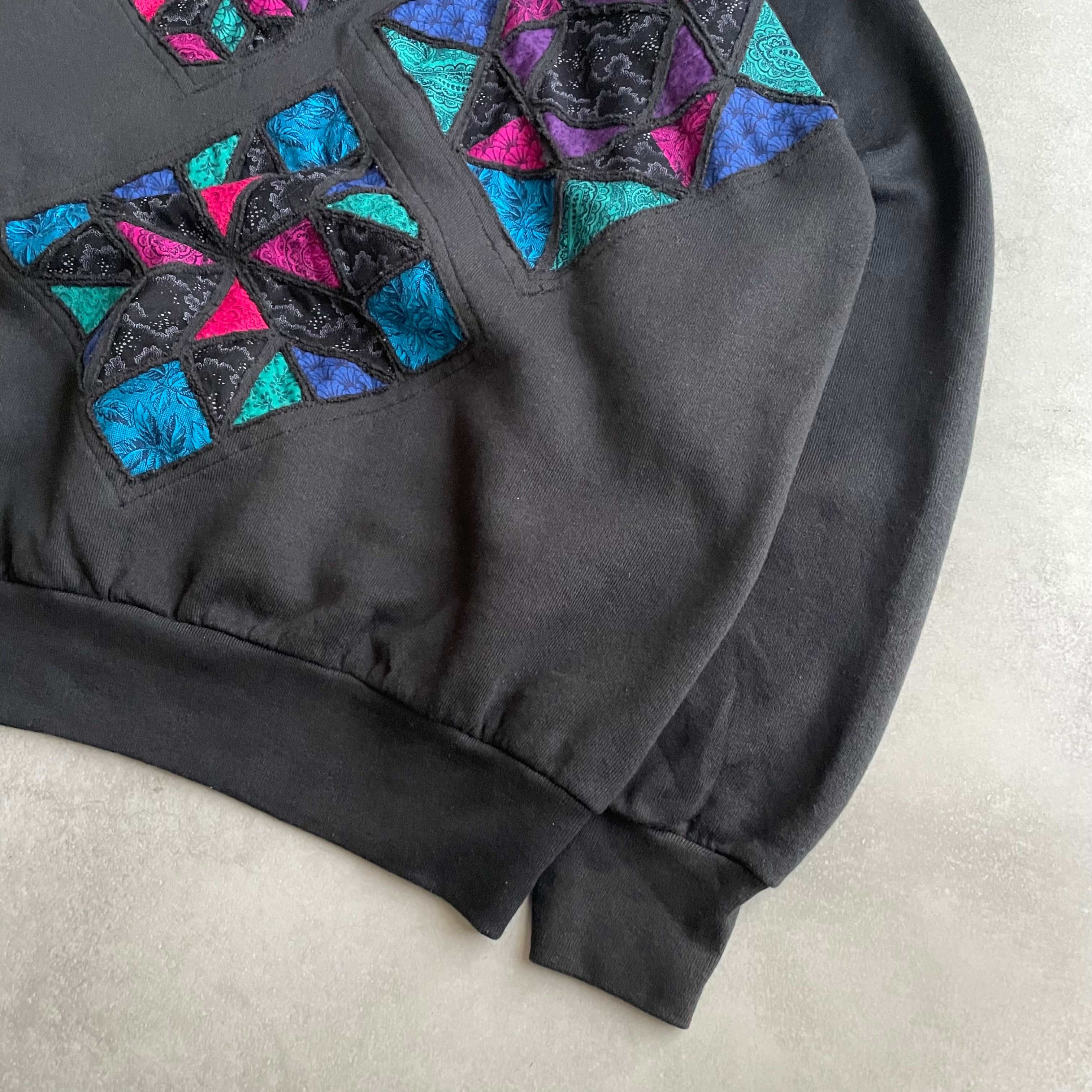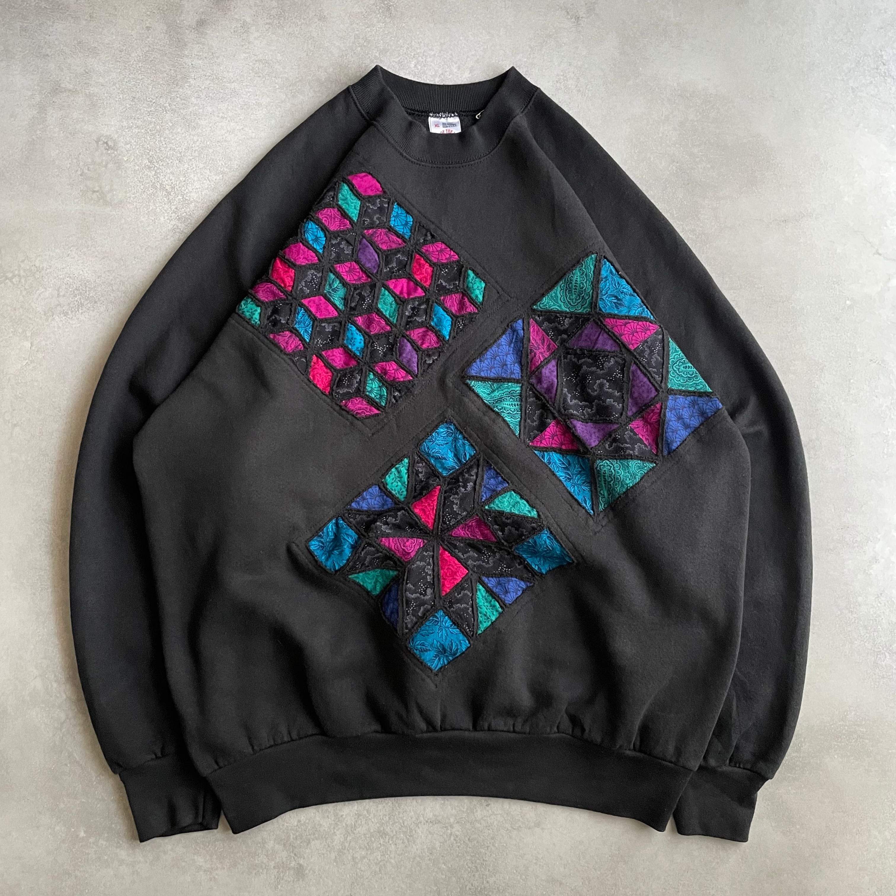 ブラックカラーのプレーンスウェットに前の所有者によってカスタムされたであろうデザインスウェット