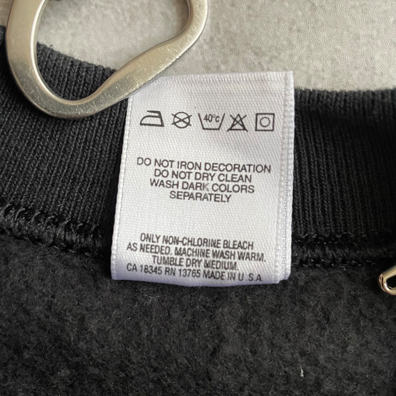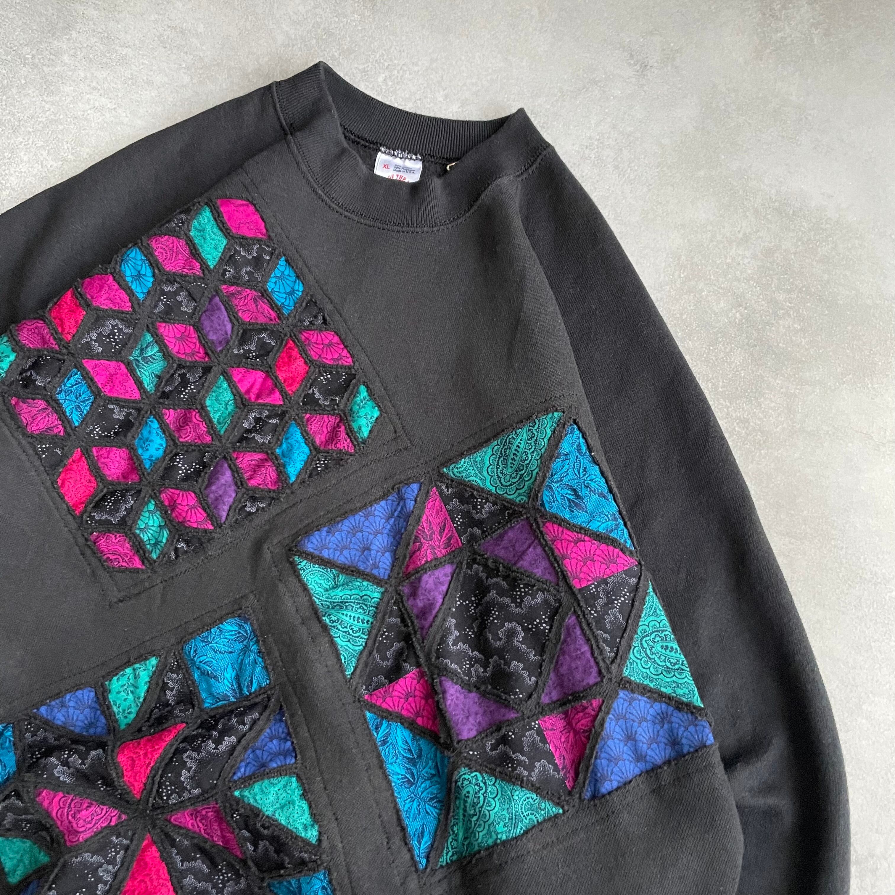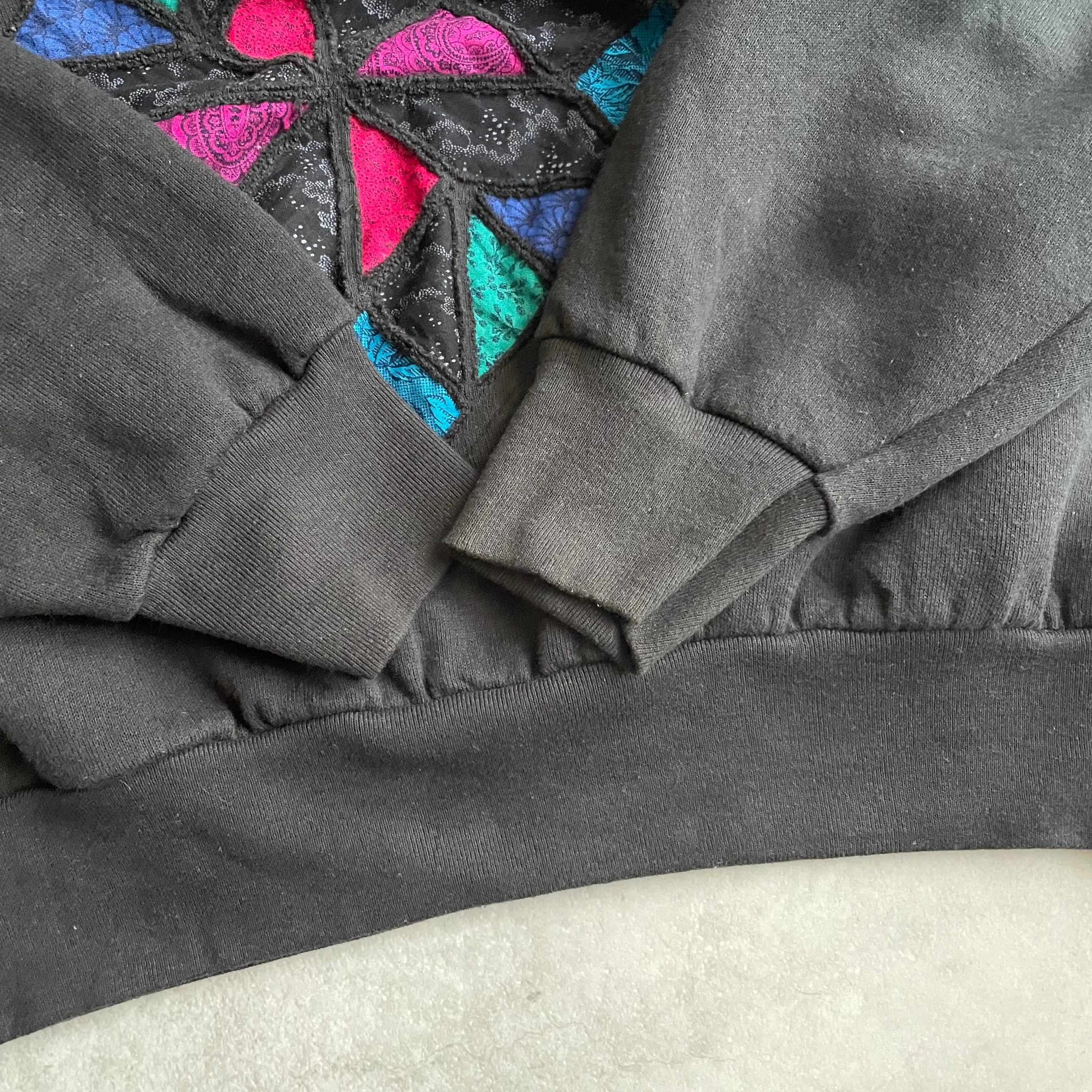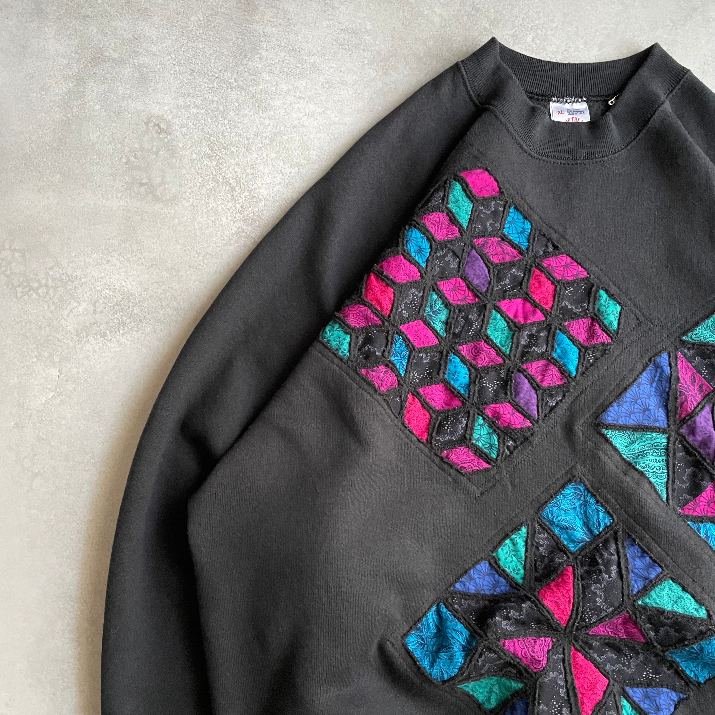 ブラックカラーのプレーンスウェットに前の所有者によってカスタムされたであろうデザインスウェット