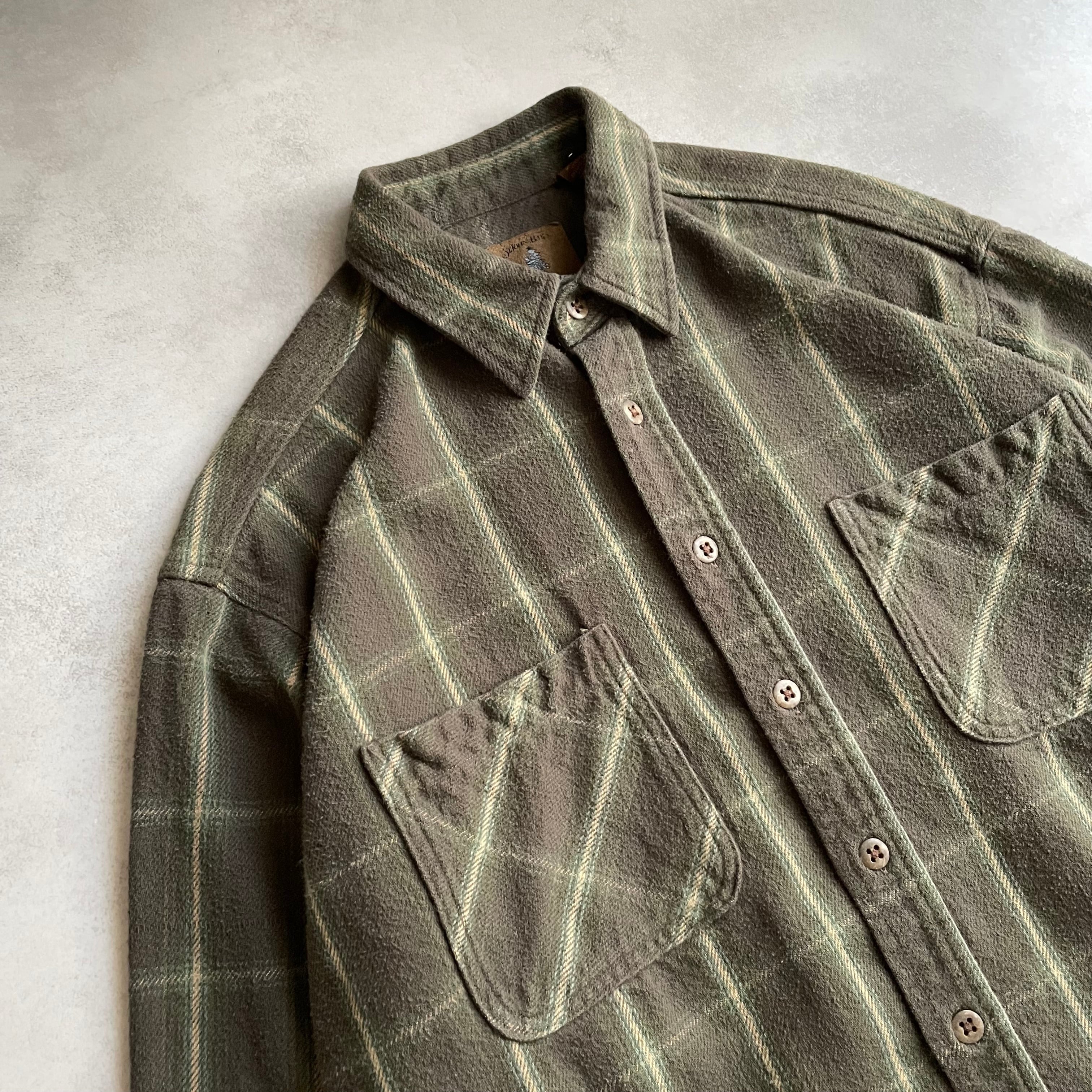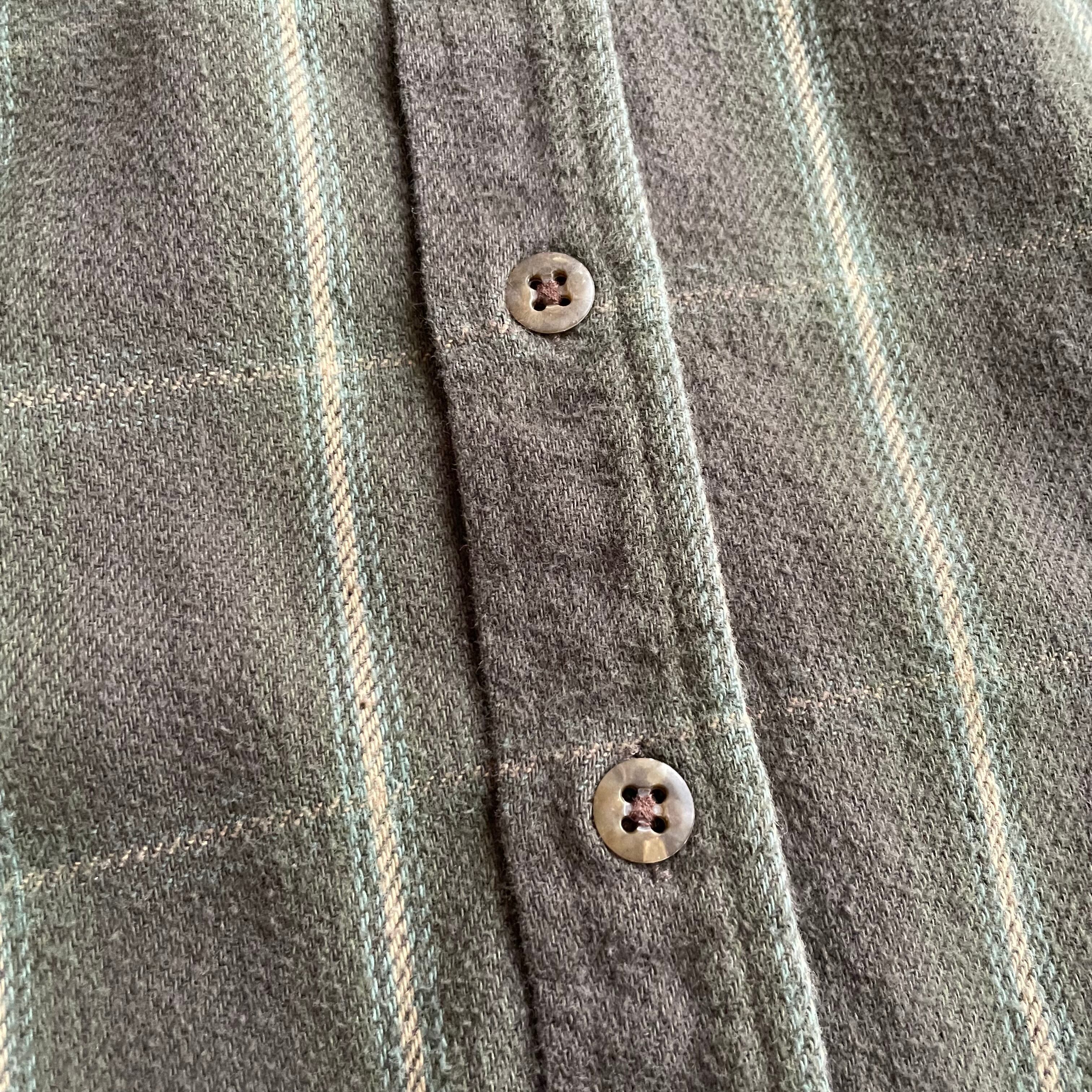 やや厚みのあるコットン素材でネルシャツならではの起毛感、着古されたことによるやれ感が個人的にはツボ