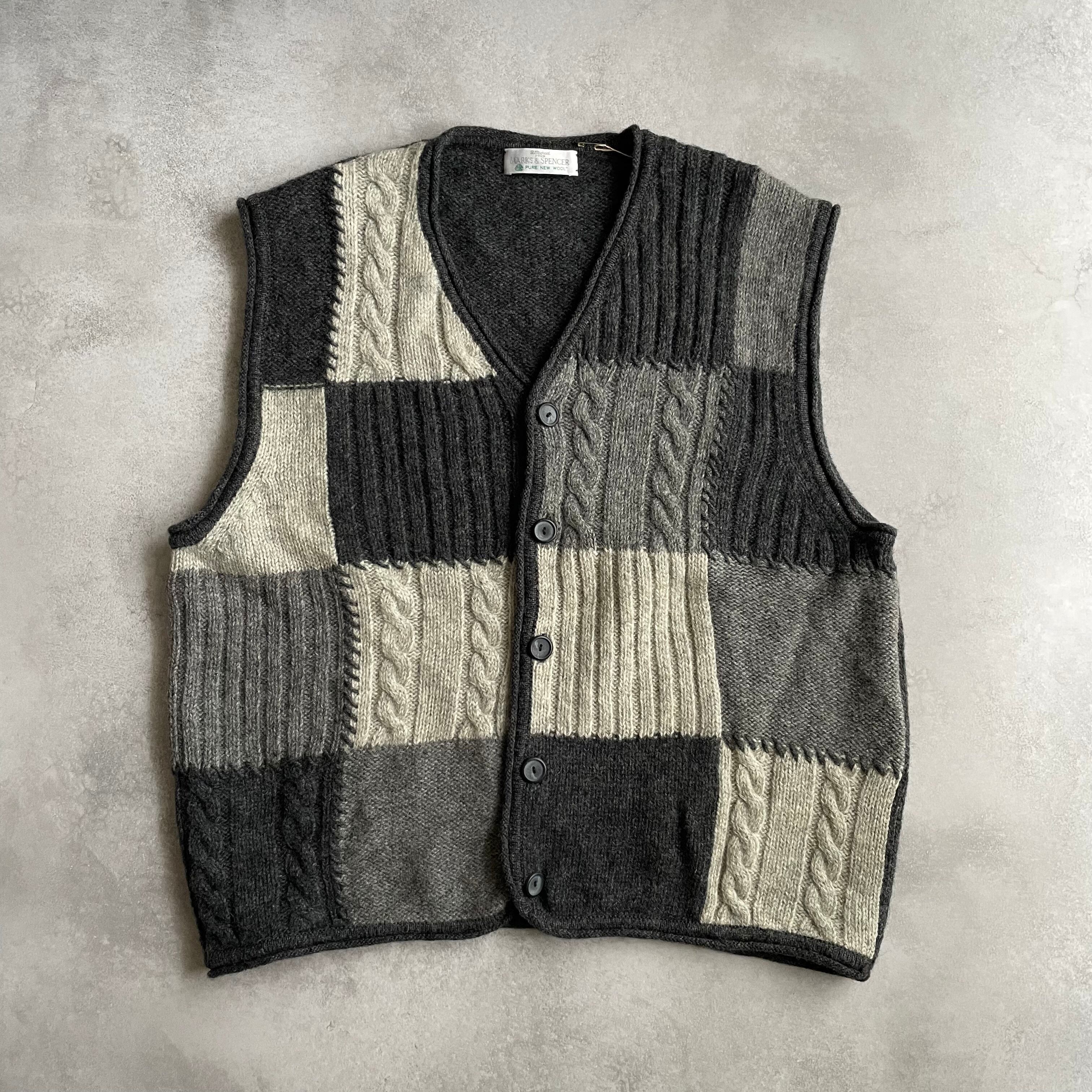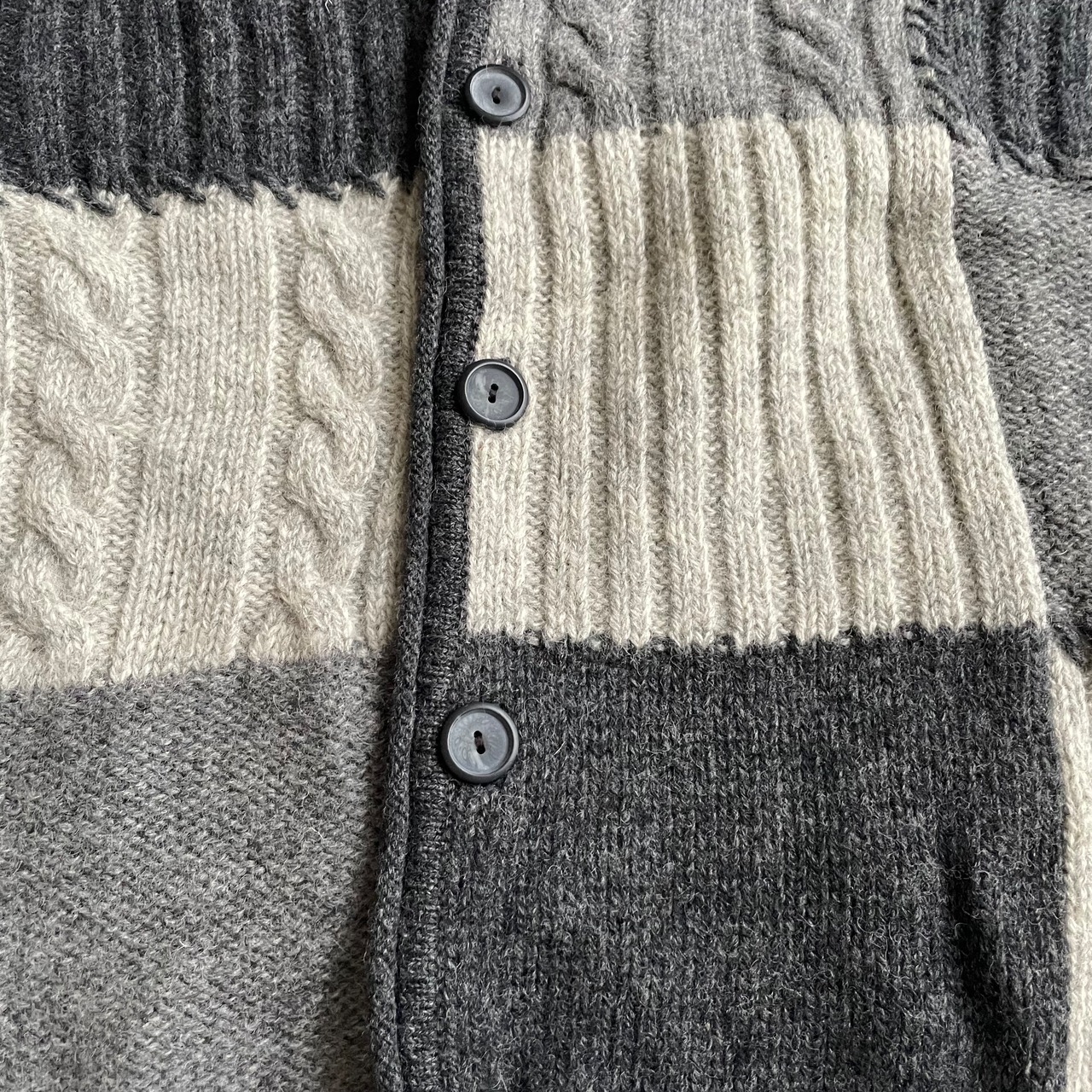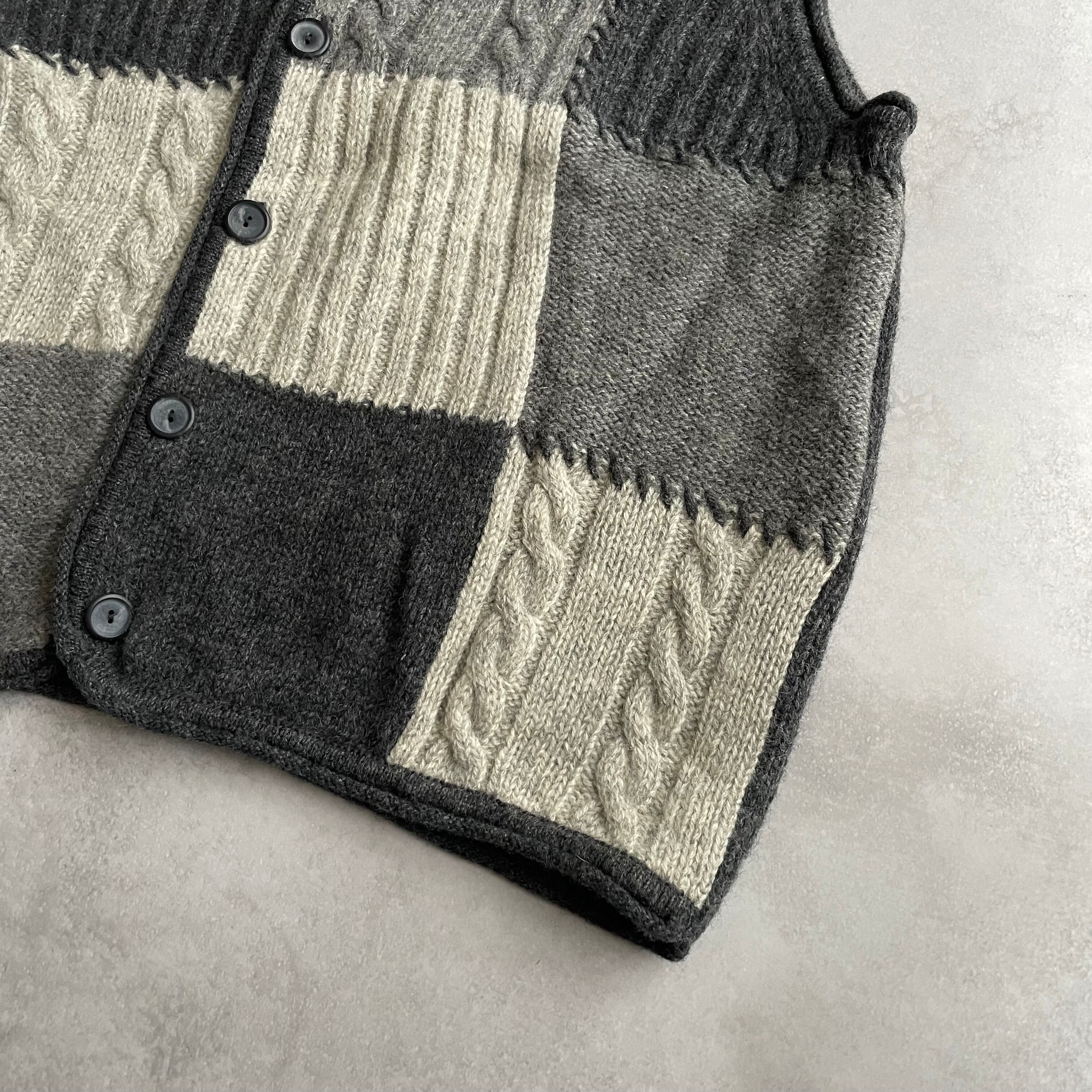 こちらのアイテムは、グレー×オフホワイトで構成されたニットベスト