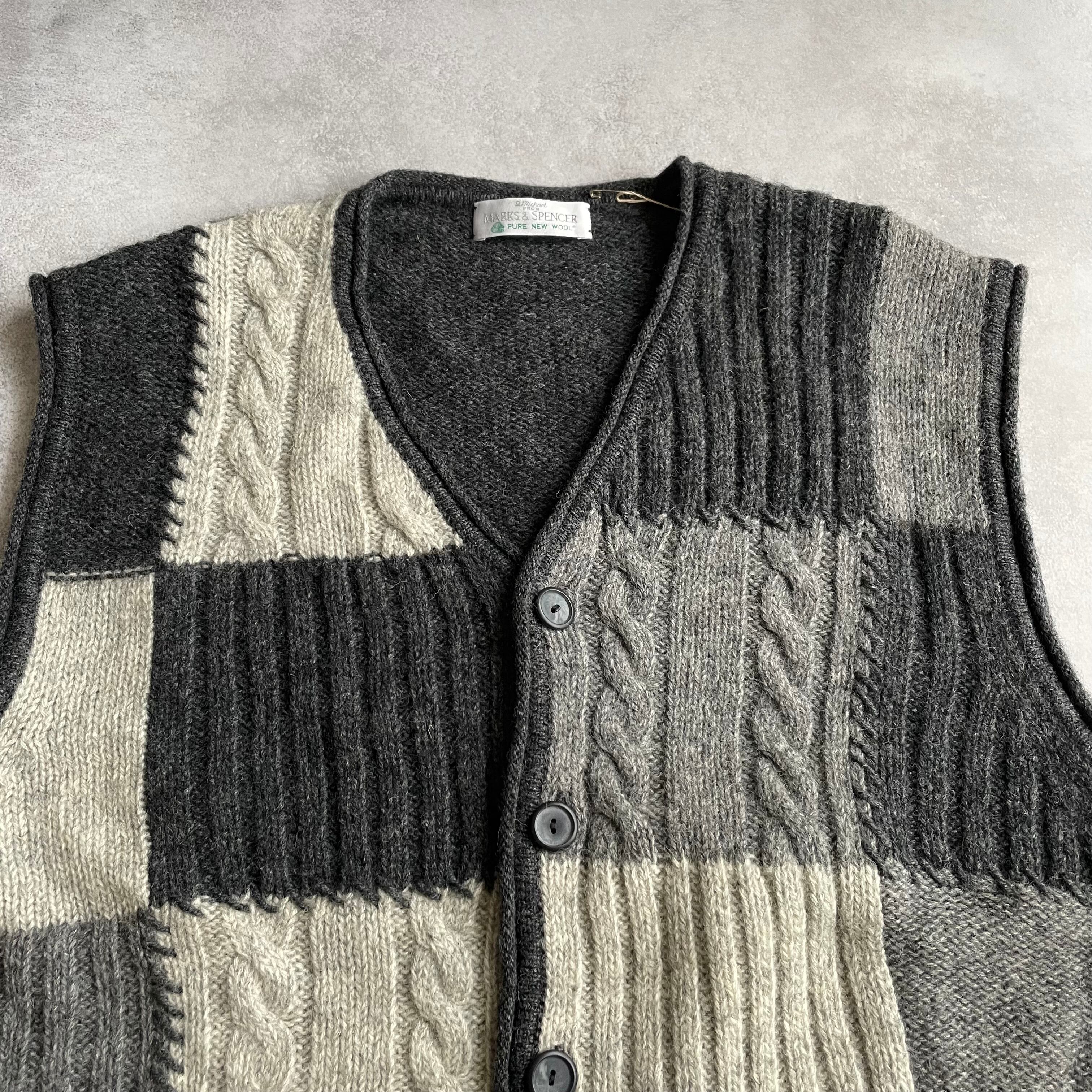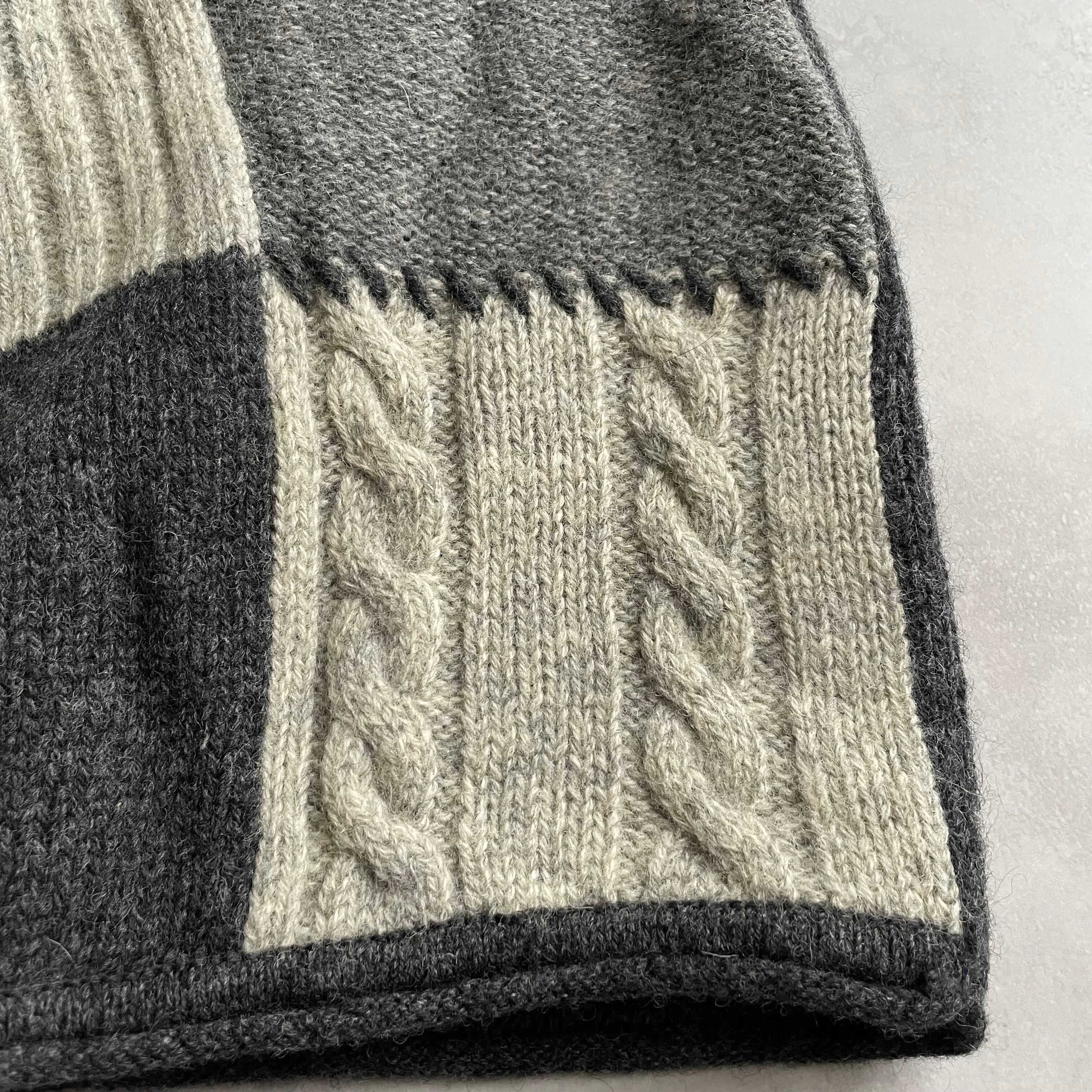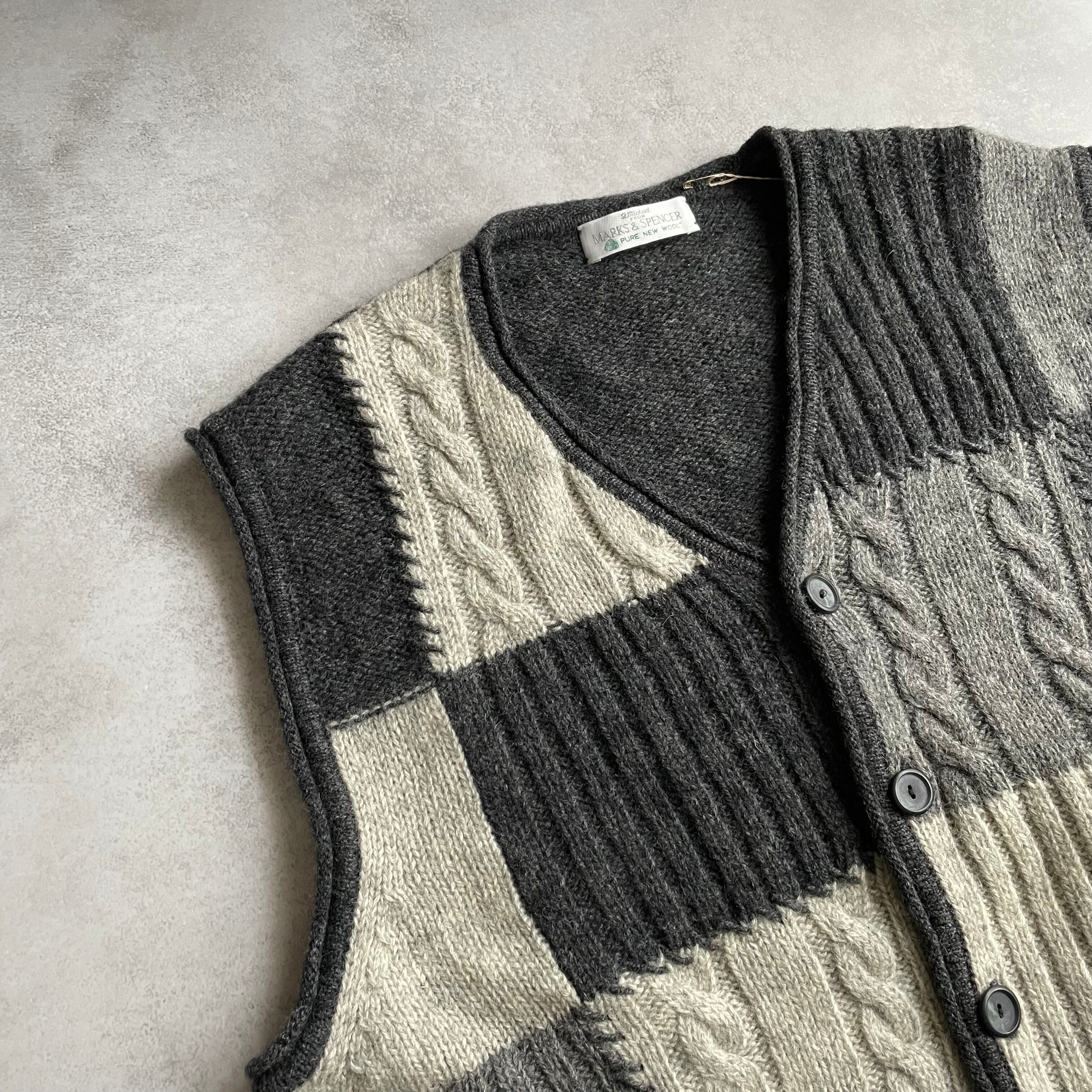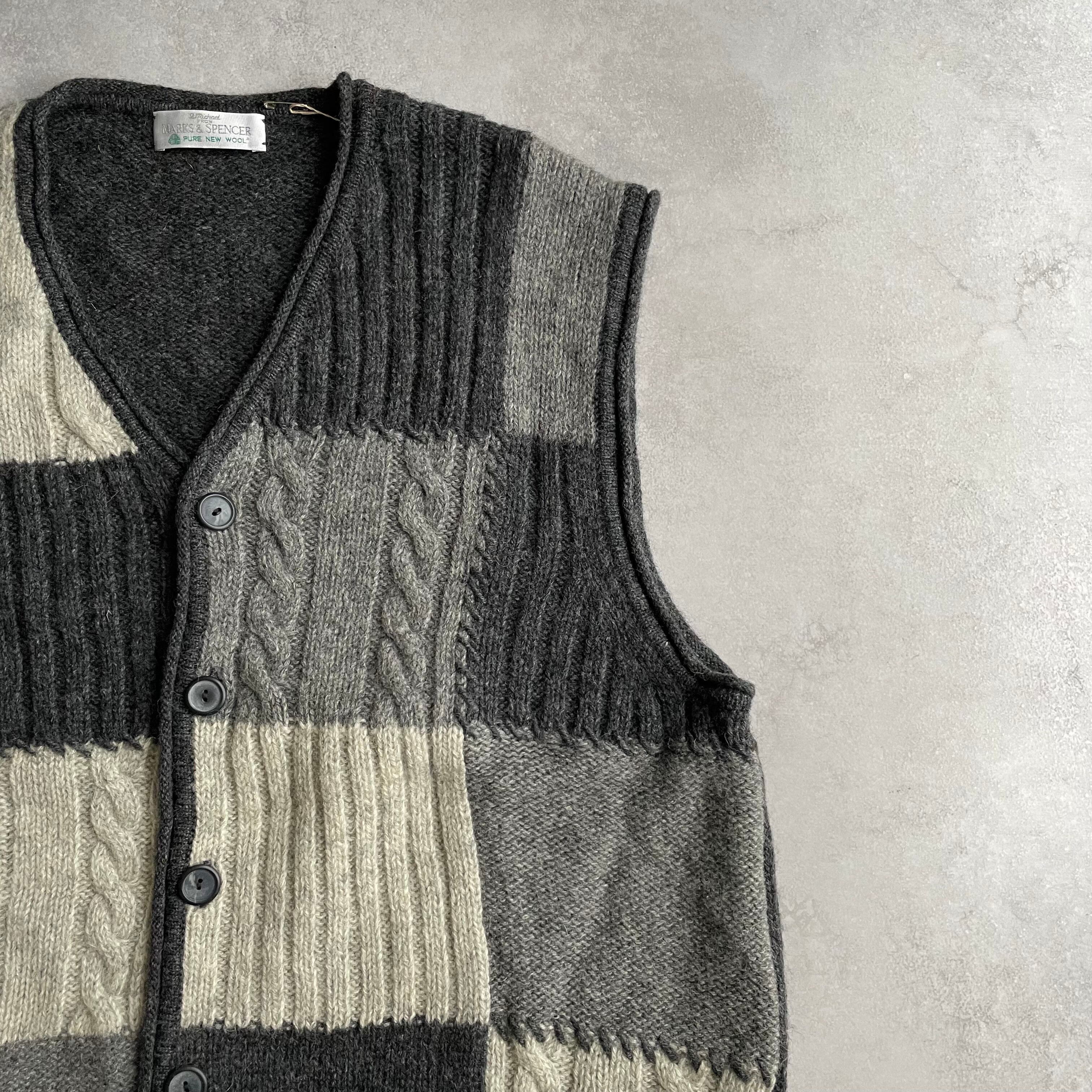 こちらのアイテムは、グレー×オフホワイトで構成されたニットベスト