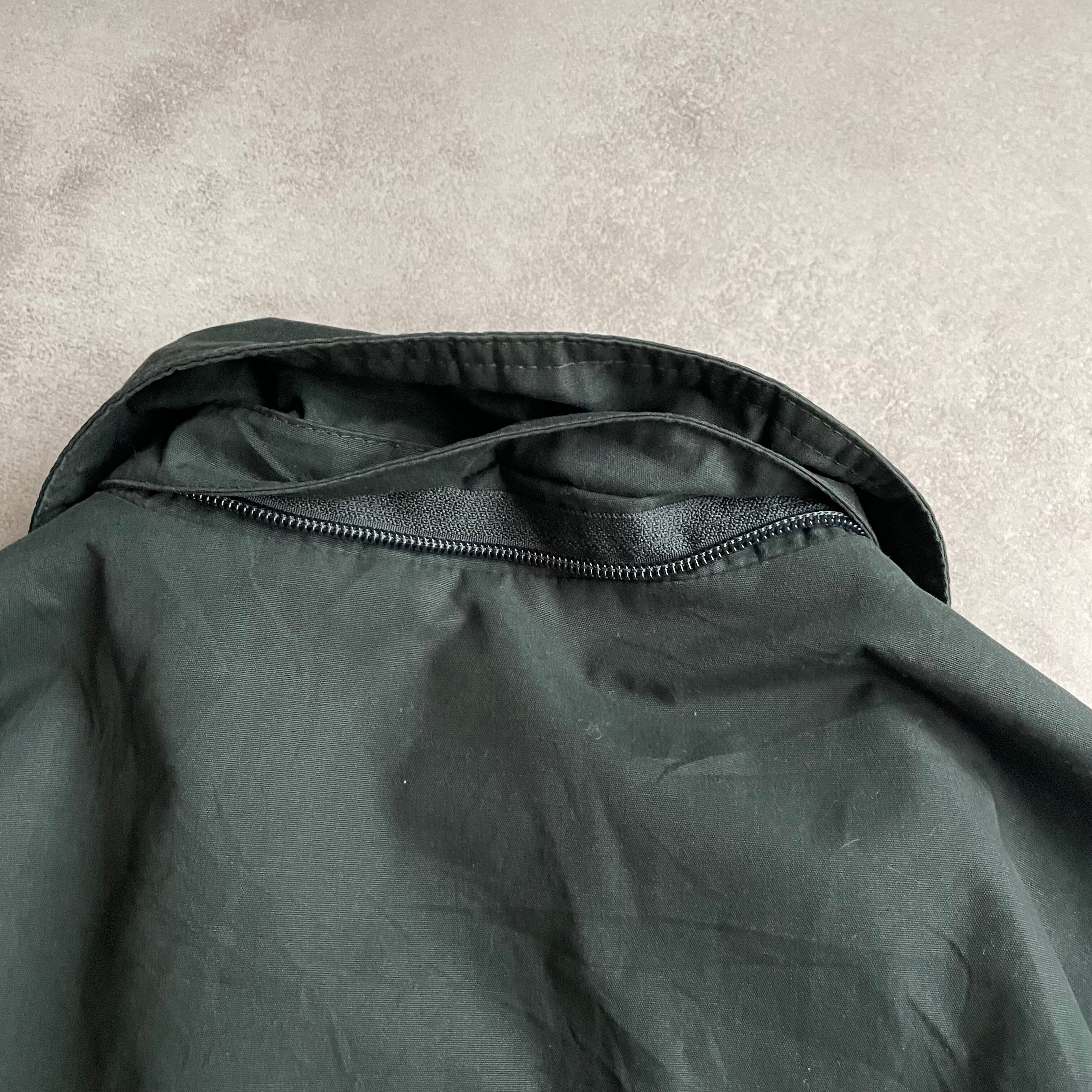 防寒性に富んだ袖のベルクロ仕様や襟を立てて着用出来るディテールまで抜かりない作り