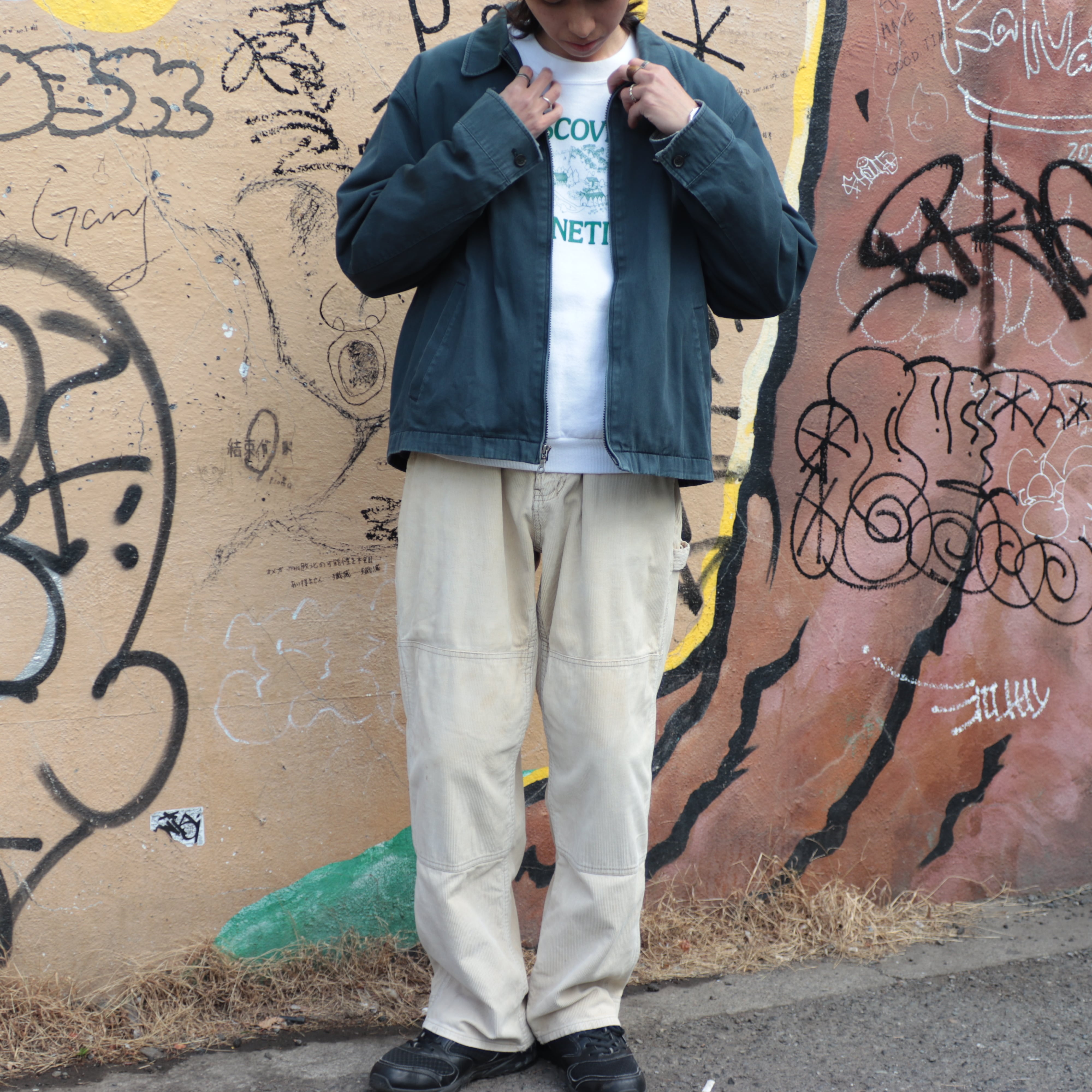 膝の汚れや裾のダメージなども相まって雰囲気抜群です