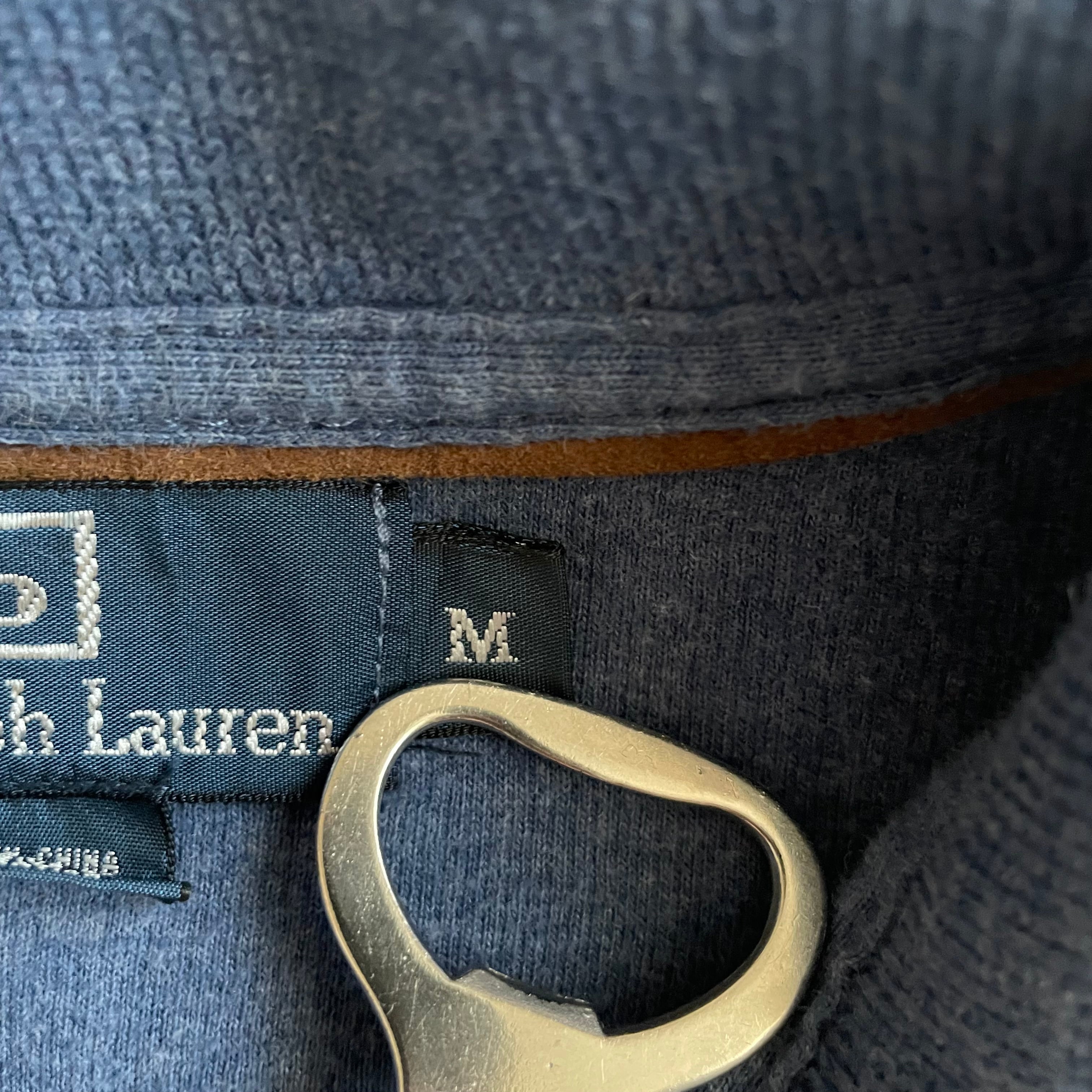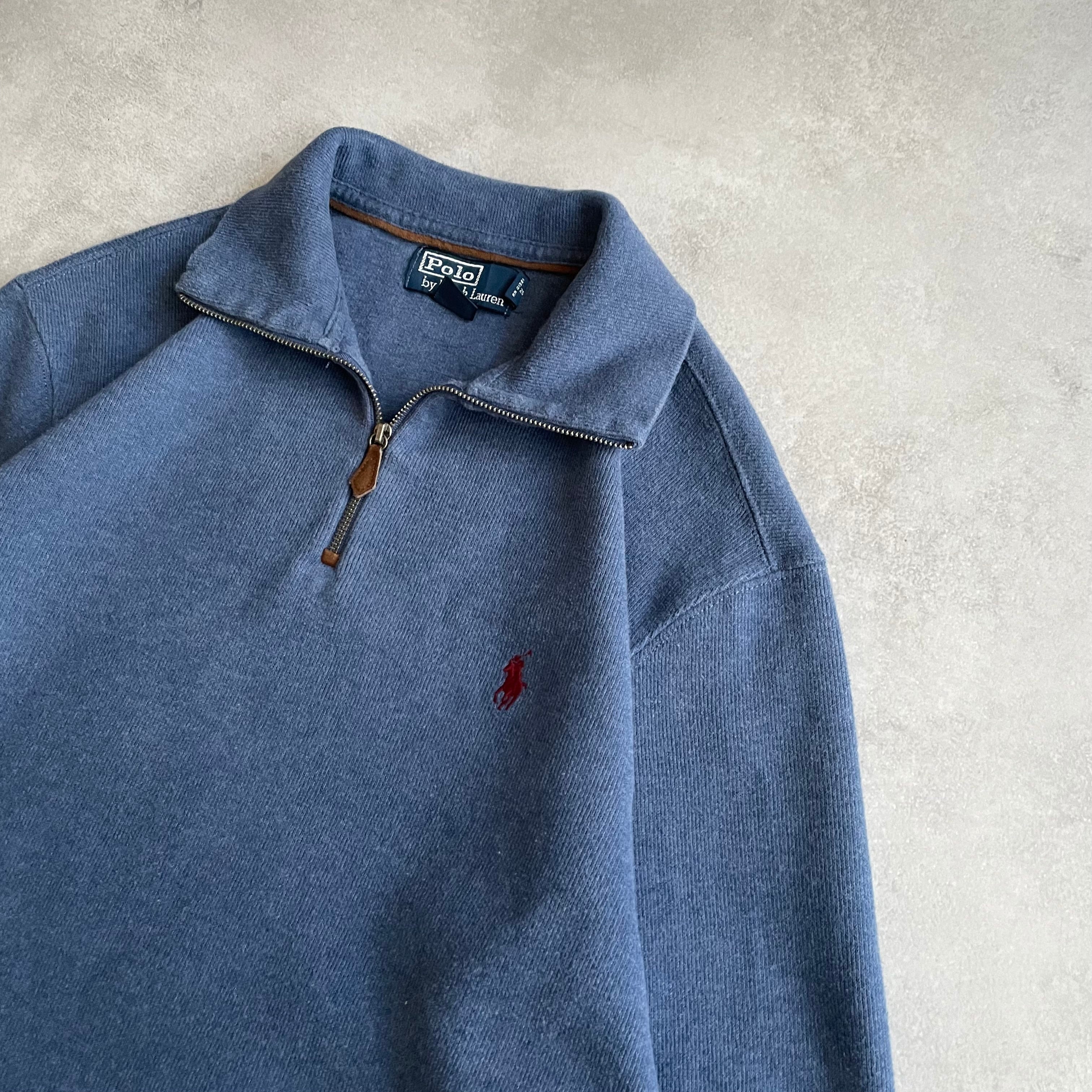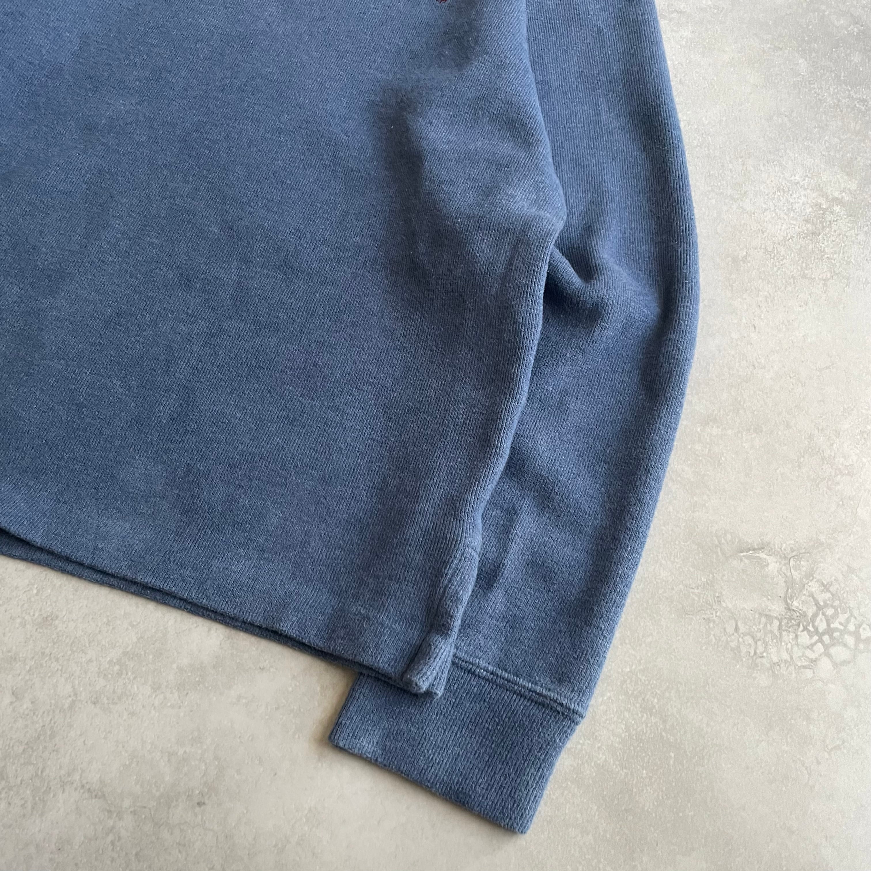 ブルーボディにレッドポニーと対照的な色合わせで爽やかな印象を受けるハーフジップセーター