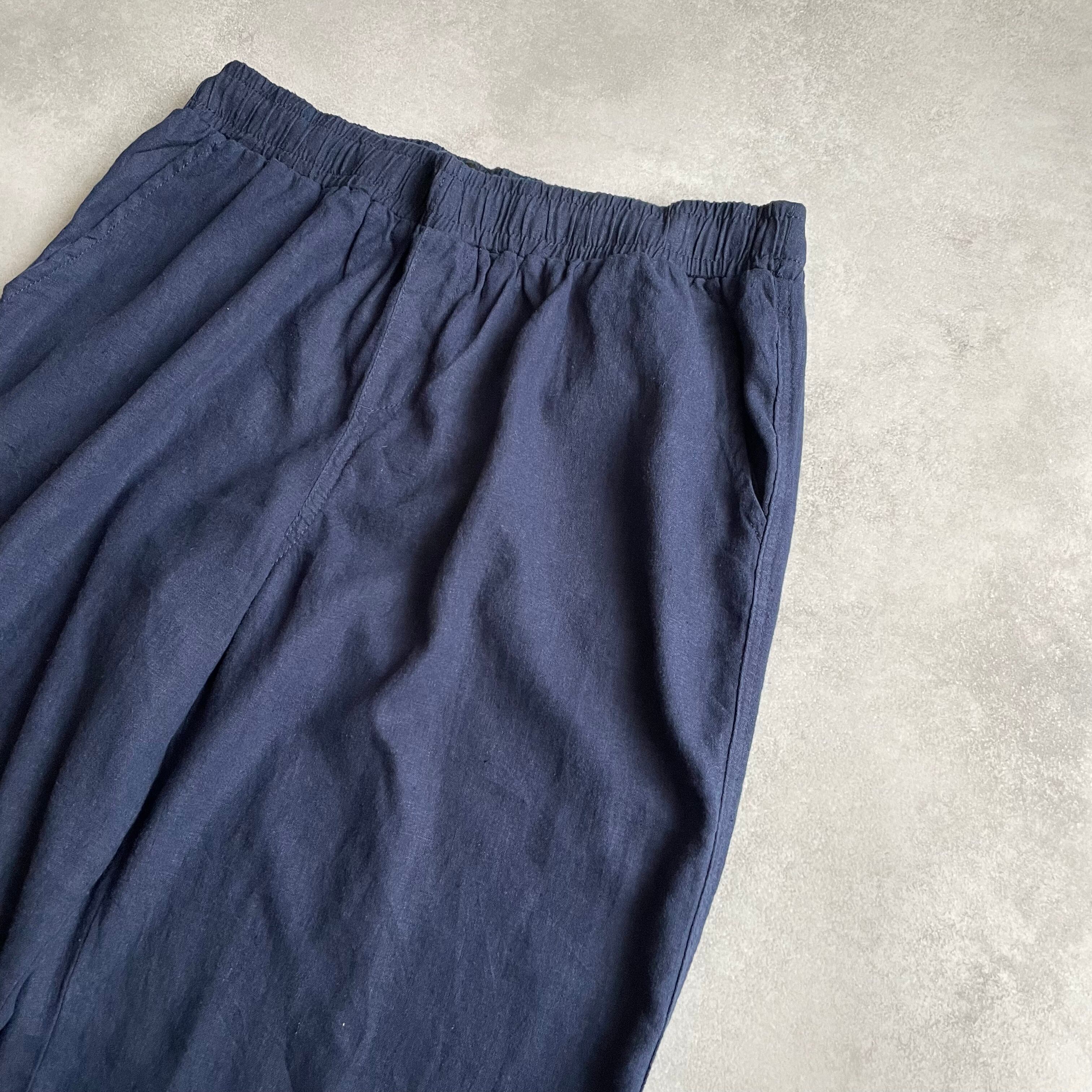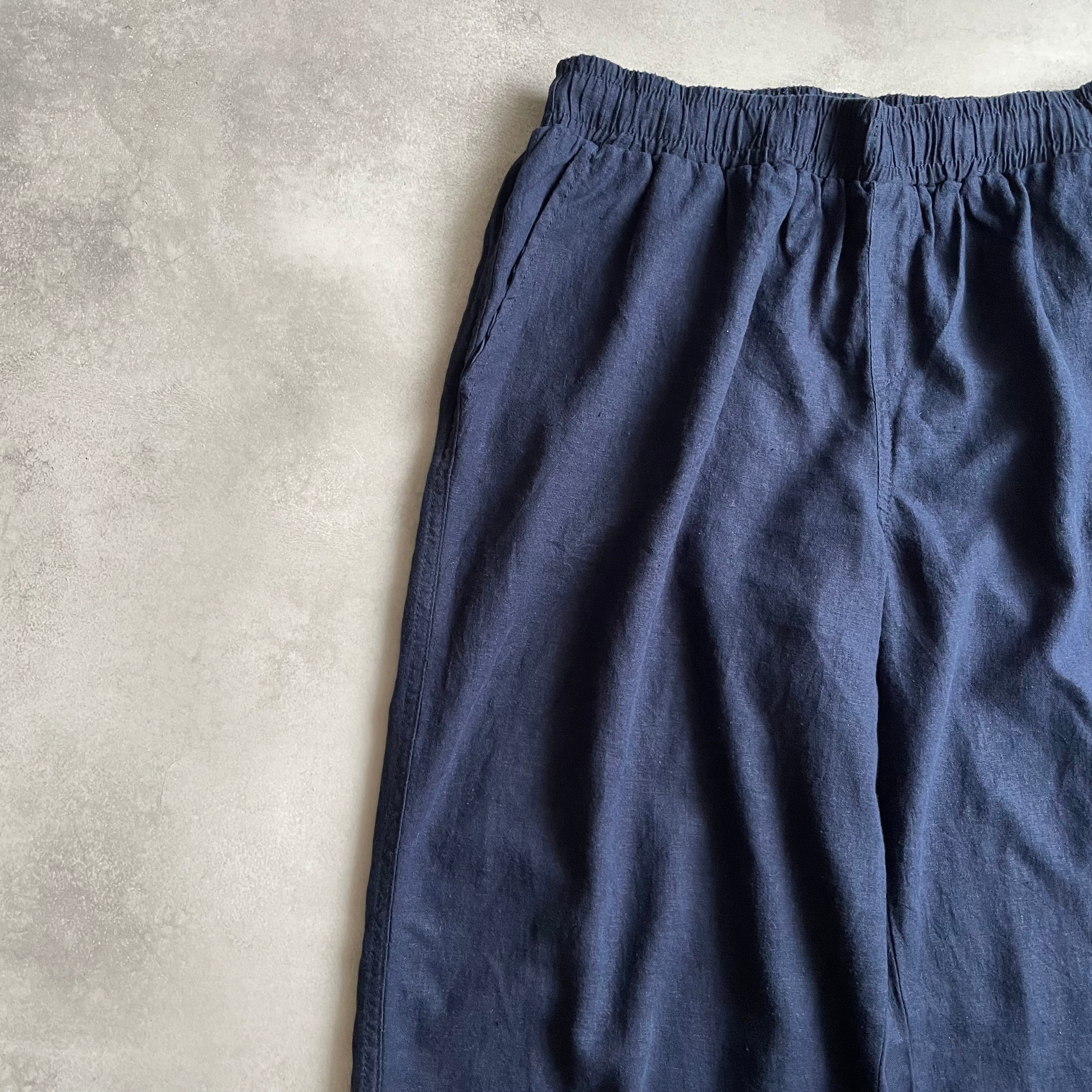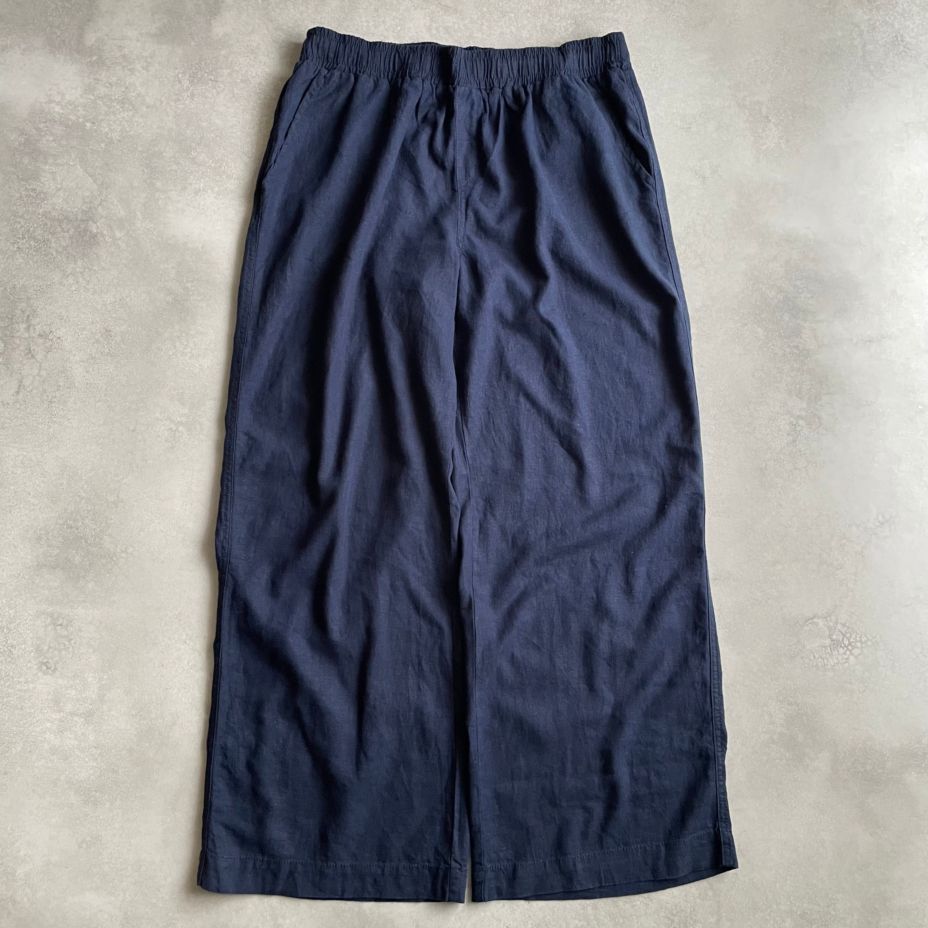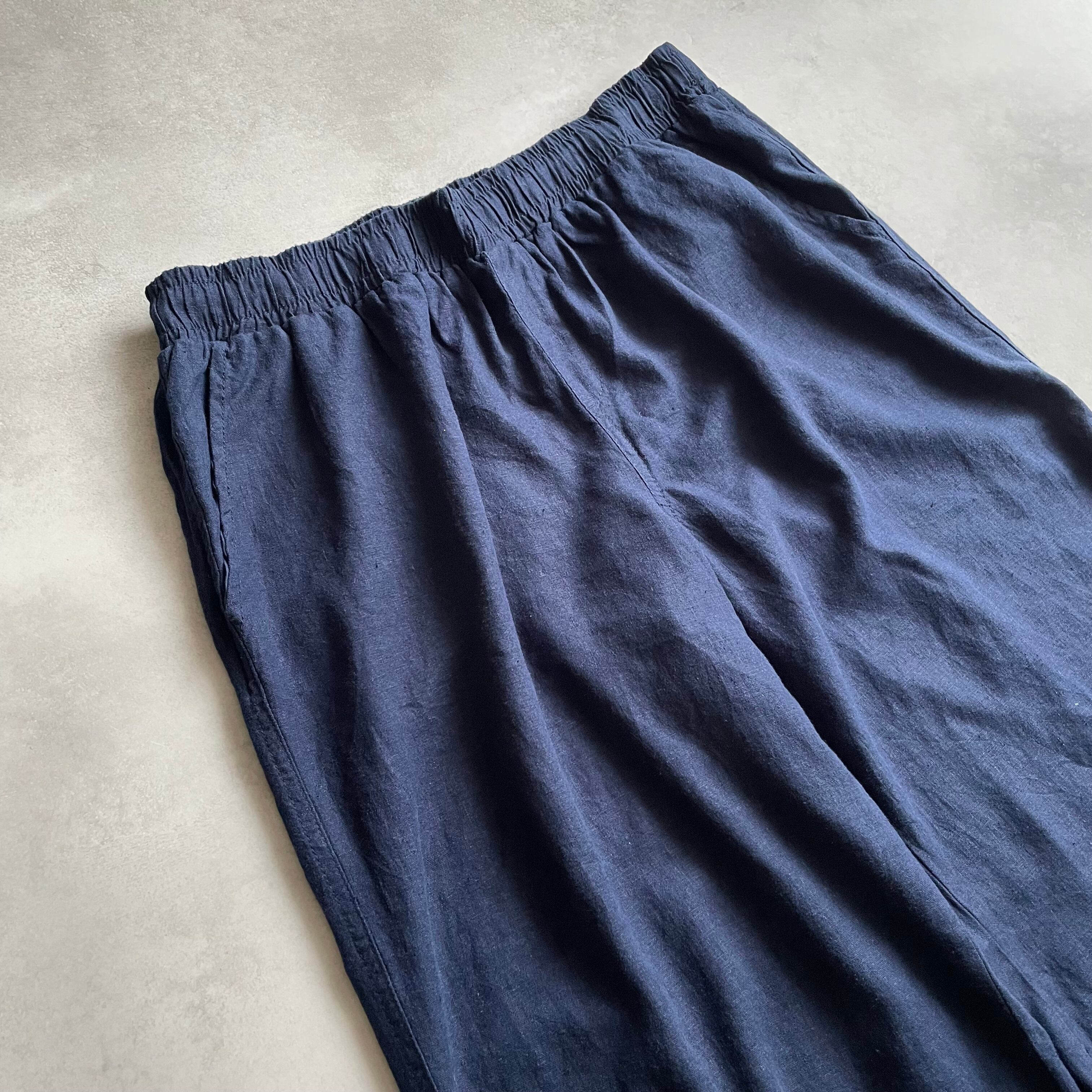 ウエストゴムのボトムスでは珍しいリネンとレーヨンの混紡素材で、とろみのある生地感が最高