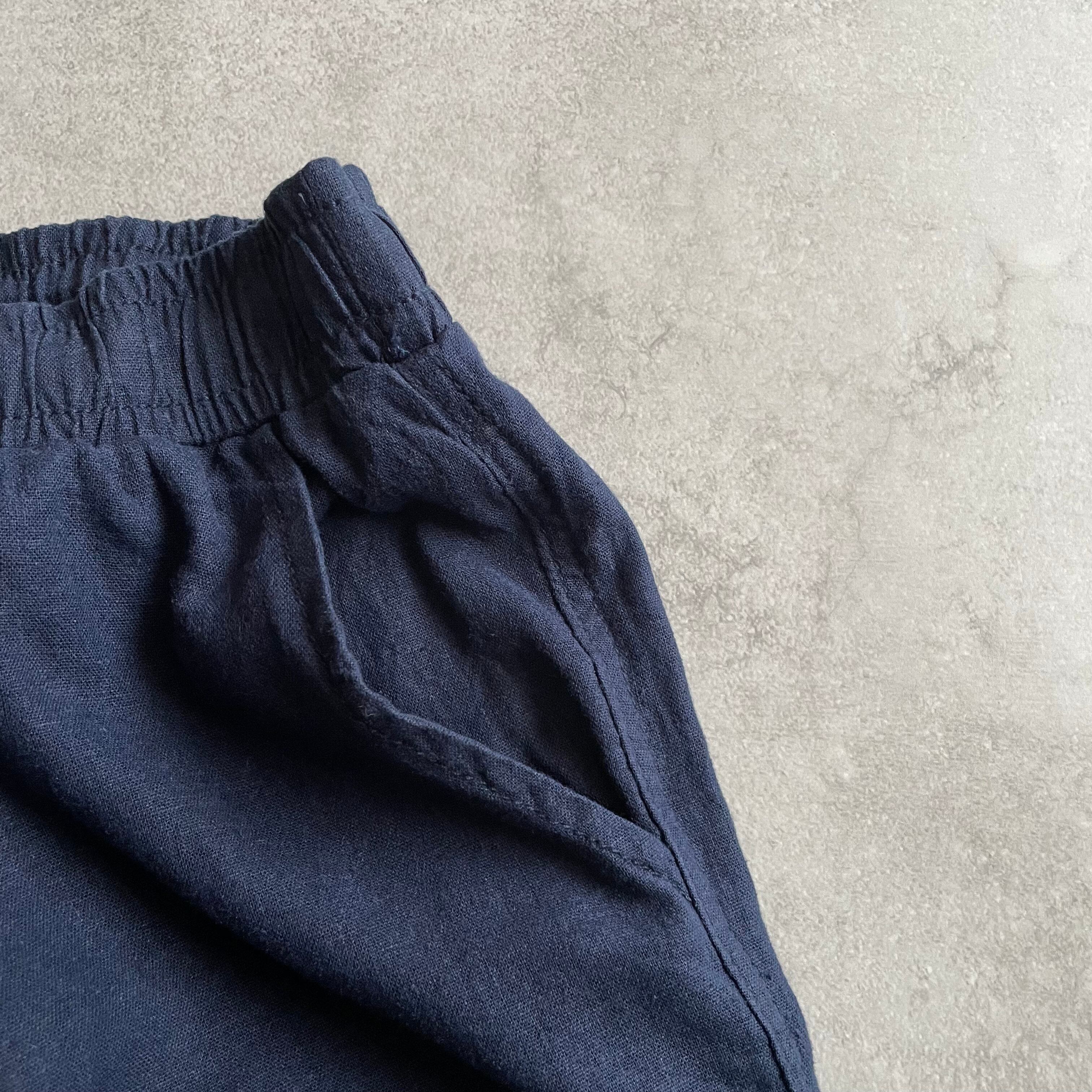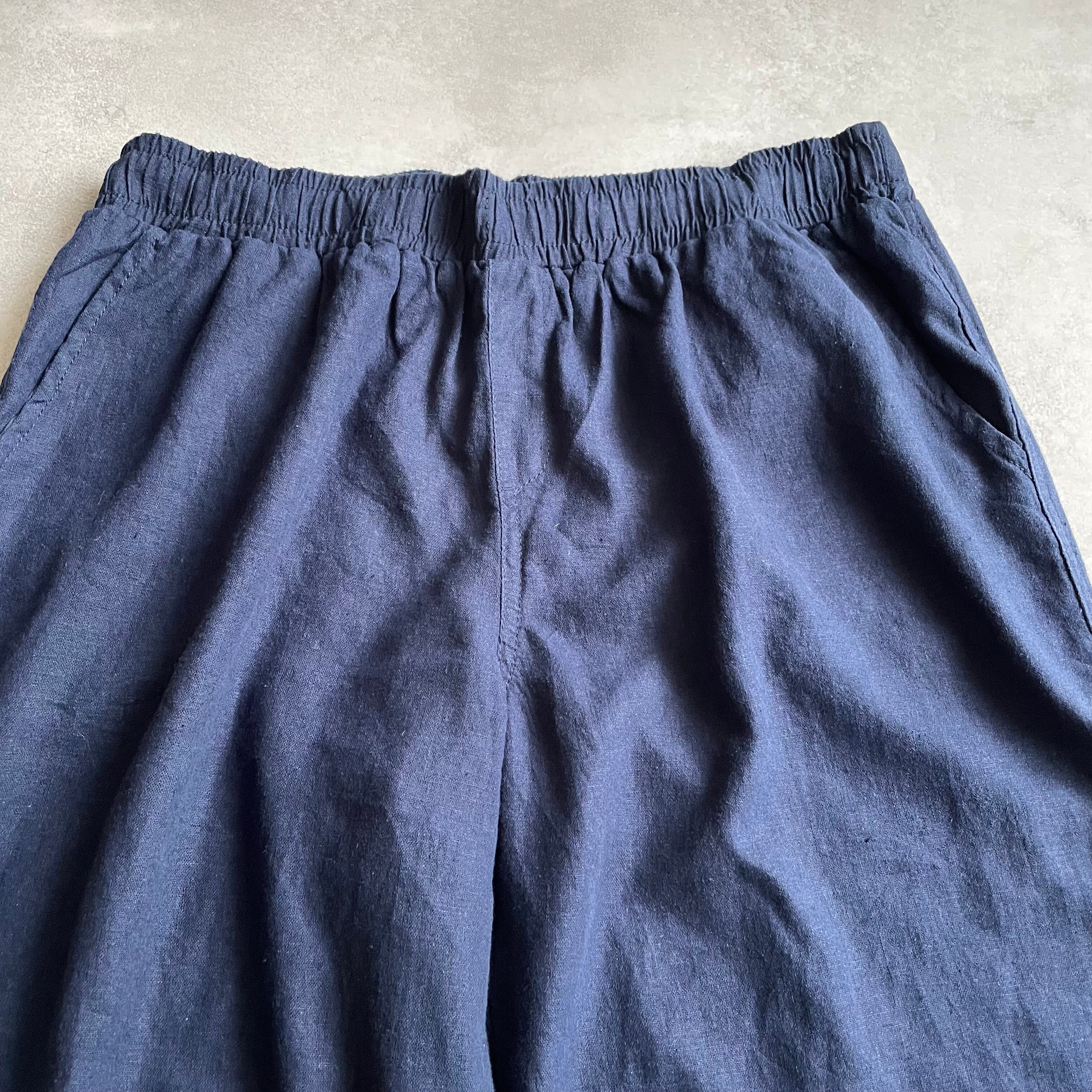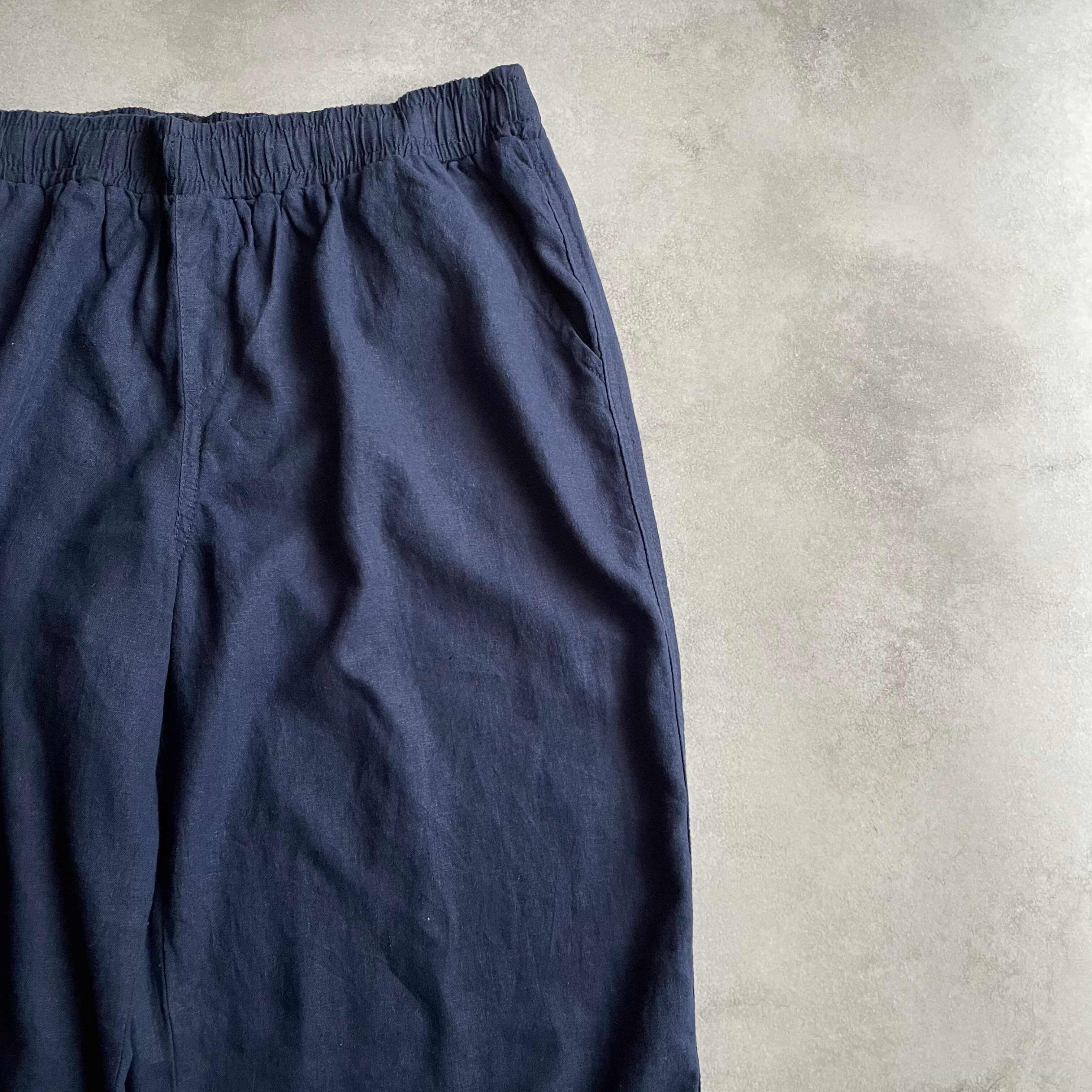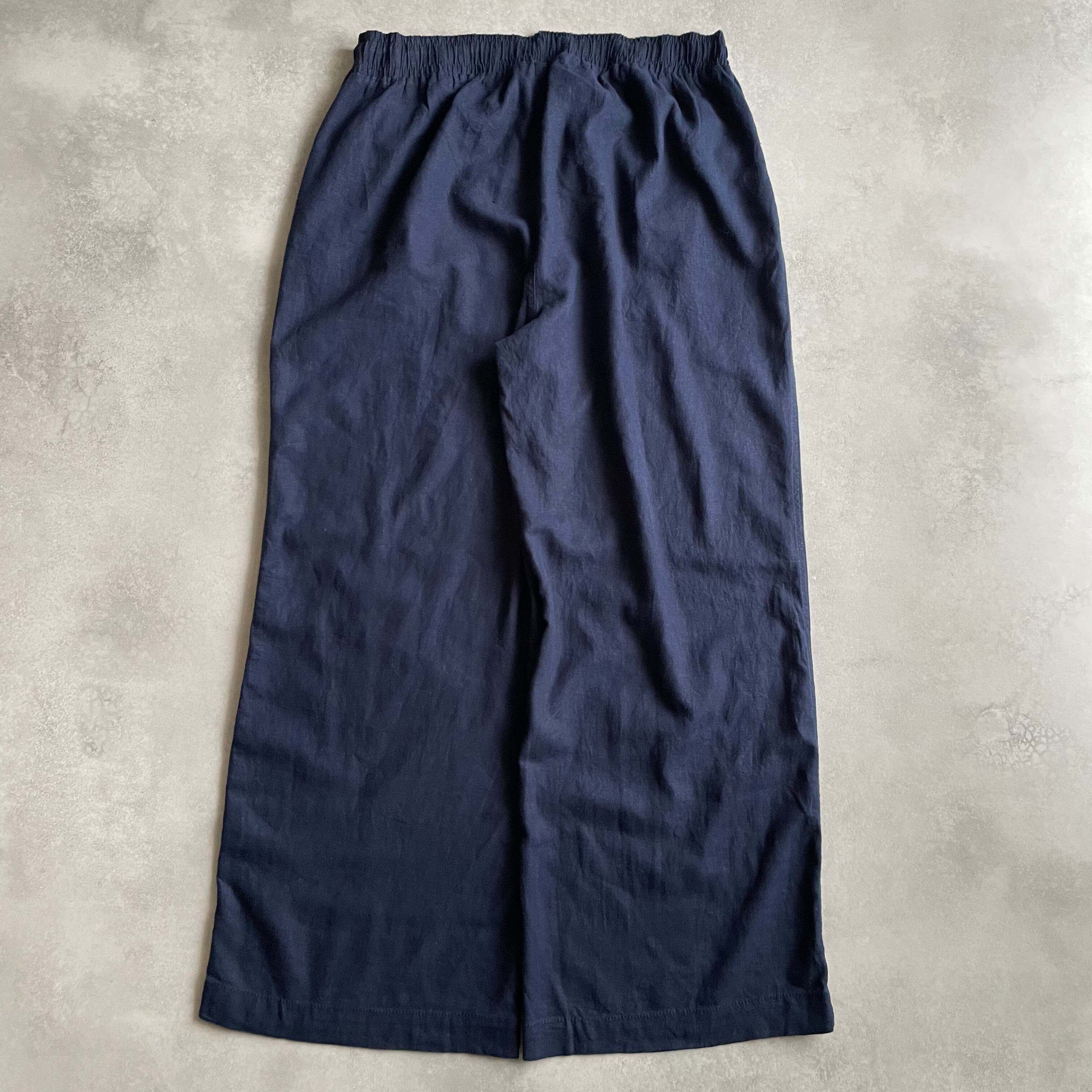 ウエストゴムのボトムスでは珍しいリネンとレーヨンの混紡素材で、とろみのある生地感が最高