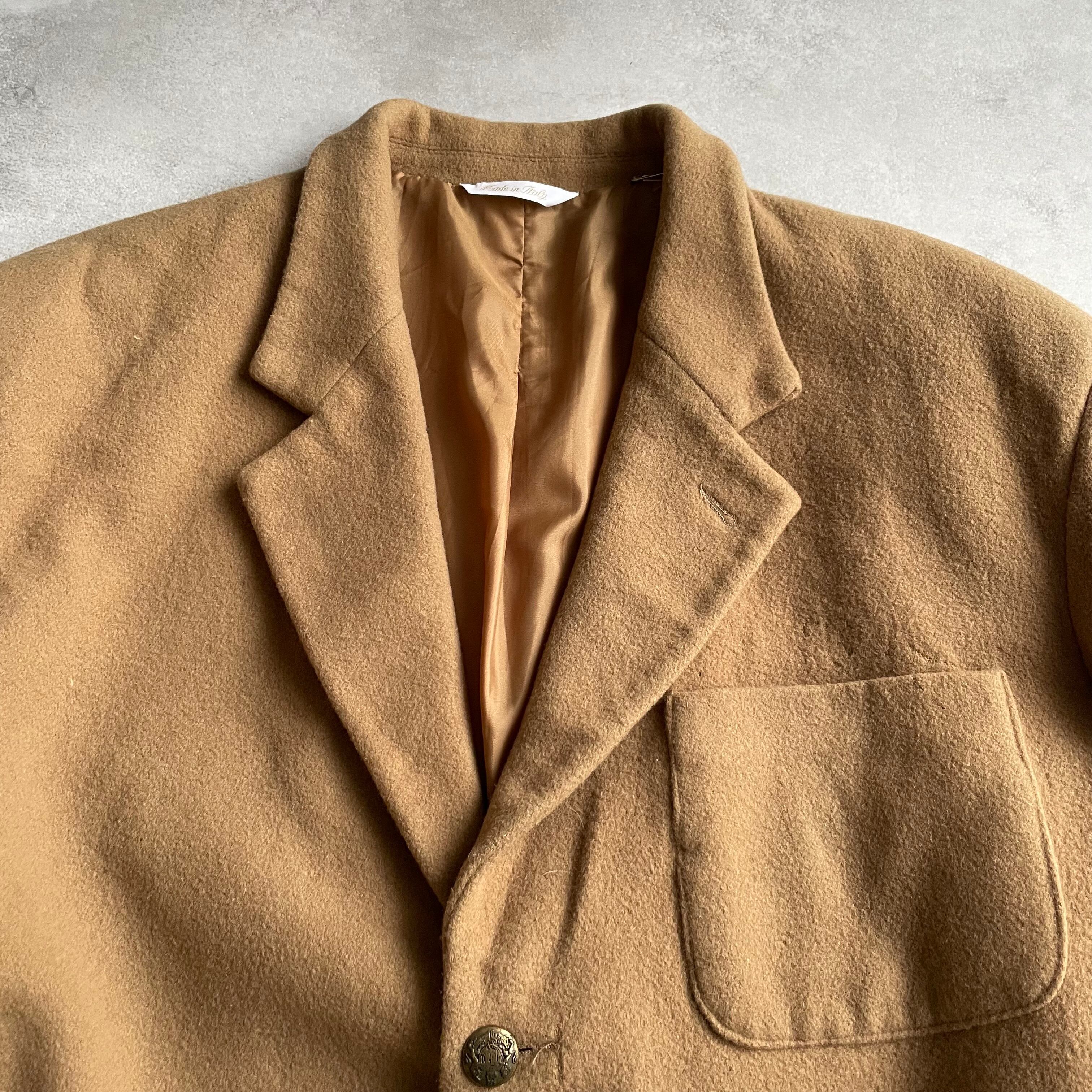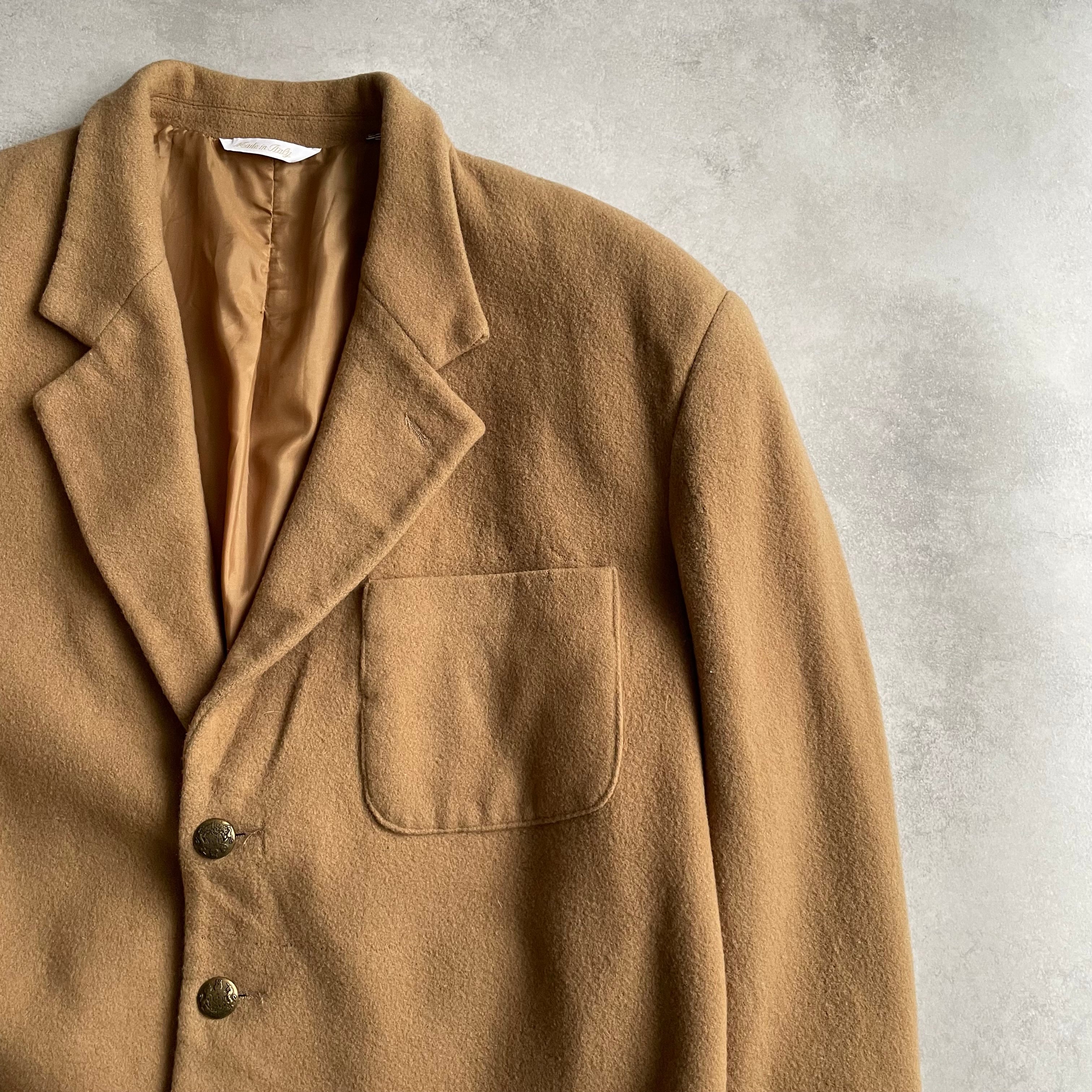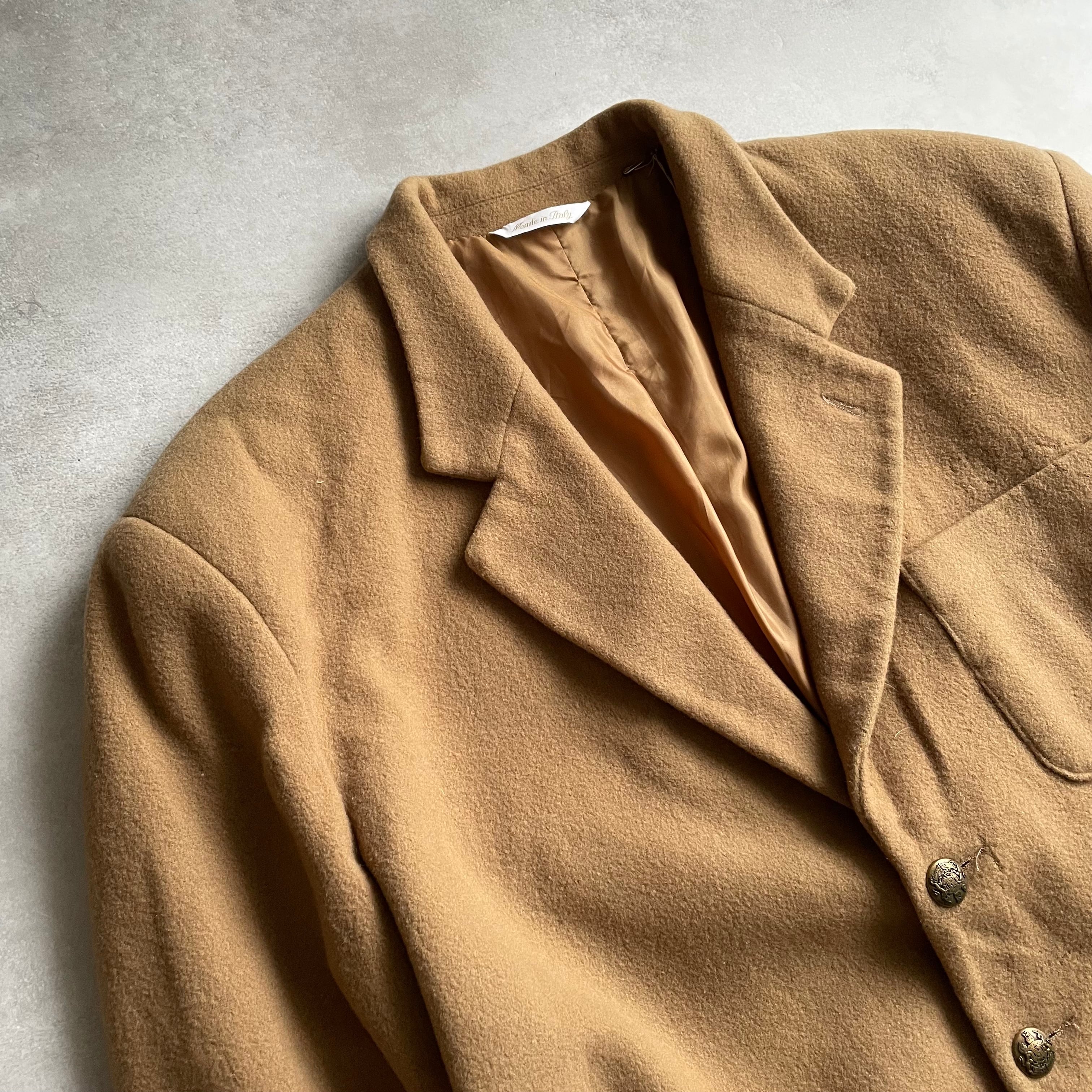 ウール地の中でも軽やかに着れるナイロン混紡のもので、季節感の出るキャメルカラーが良い雰囲気