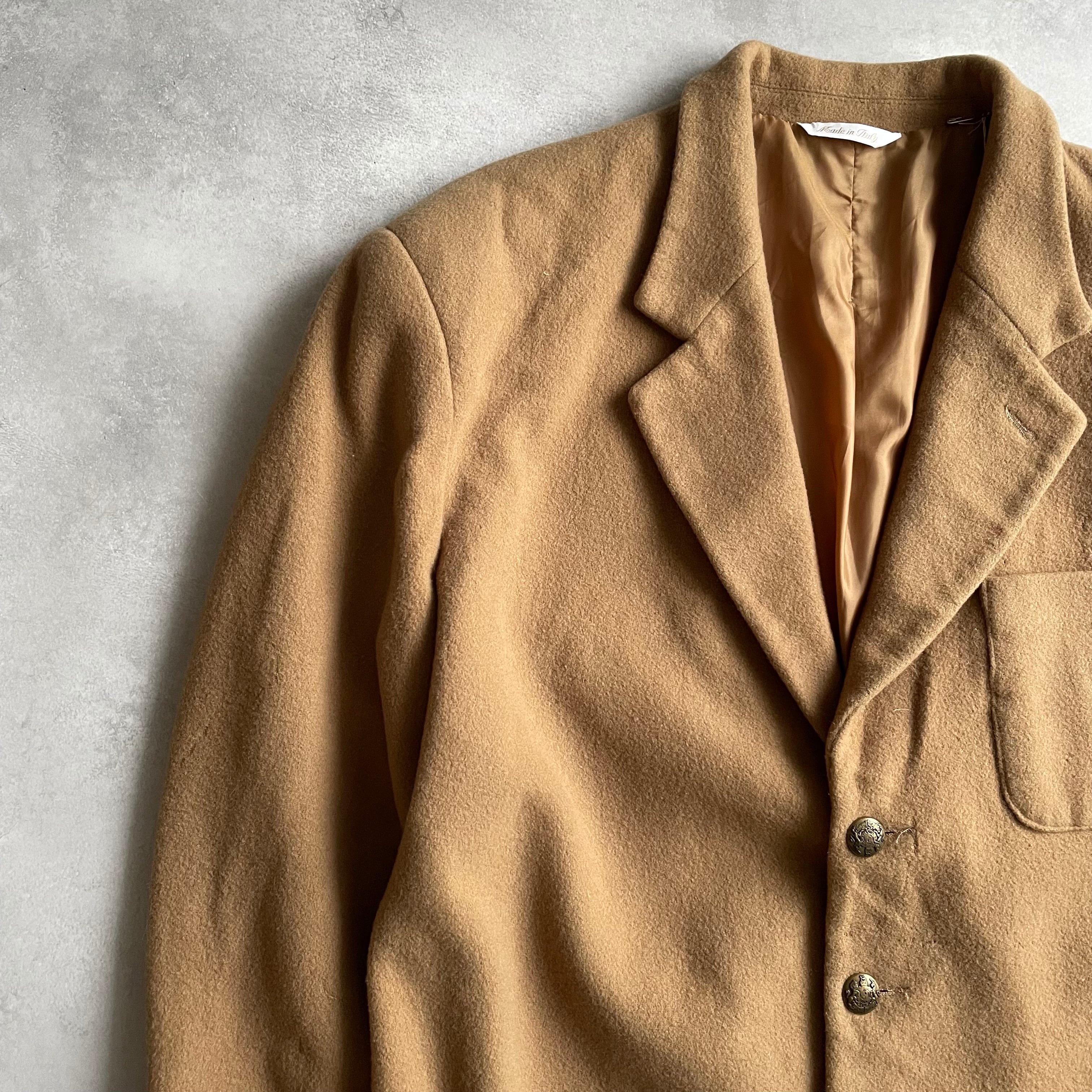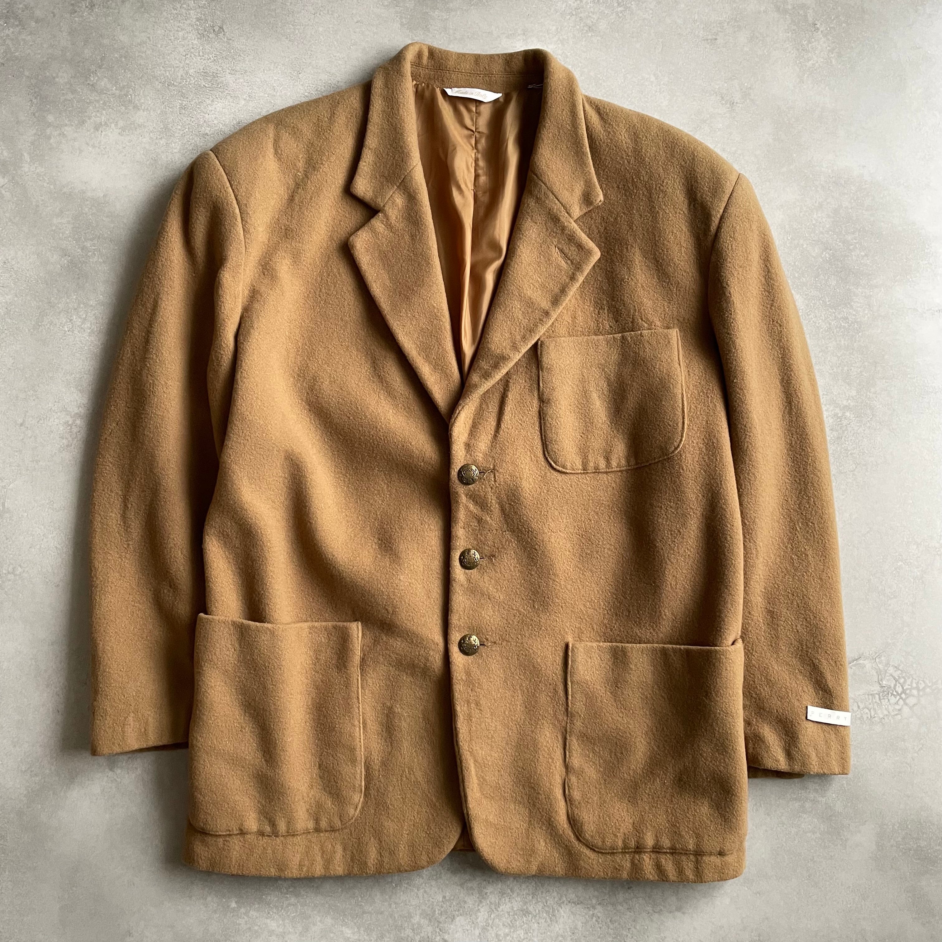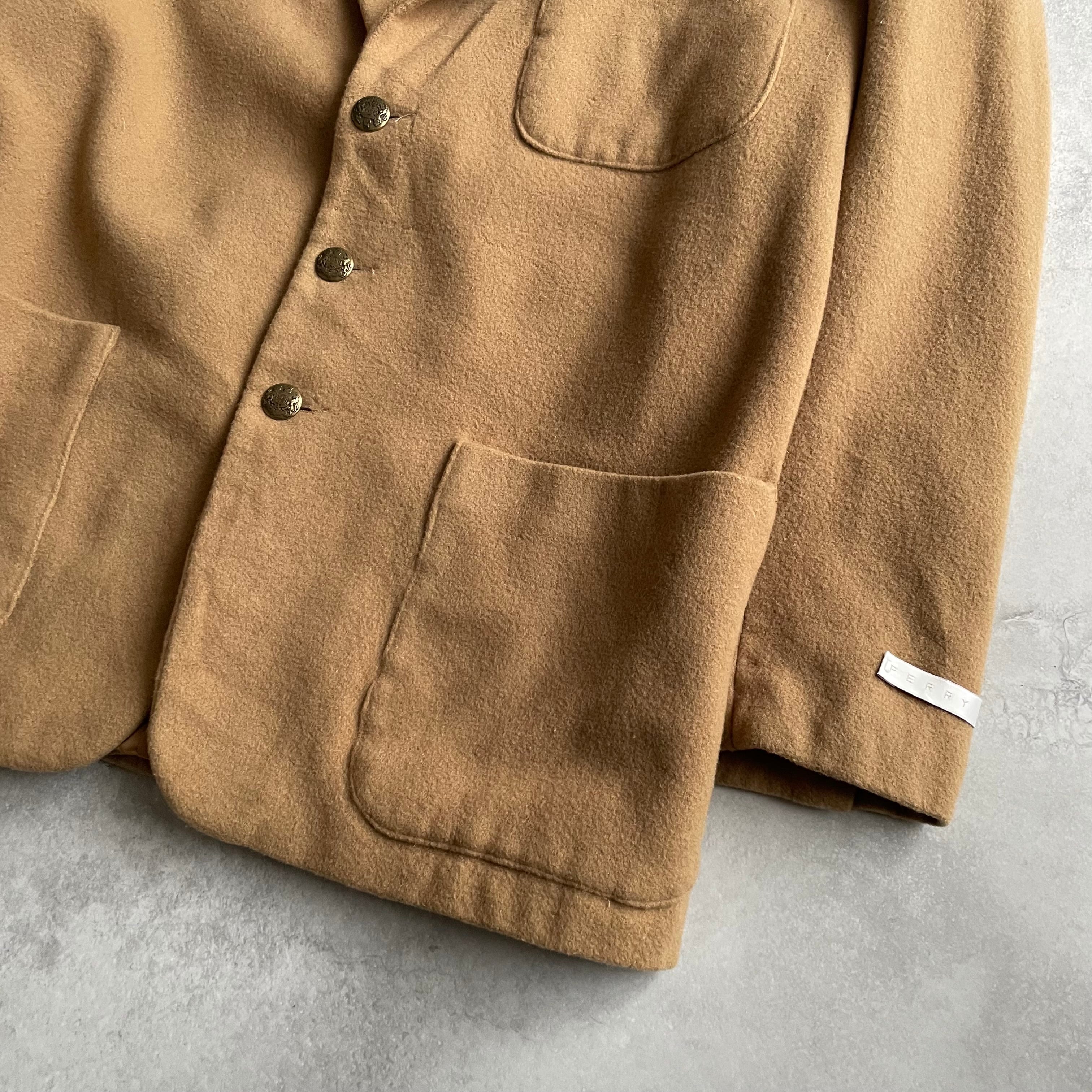 ウール地の中でも軽やかに着れるナイロン混紡のもので、季節感の出るキャメルカラーが良い雰囲気