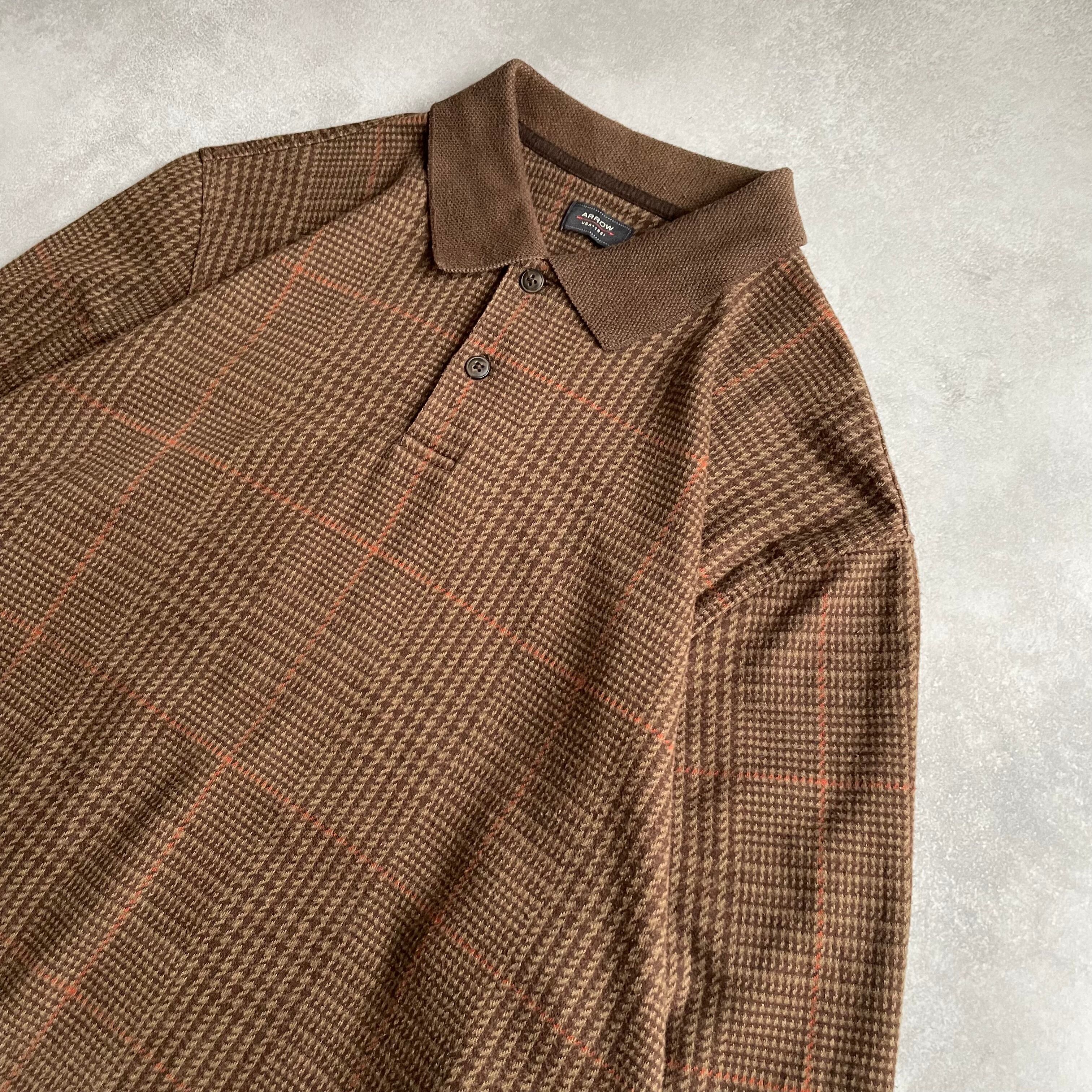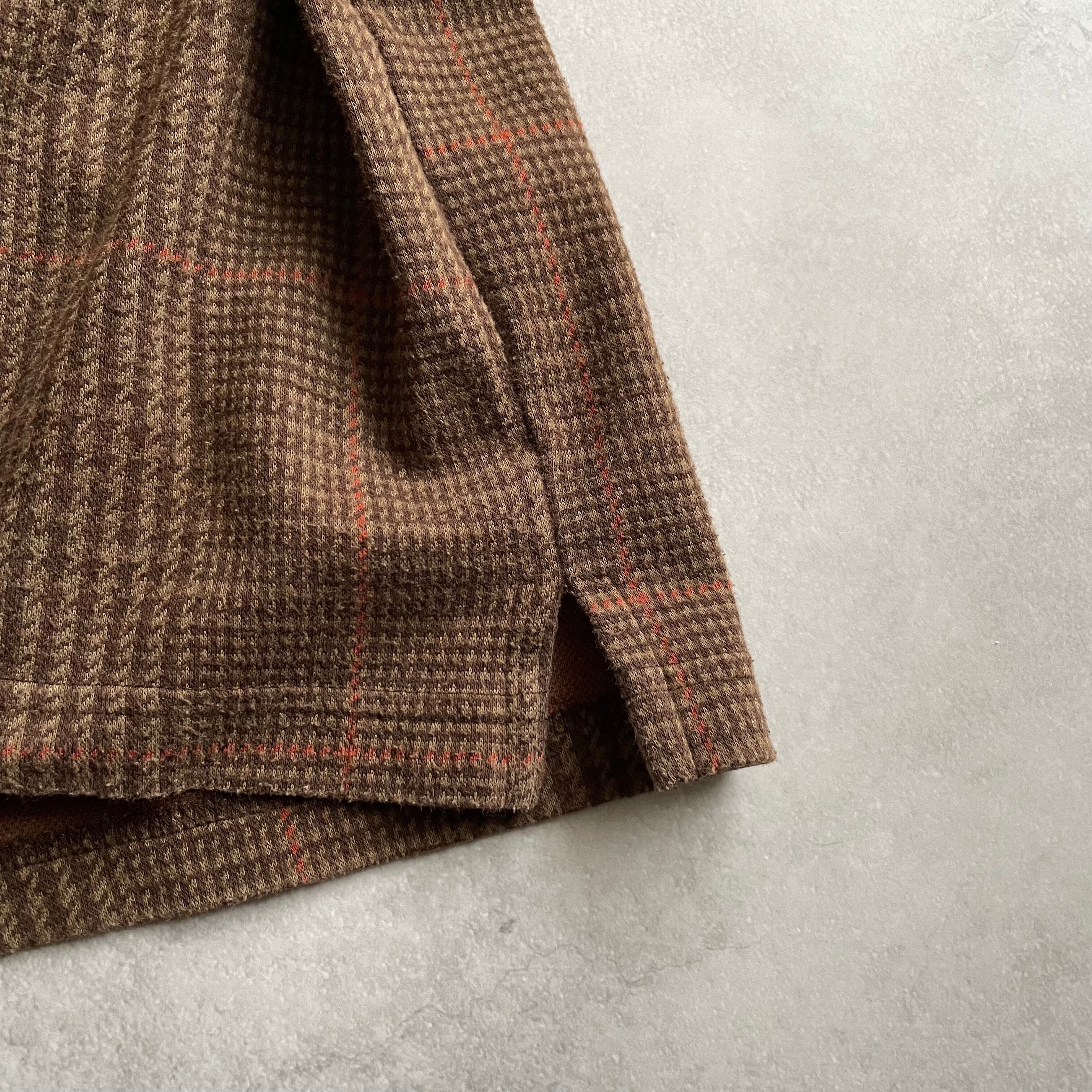 暖かみのあるブラウンカラーに格子状のオレンジラインが映えるデザインが魅力の1着