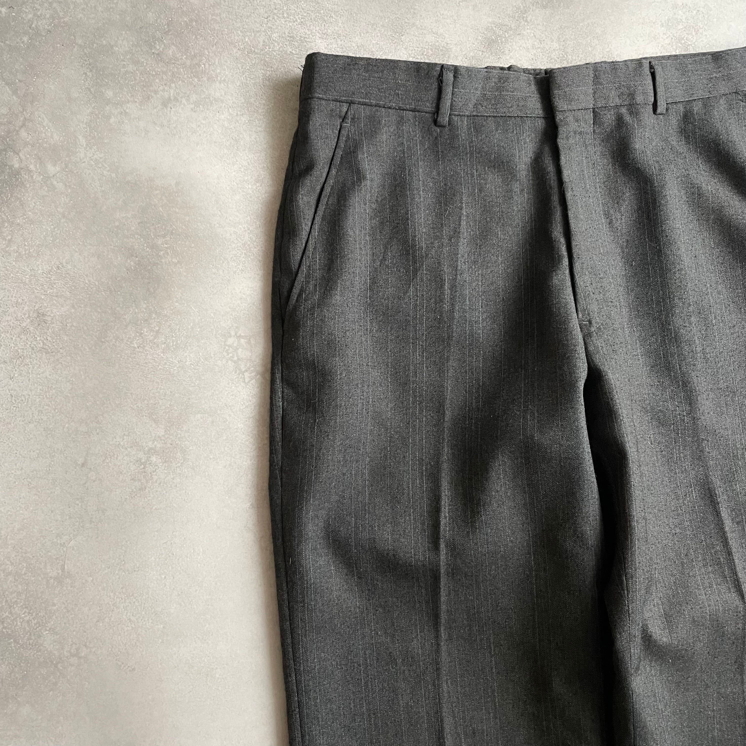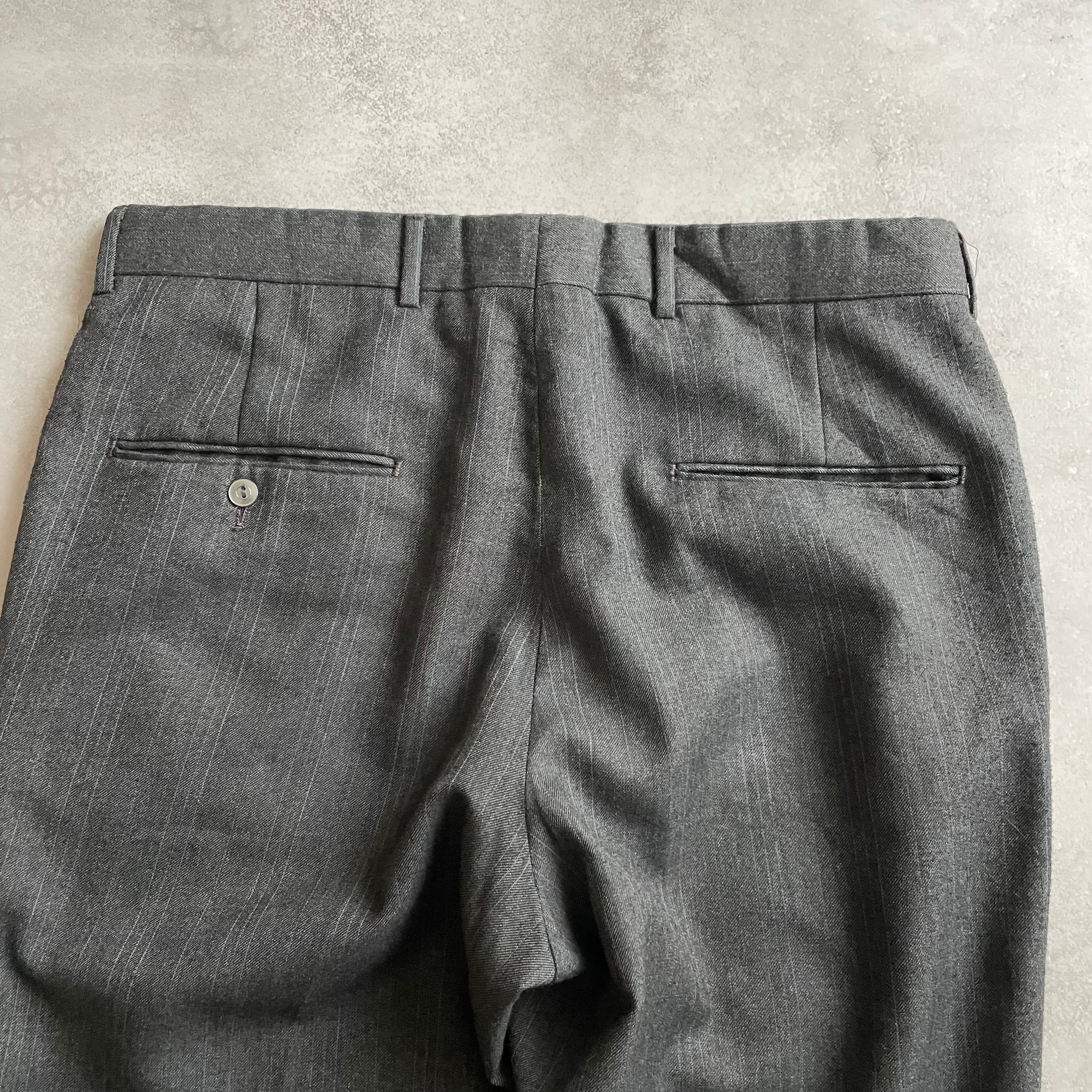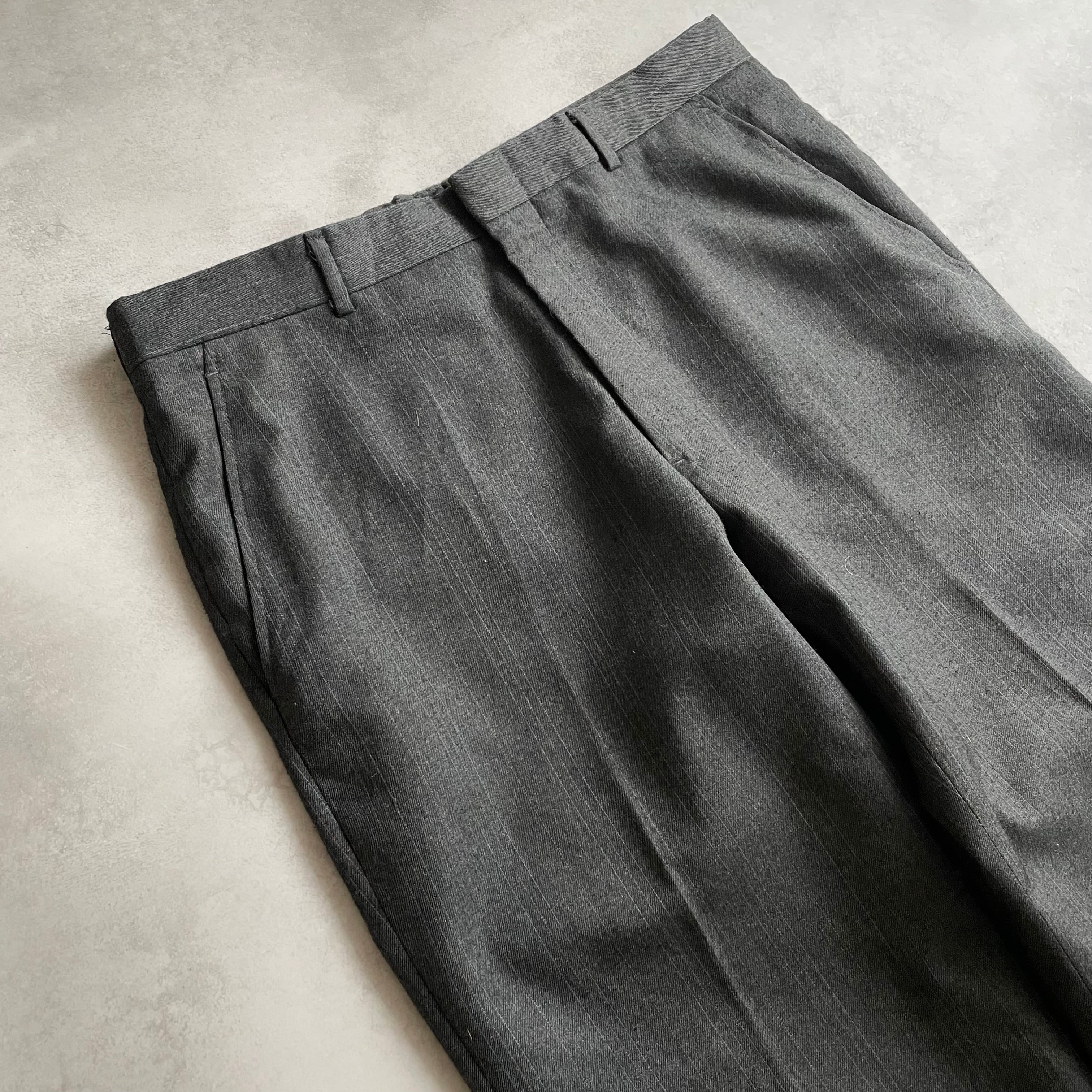 センタープレスの残る、無骨ながら綺麗なグレーカラーのスラックス