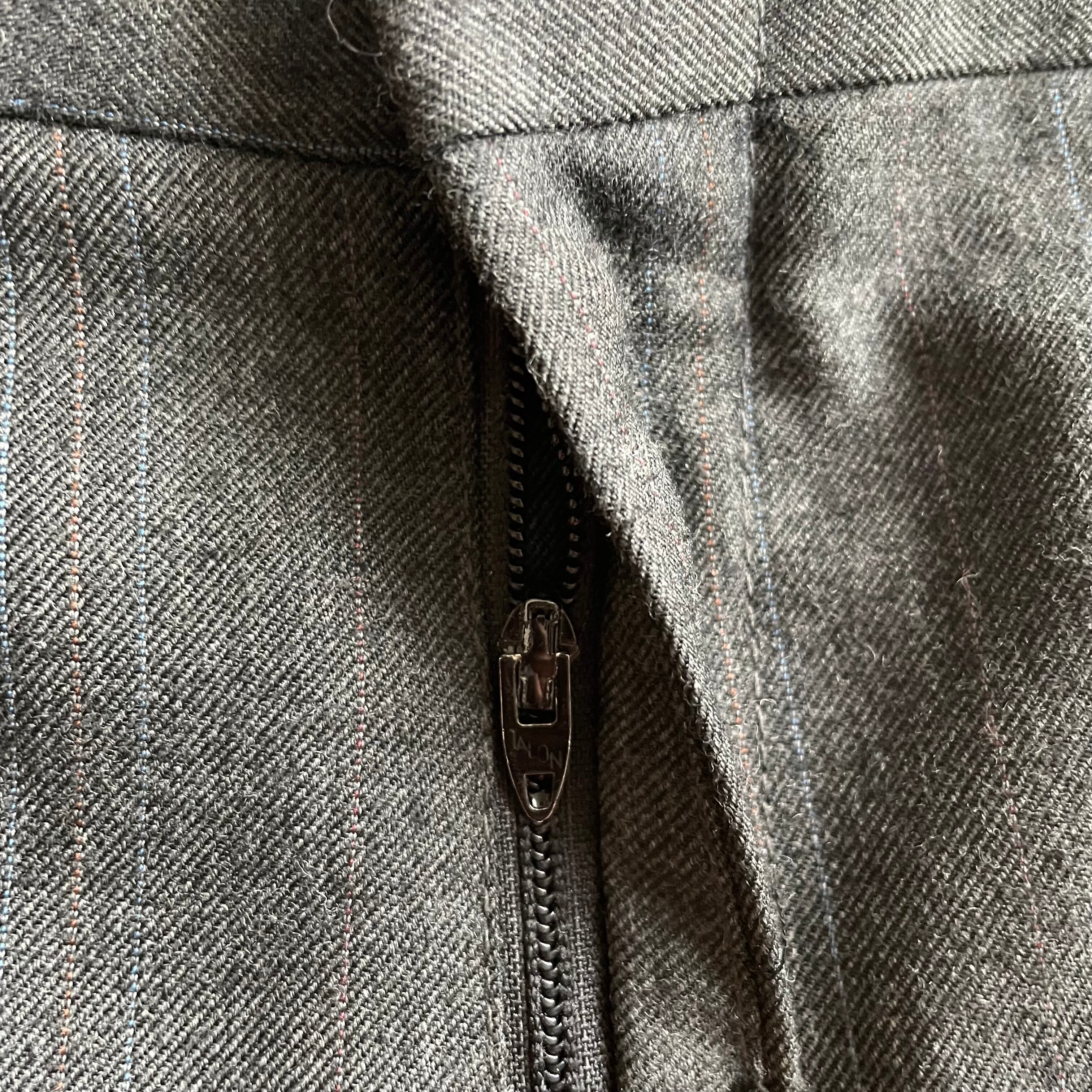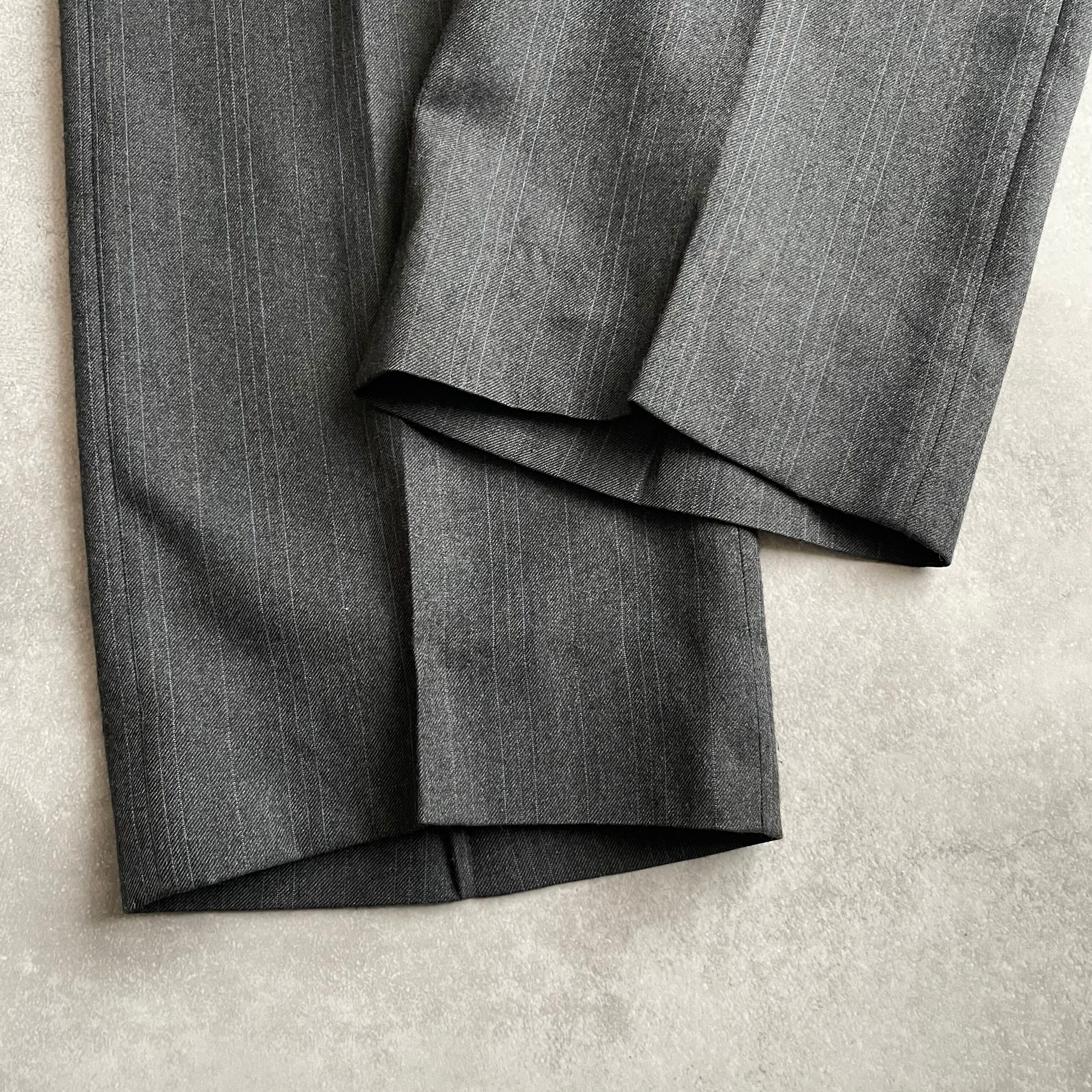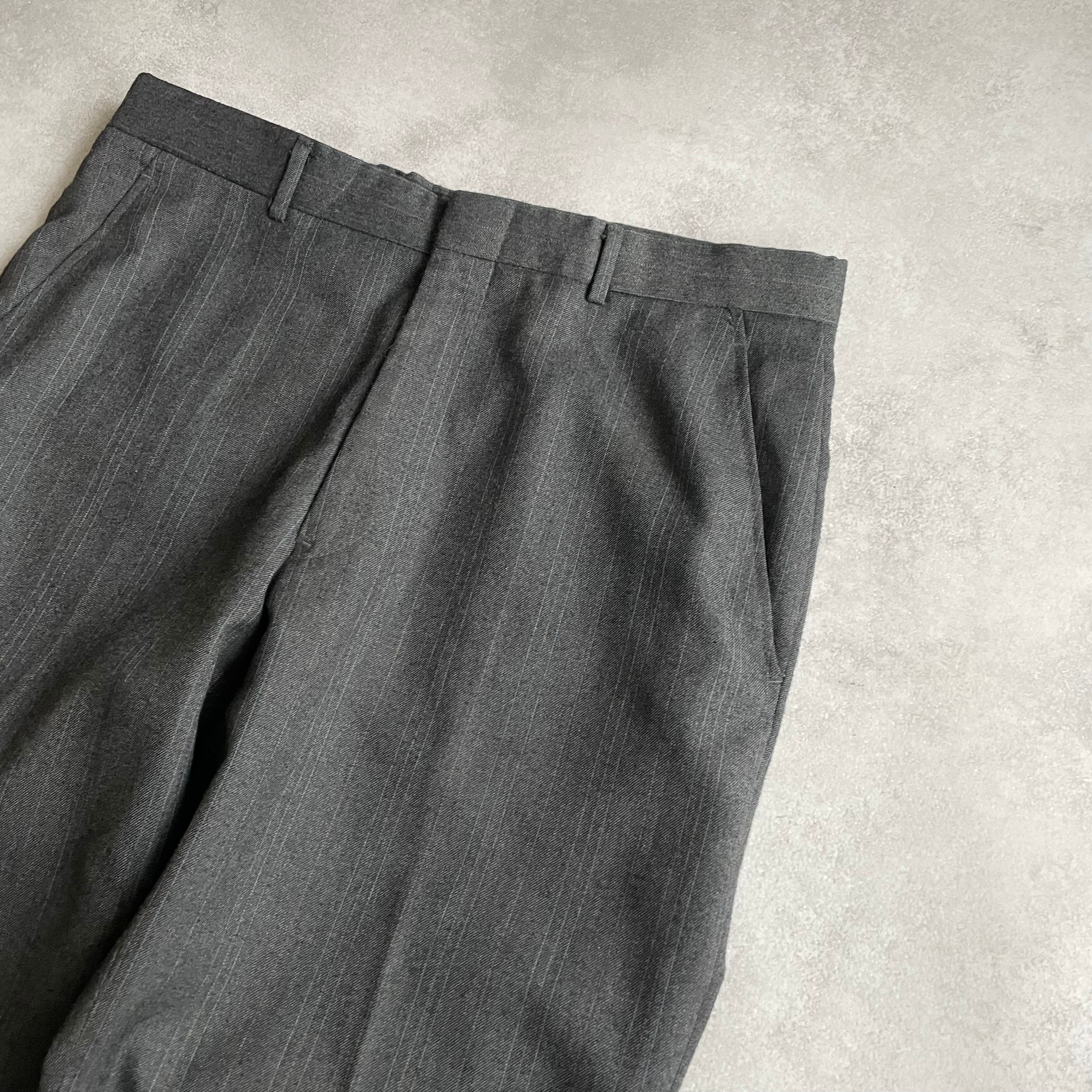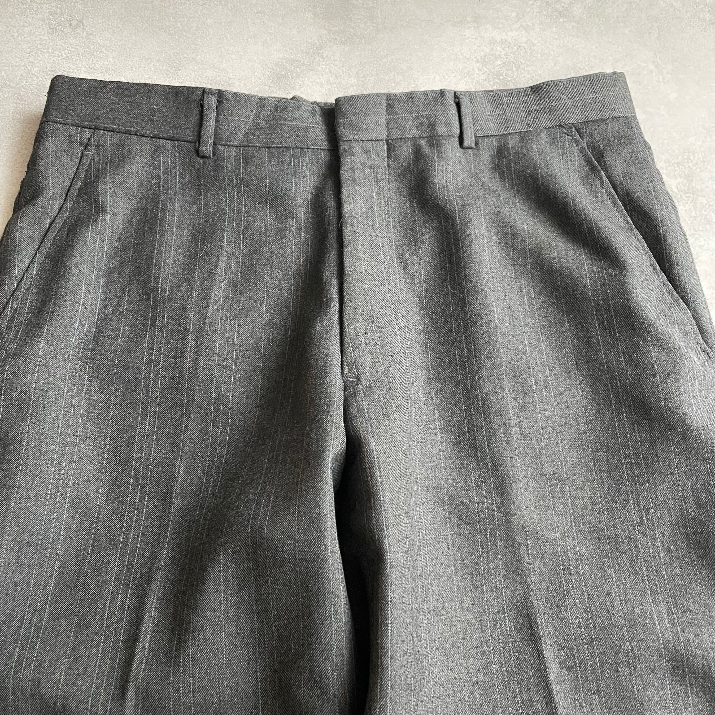 センタープレスの残る、無骨ながら綺麗なグレーカラーのスラックス