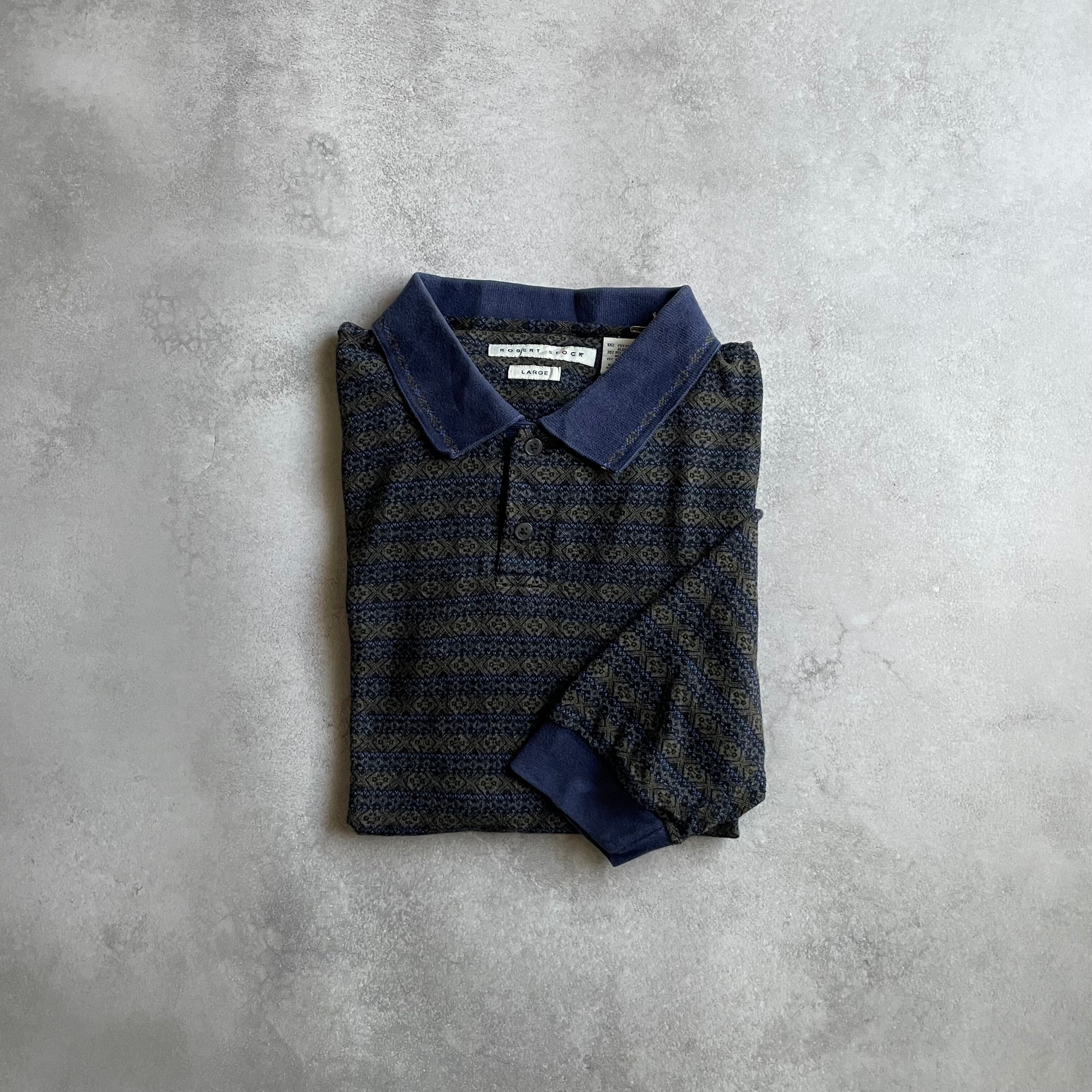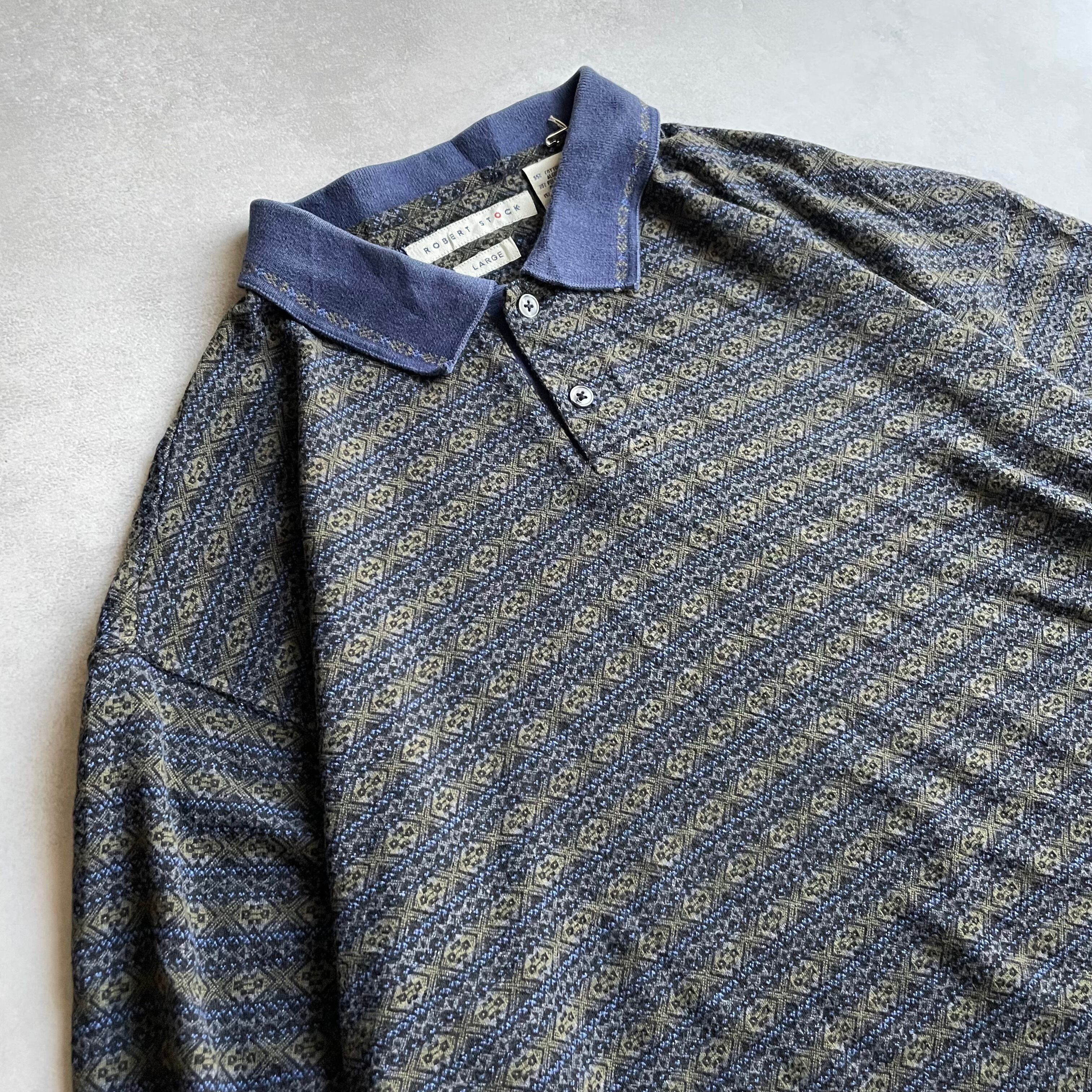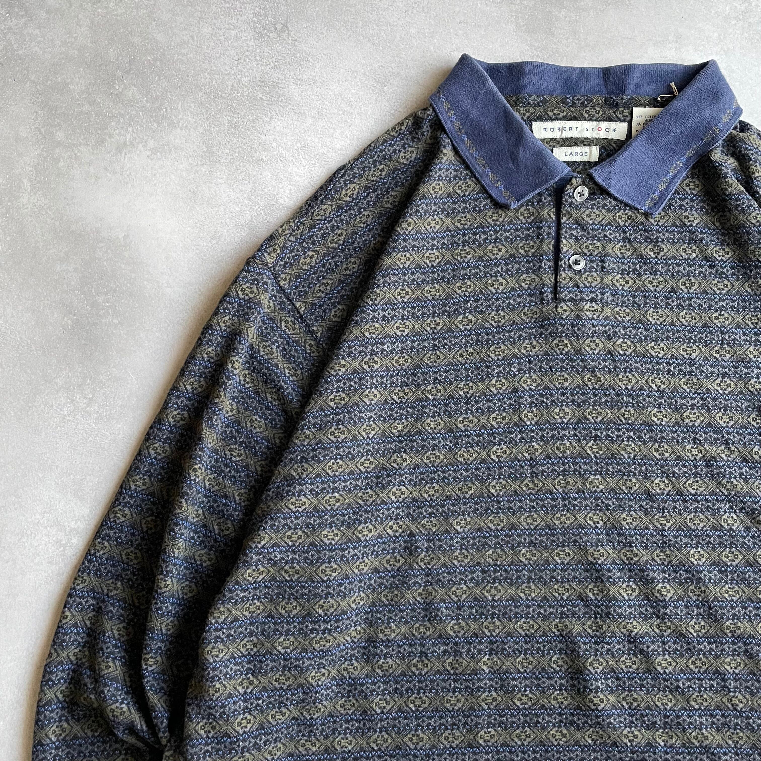 90s Robert Stock L/S design knit border polo shirt