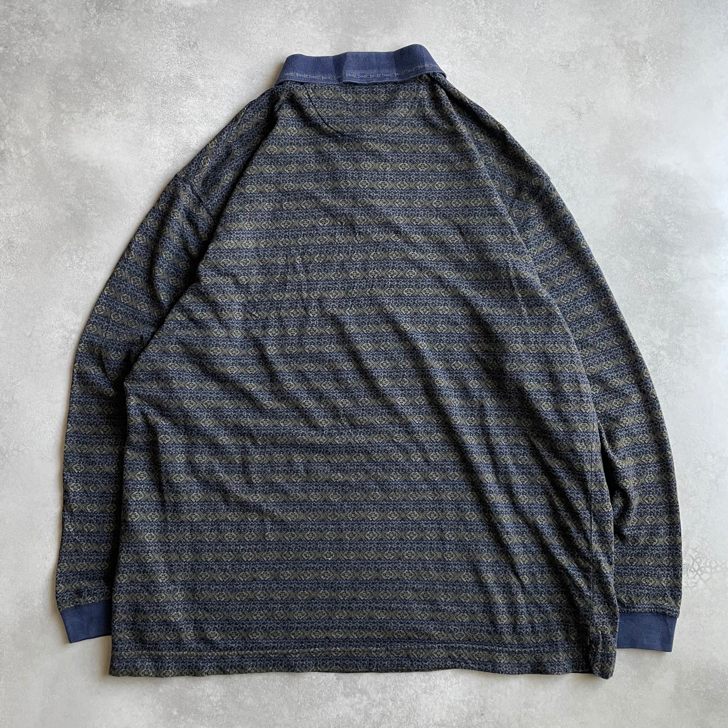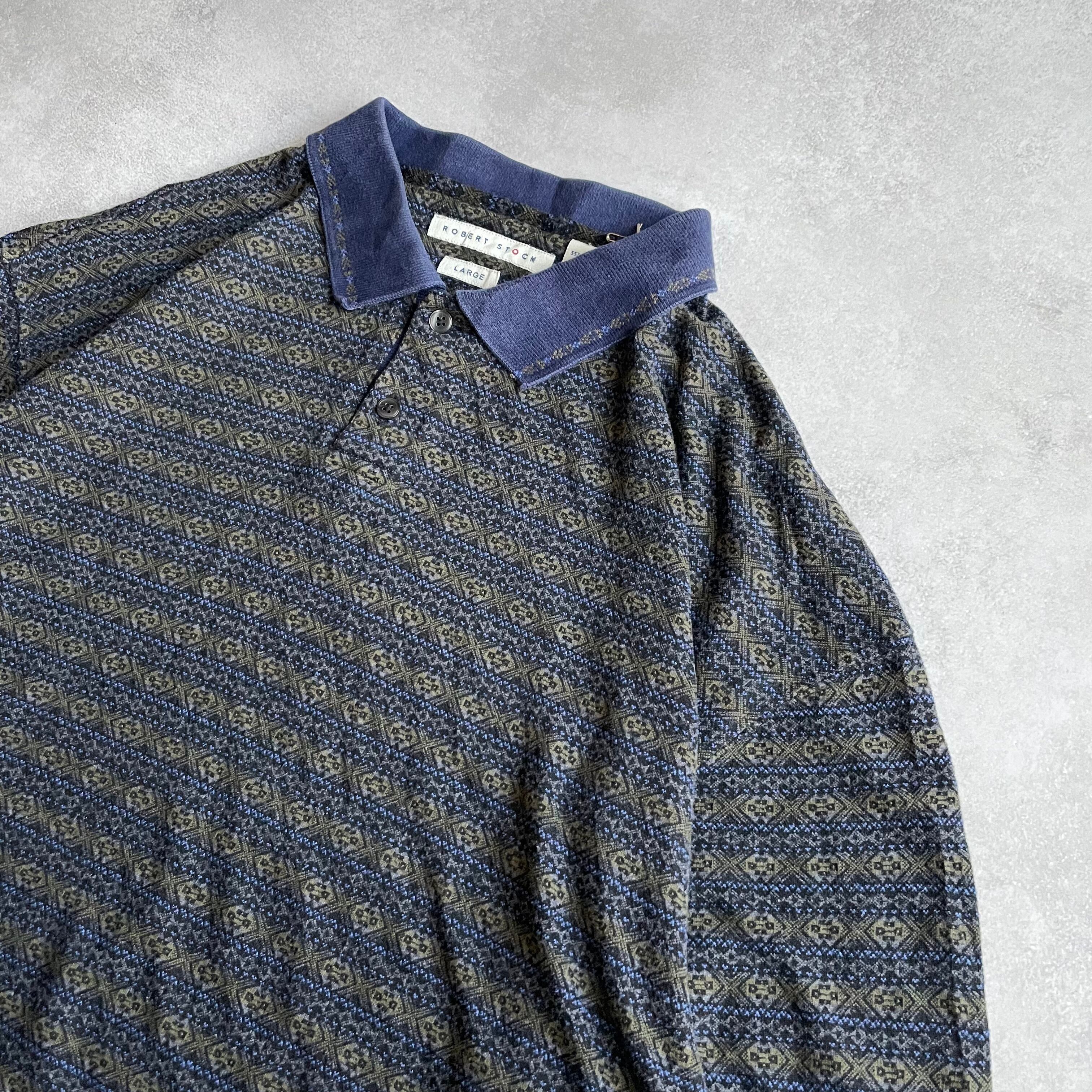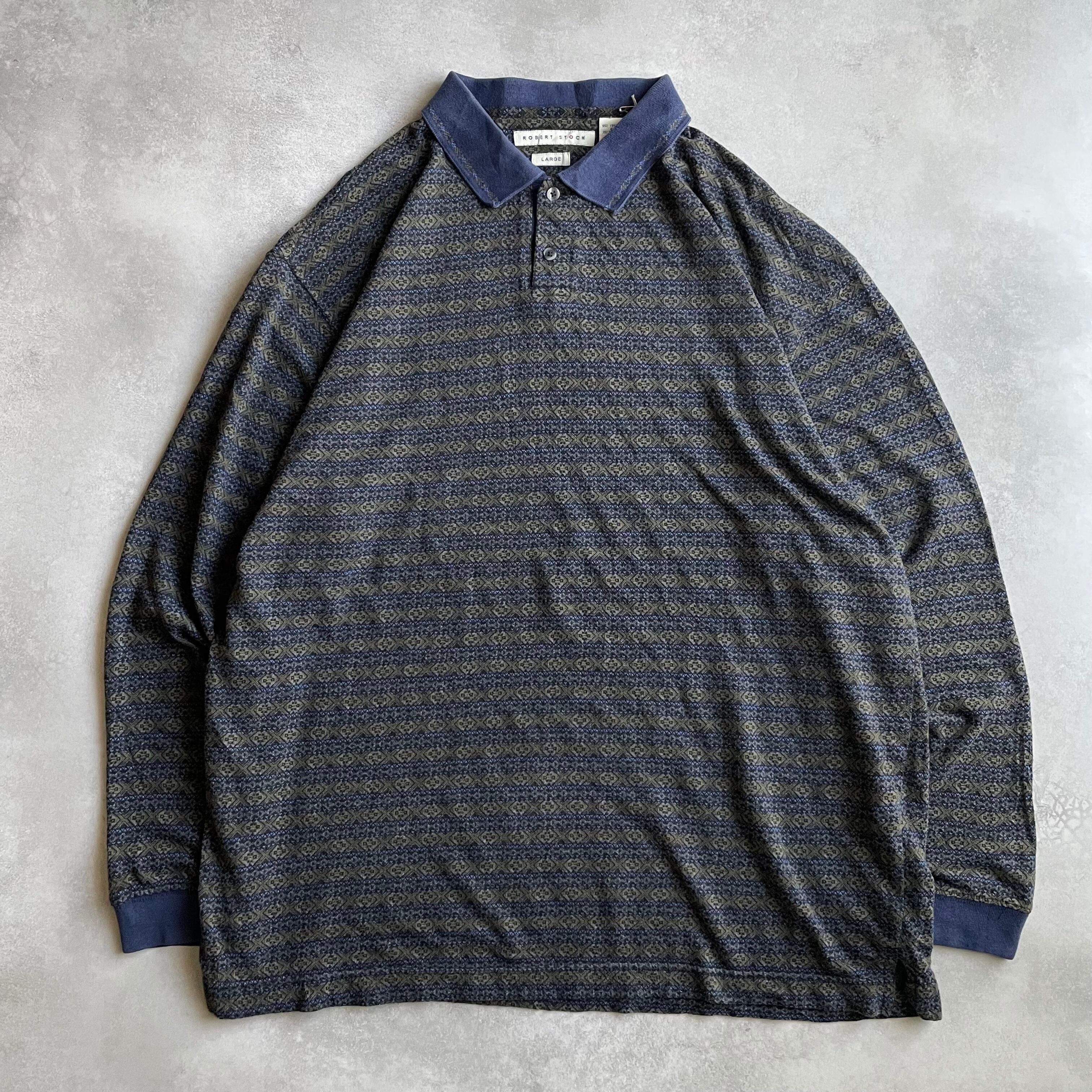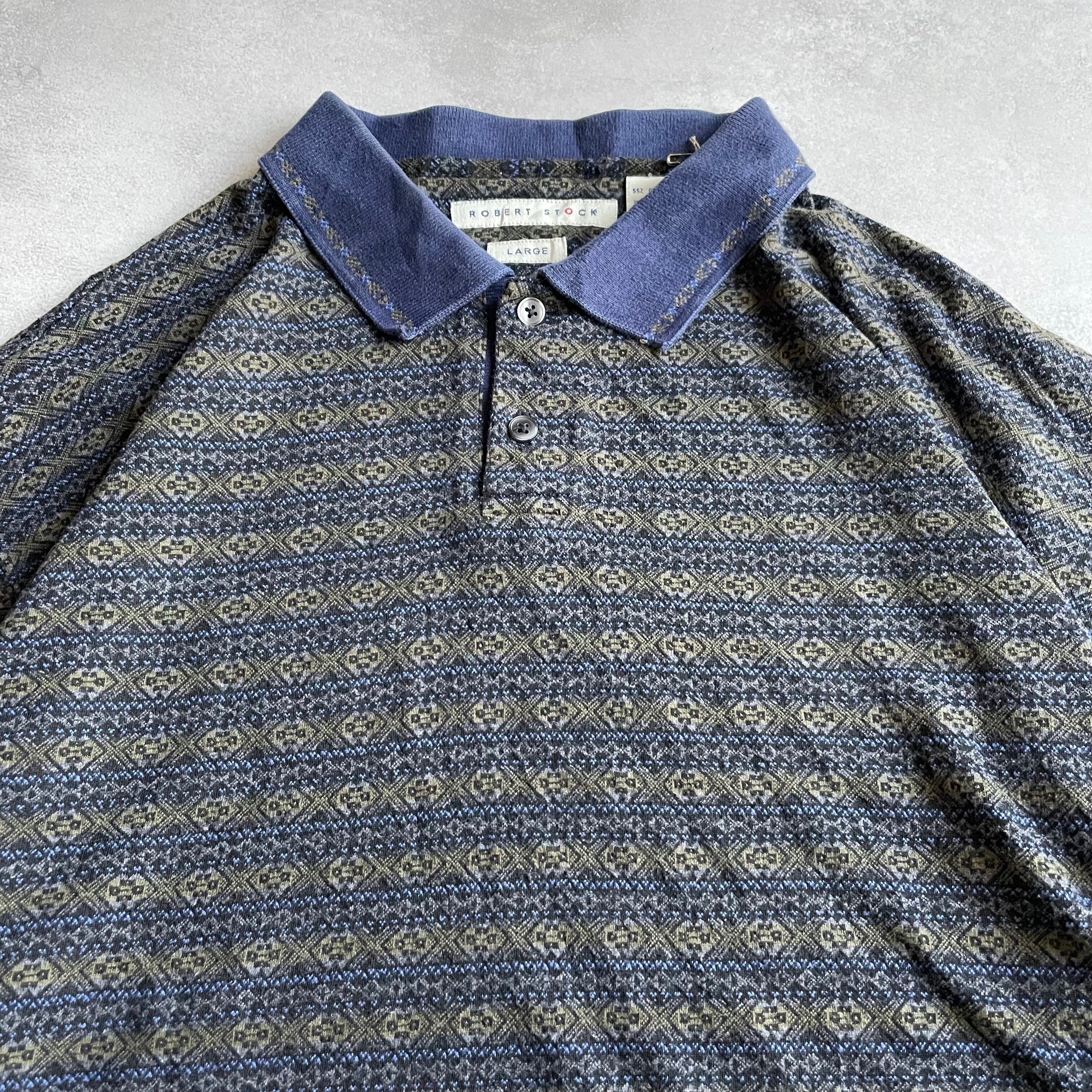 90s Robert Stock L/S design knit border polo shirt