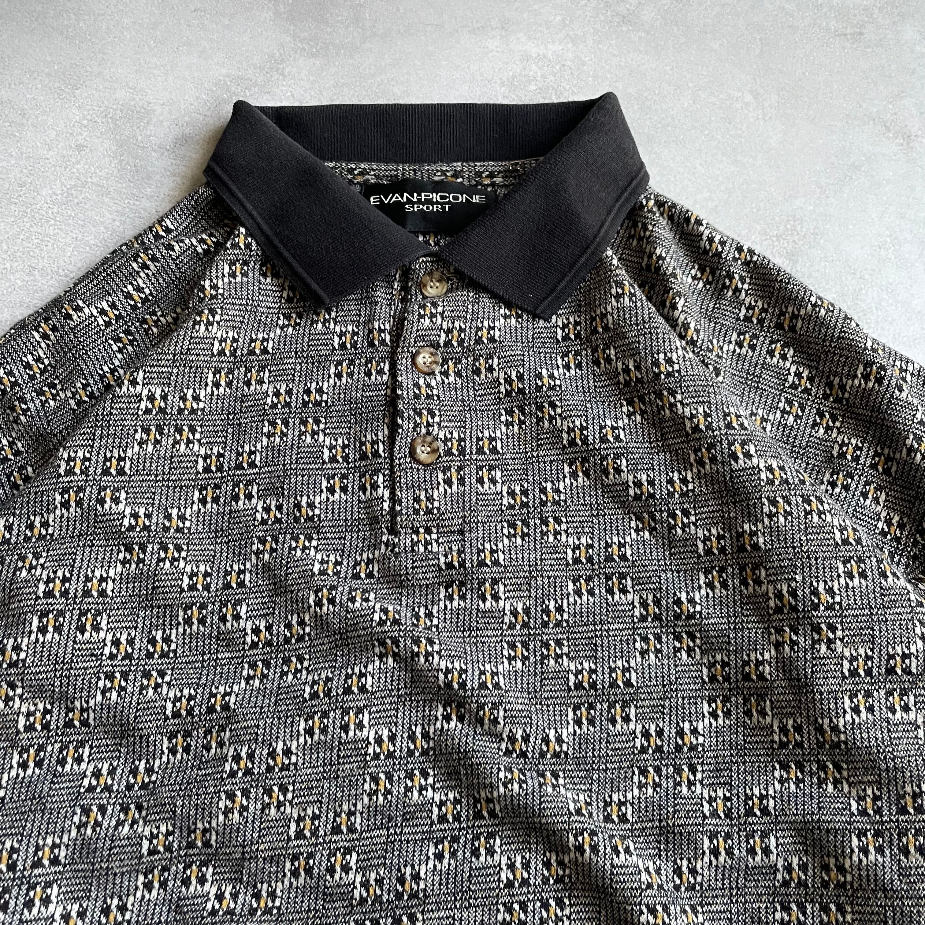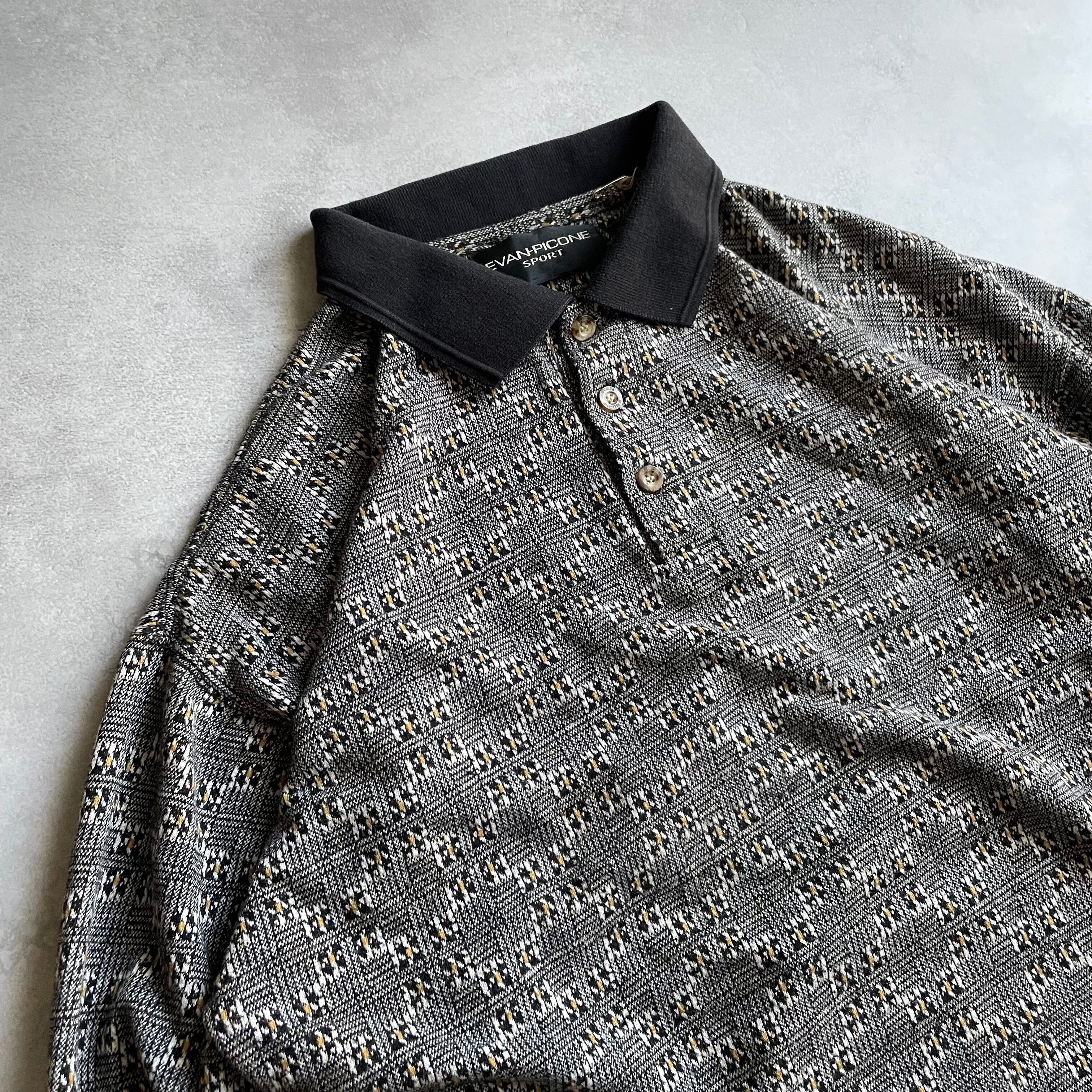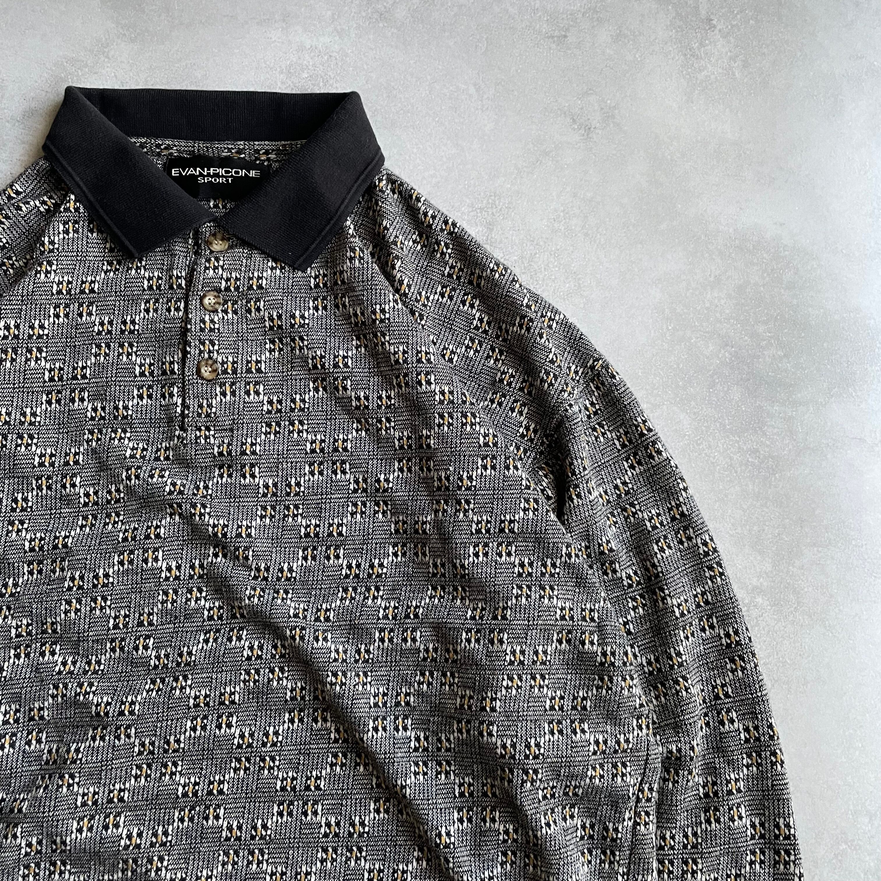 ~90s EVAN-PICONE SPORT L/S design knit polo shirt
